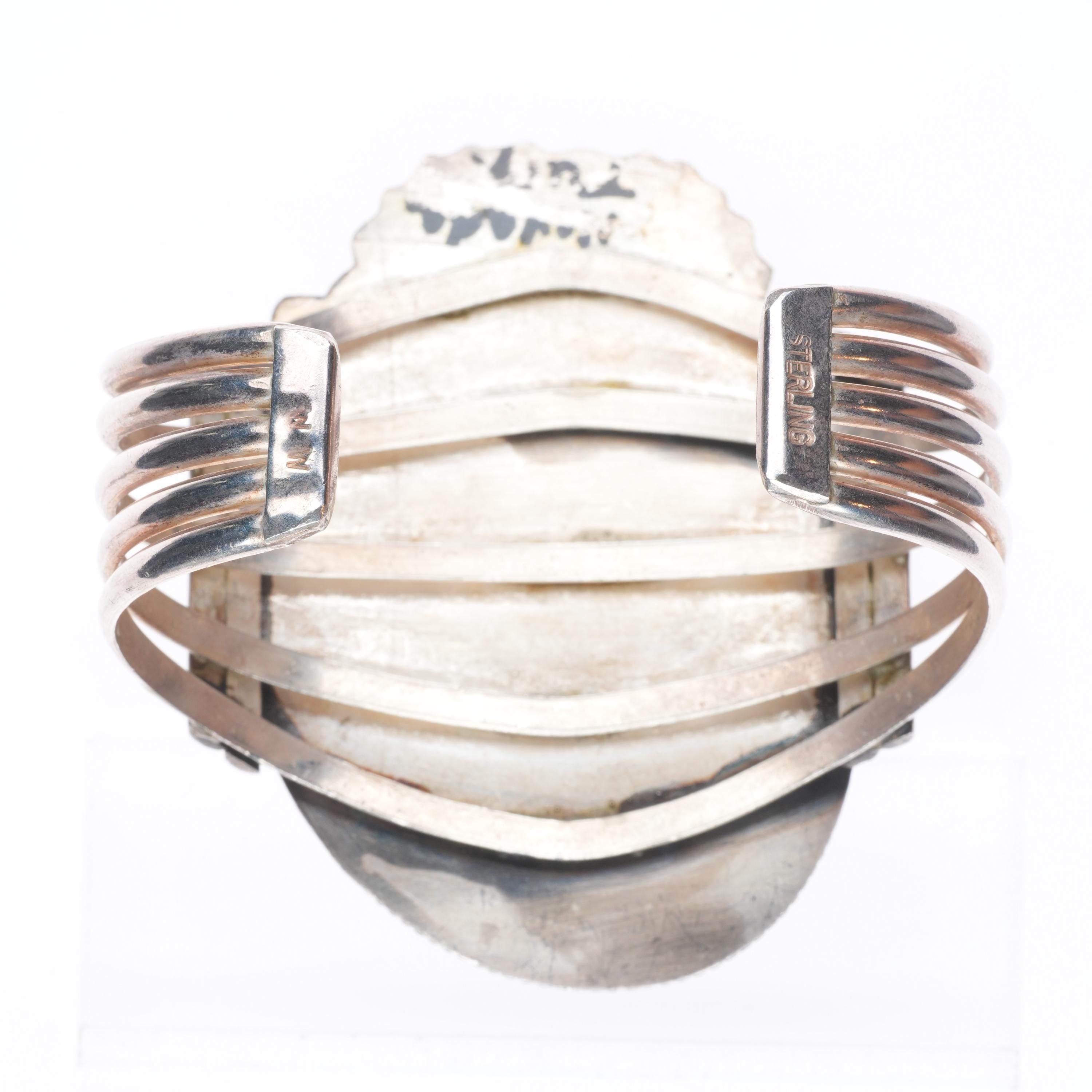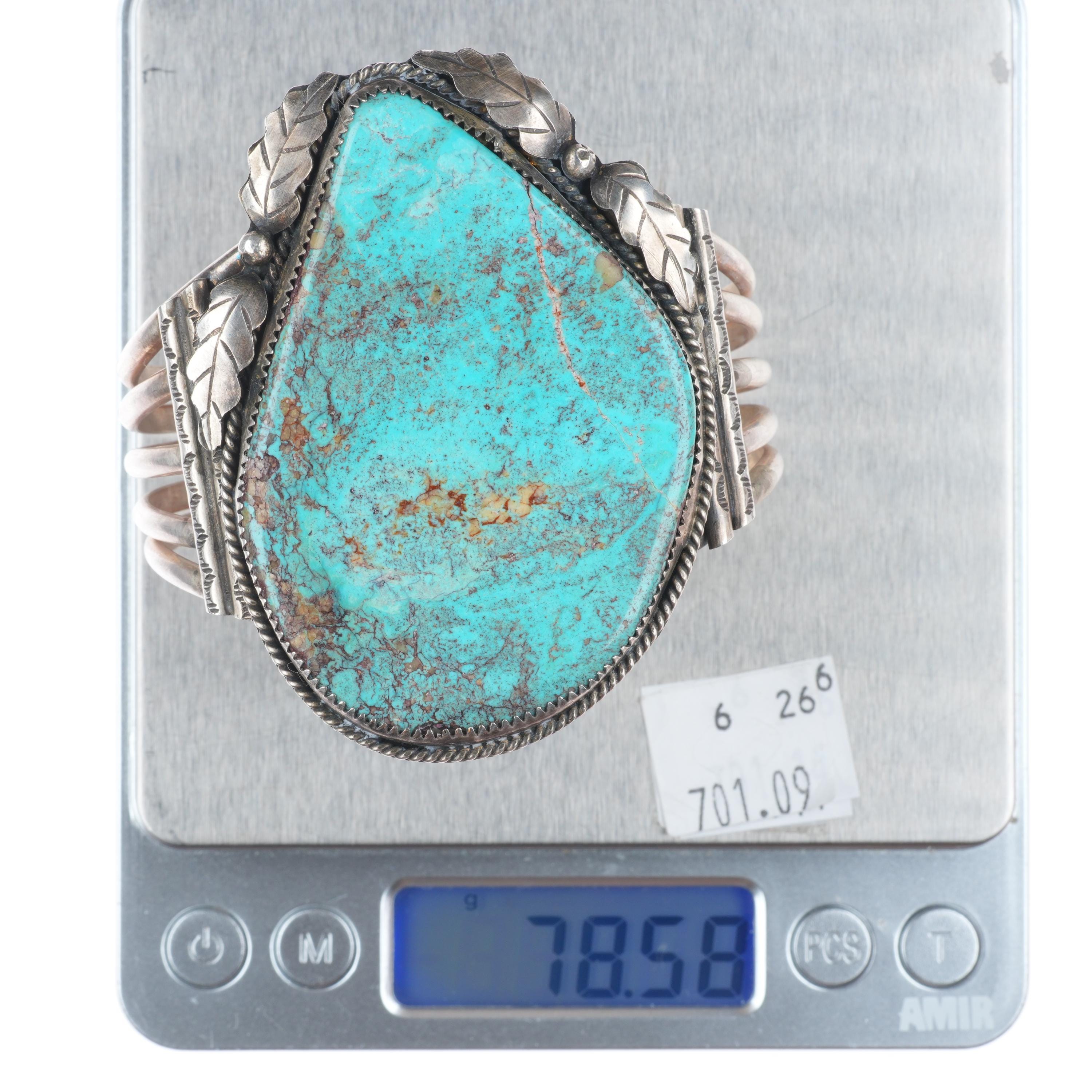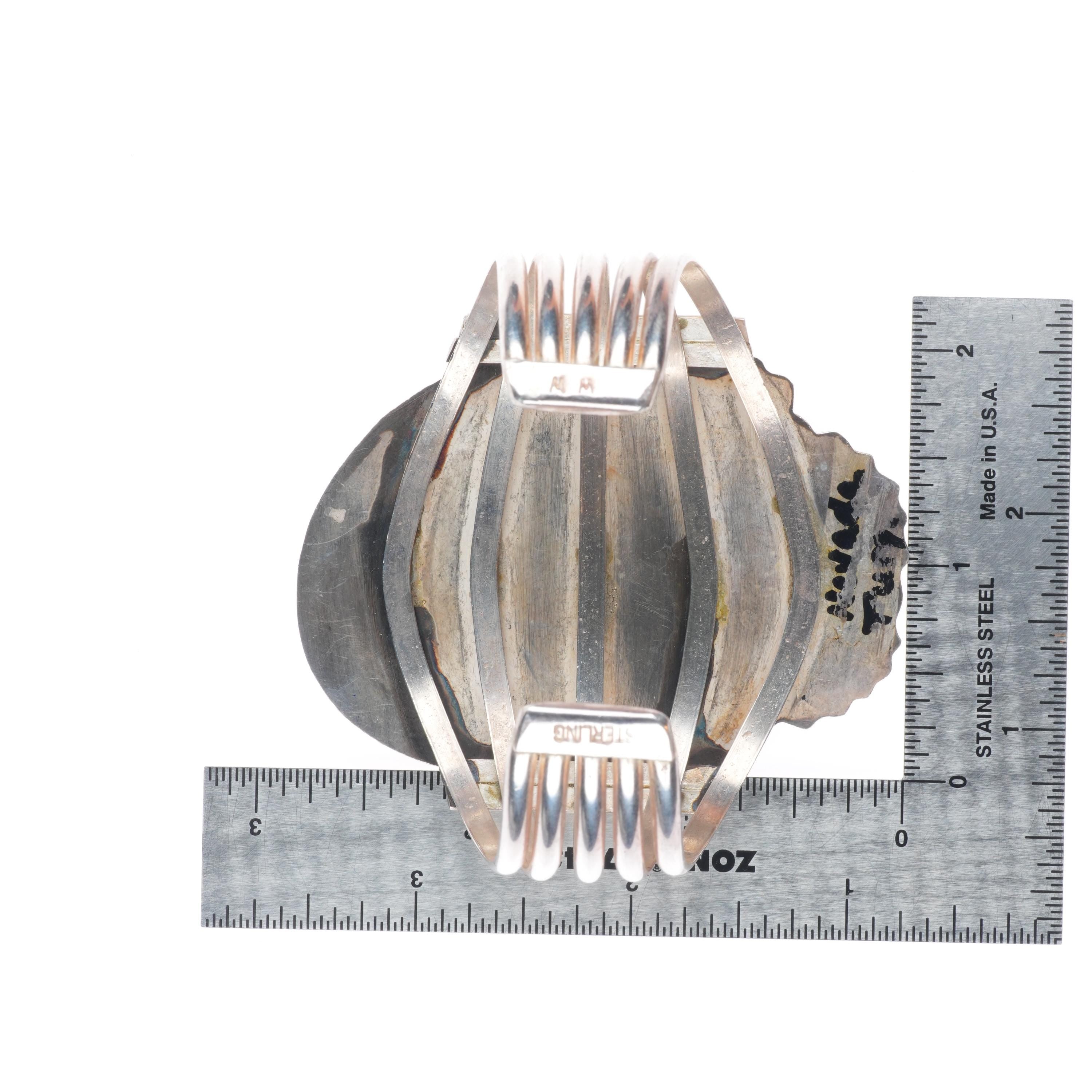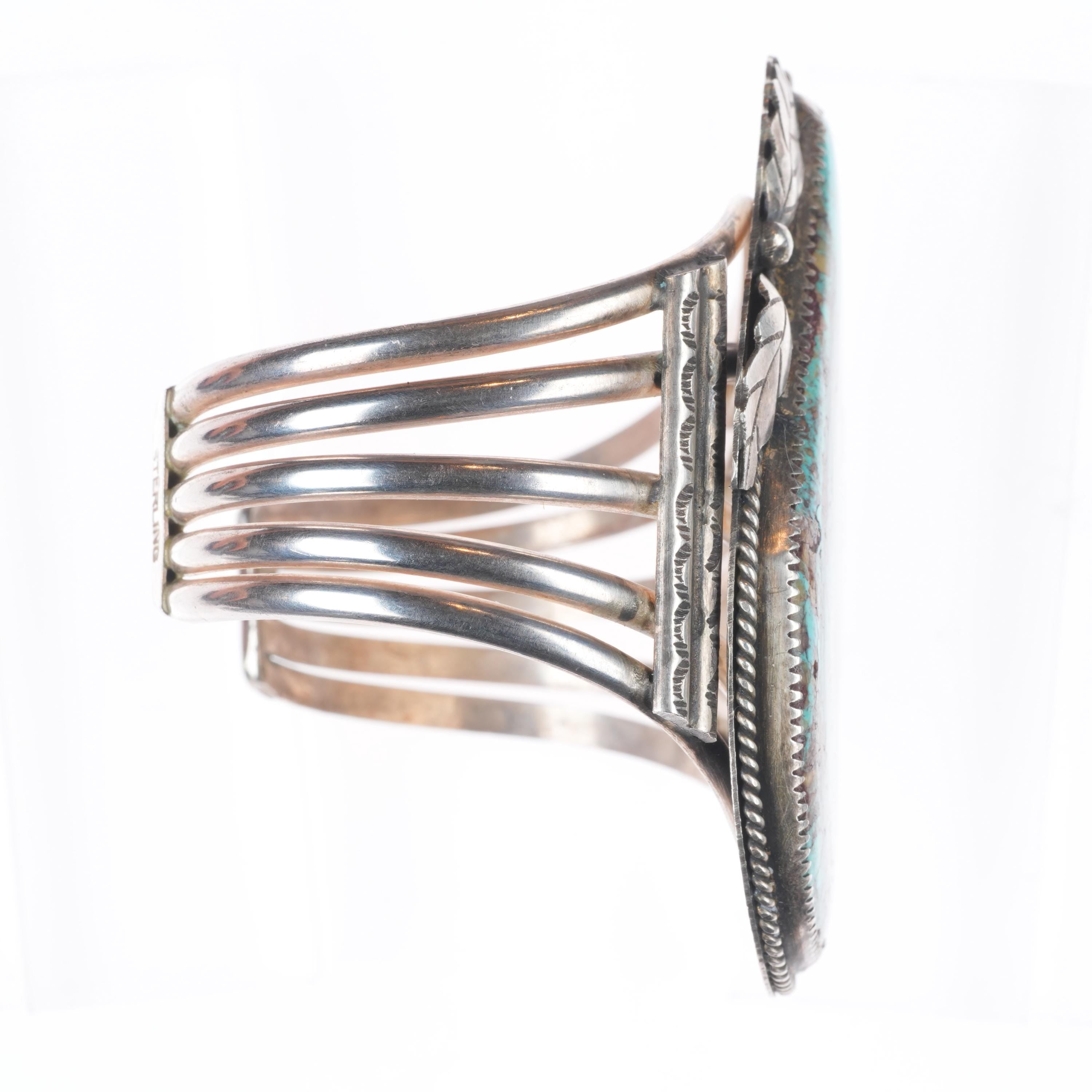6.75" Wilbur Wauneka Navajo sterling silver vintage cuff bracelet big turquoise. Tested and guaranteed solid sterling silver with weight and measurements in pictures. Great condition with age appropriate wear, circa third quarter of the 20th century. Stamped WW by Gap on one side. Old/secure fracture in stone.