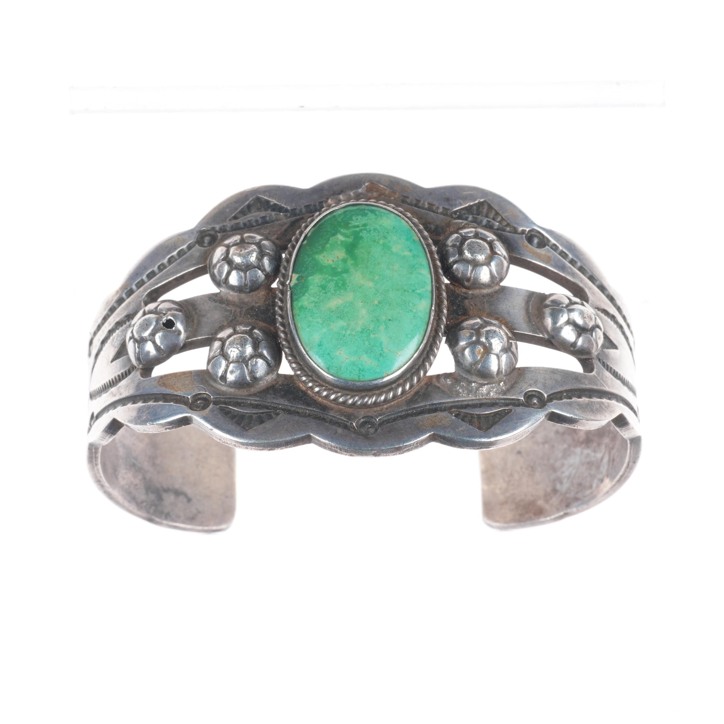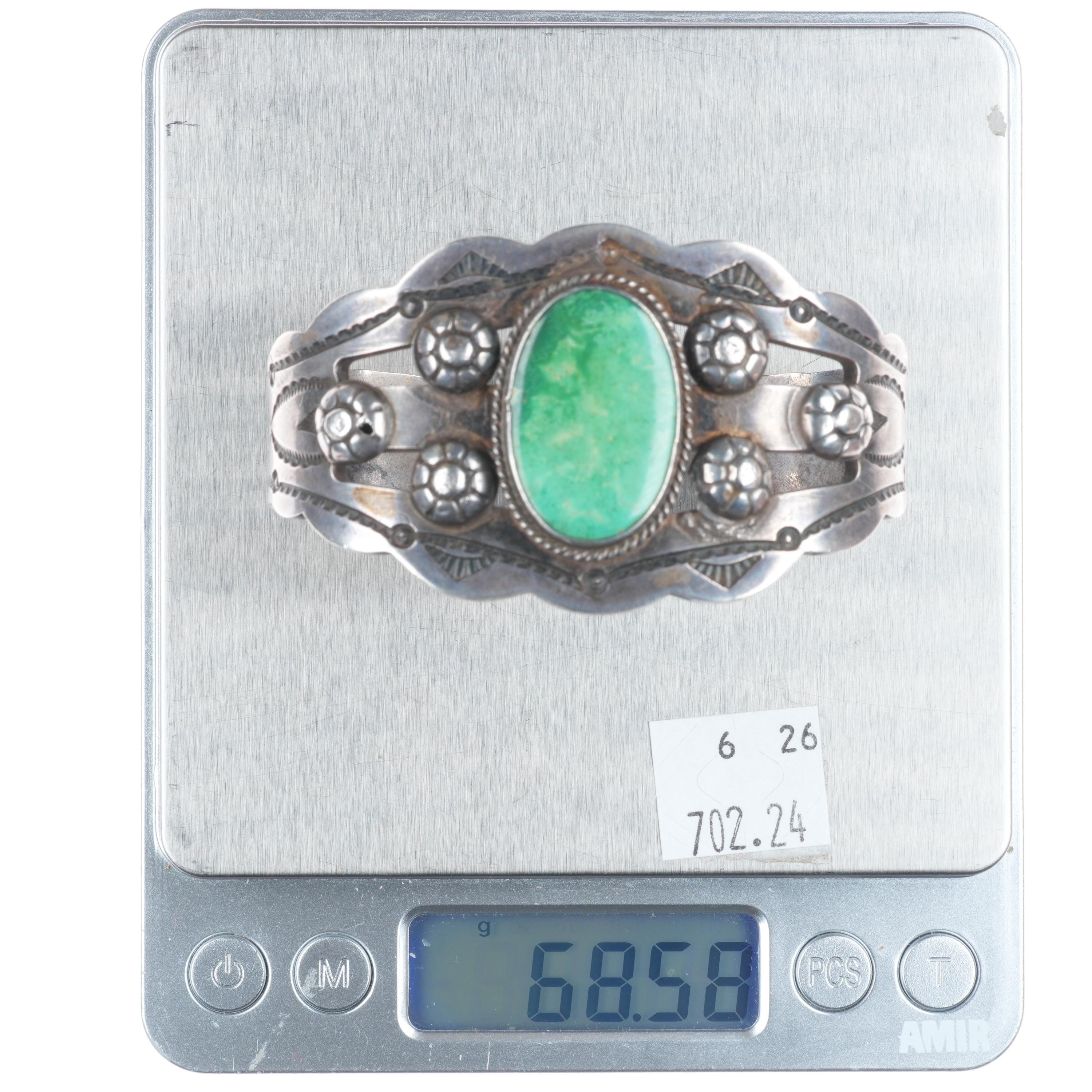 6.8" 1940's Vintage Navajo Cerrillos turquoise sterling silver cuff bracelet Share WhatsApp Facebook X Pin it Messenger Email Product form $1,100.00 Excl. VAT 1 in stock Quantity Add to cart This item is a recurring or deferred purchase. By continuing, I agree to the cancellation policy and authorize you to charge my payment method at the prices, frequency and dates listed on this page until my order is fulfilled or I cancel, if permitted.
