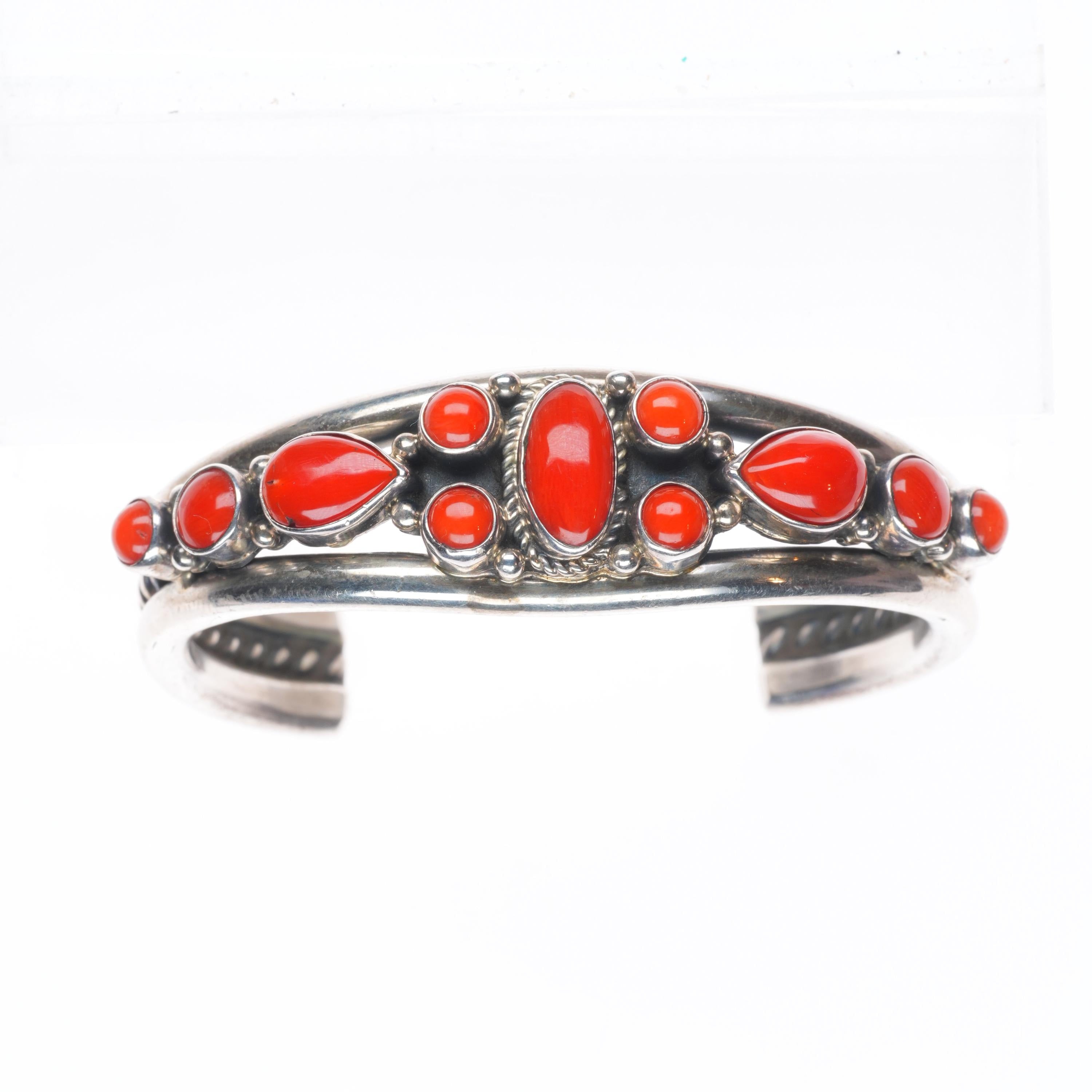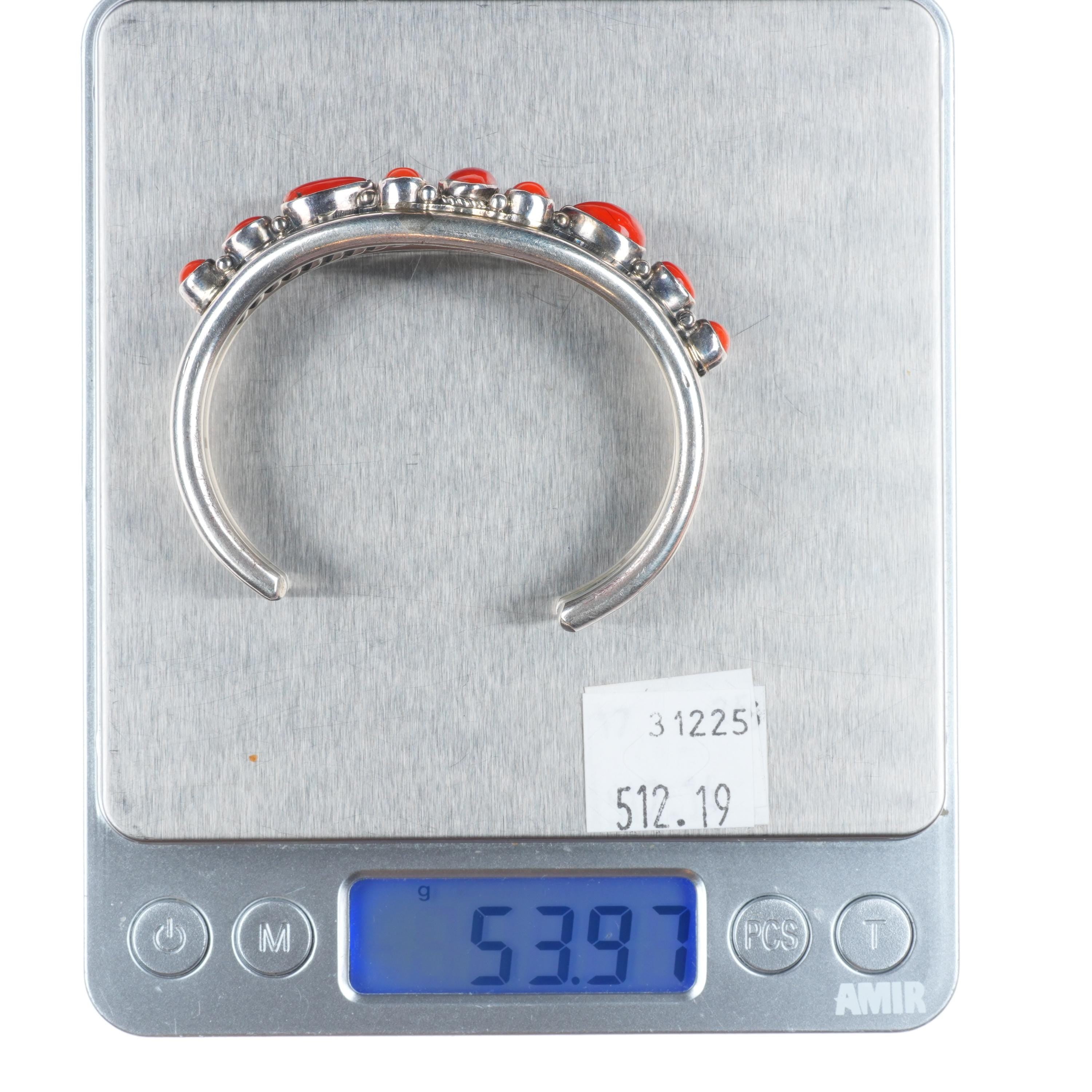 6" Darrin Livingston Navajo sterling silver Mediterranean coral cuff bracelet