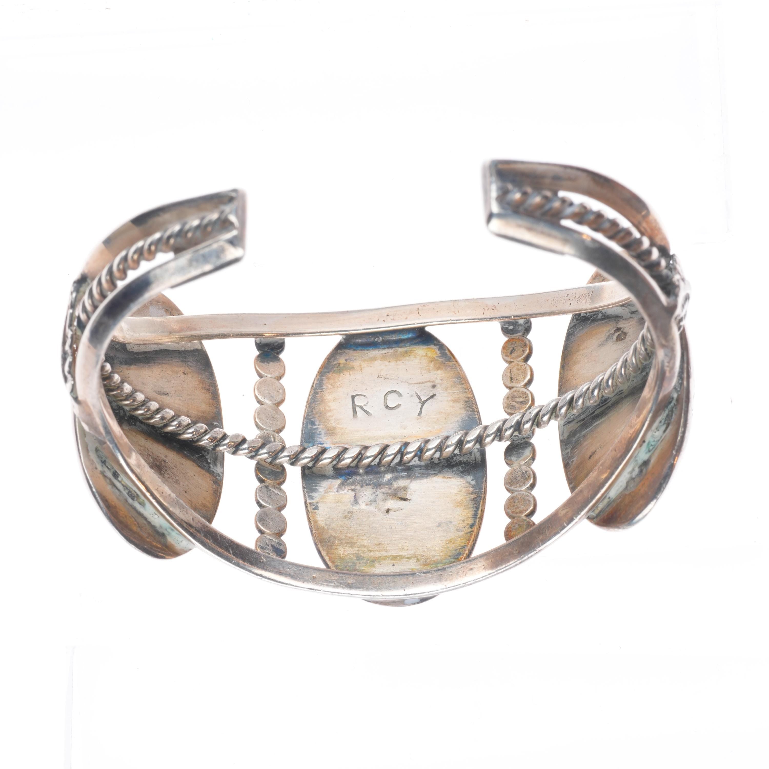6" Raymond Yazzie Navajo vintage sterling silver turquoise cuff bracelet. Tested and guaranteed solid sterling silver with weight and measurements in pictures. Overall expected wear circa third quarter of the 20th century. Extremely well made bracelet, I believe this to be an early work of the now famous Raymond C Yazzie.