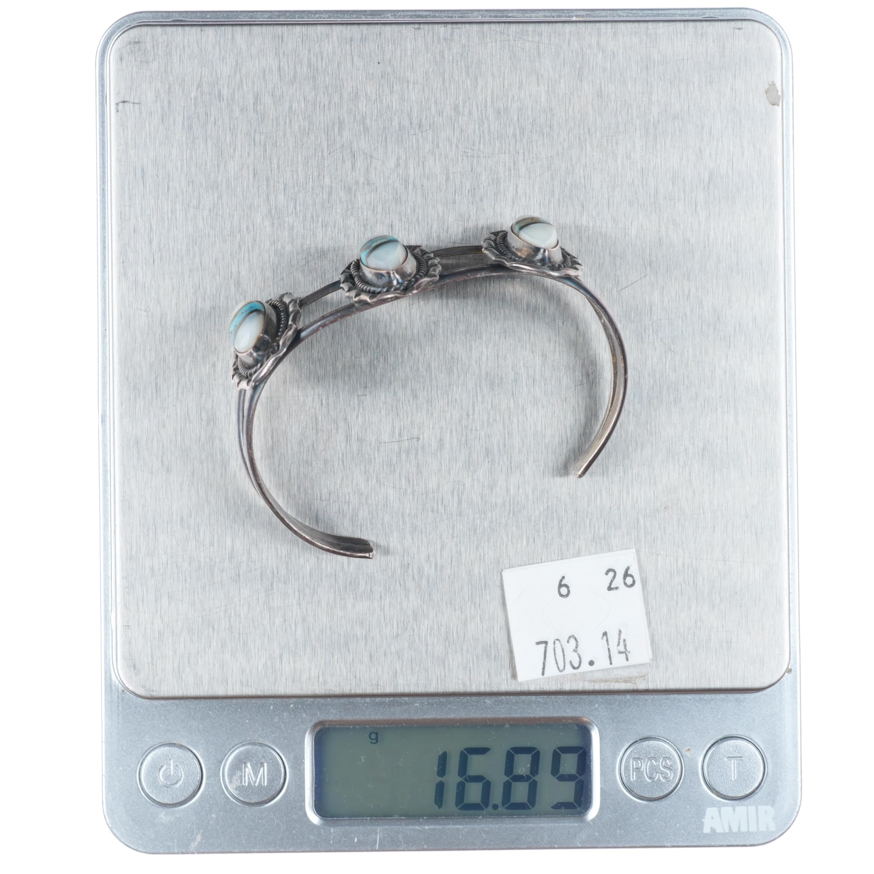 6" vintage Navajo sterling silver turquoise, shell, jet inlay cuff bracelet Share WhatsApp Facebook X Pin it Messenger Email Product form $295.00 Excl. VAT 1 in stock Quantity Add to cart This item is a recurring or deferred purchase. By continuing, I agree to the cancellation policy and authorize you to charge my payment method at the prices, frequency and dates listed on this page until my order is fulfilled or I cancel, if permitted.