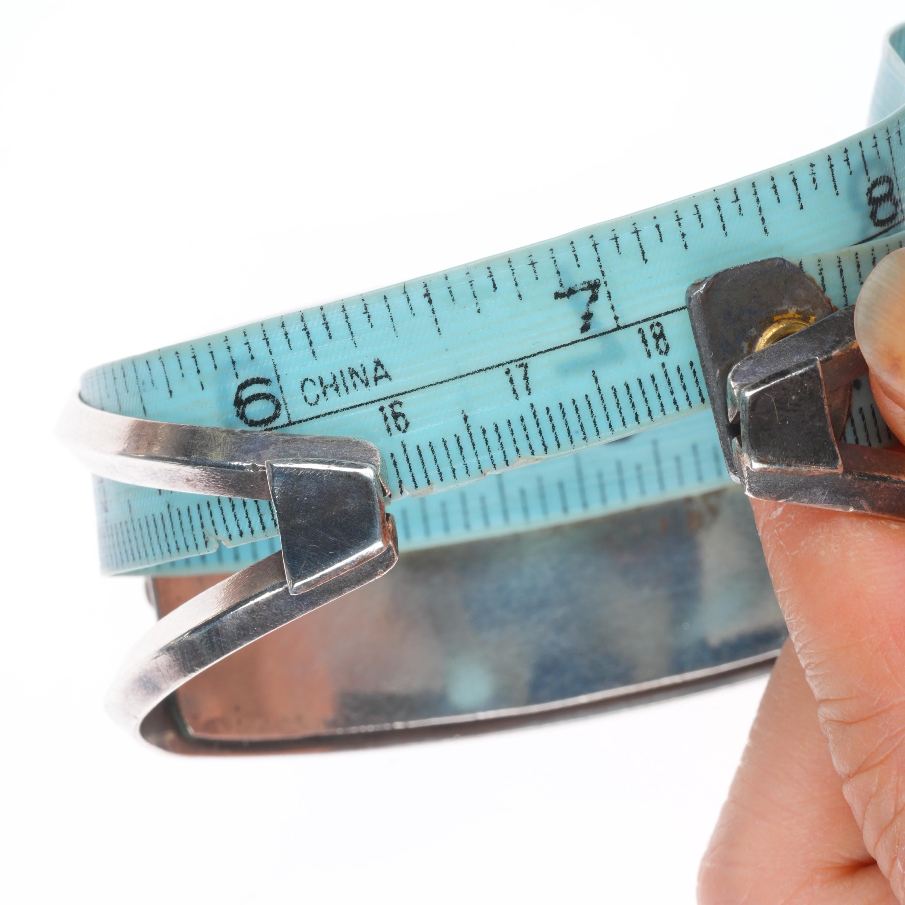 7.1" 50's-60's Vintage Navajo sterling silver turquoise 3 stone cuff bracelet. Tested and guaranteed solid sterling silver with weight and measurements in pictures. Overall expected wear circa third quarter of the 20th century.