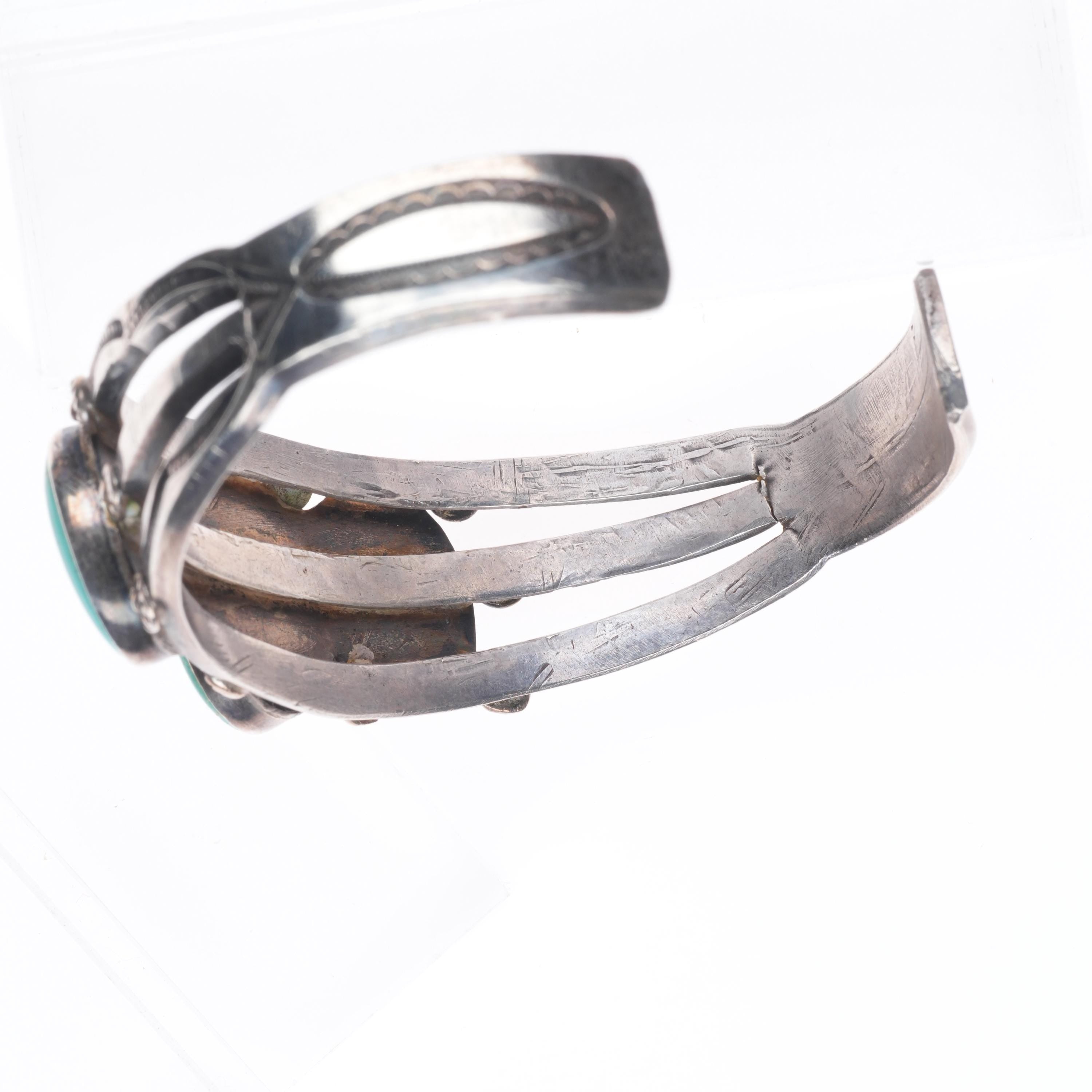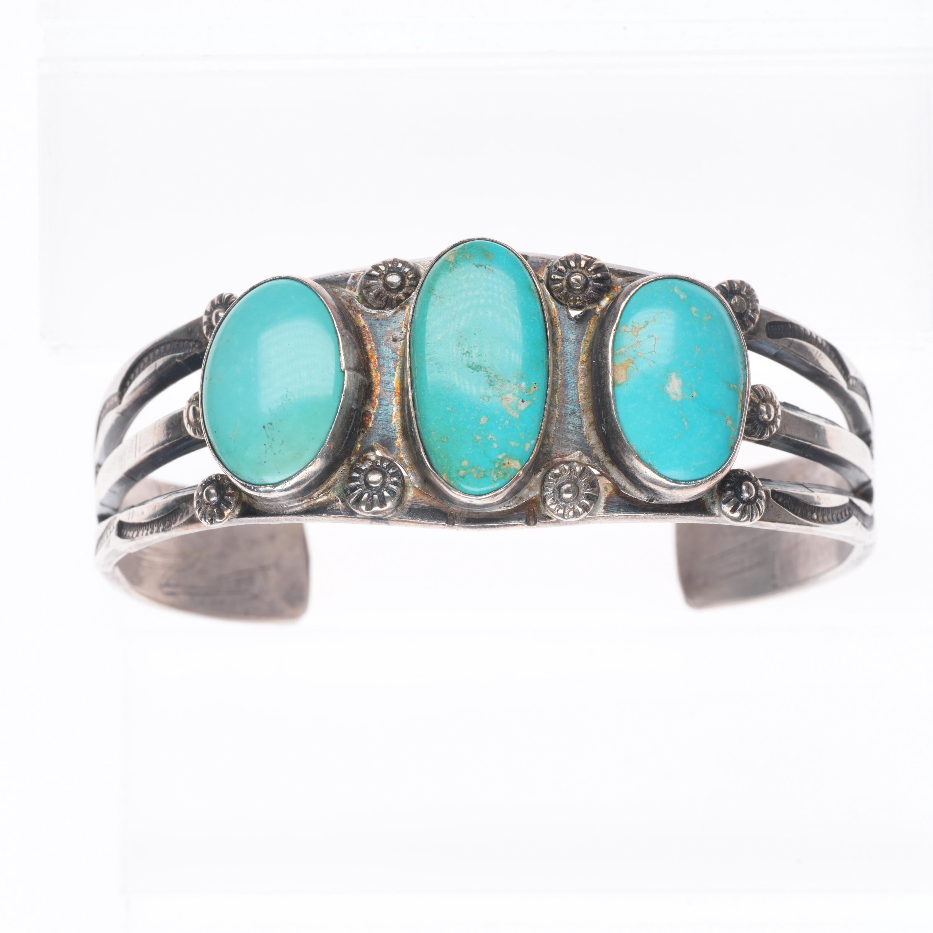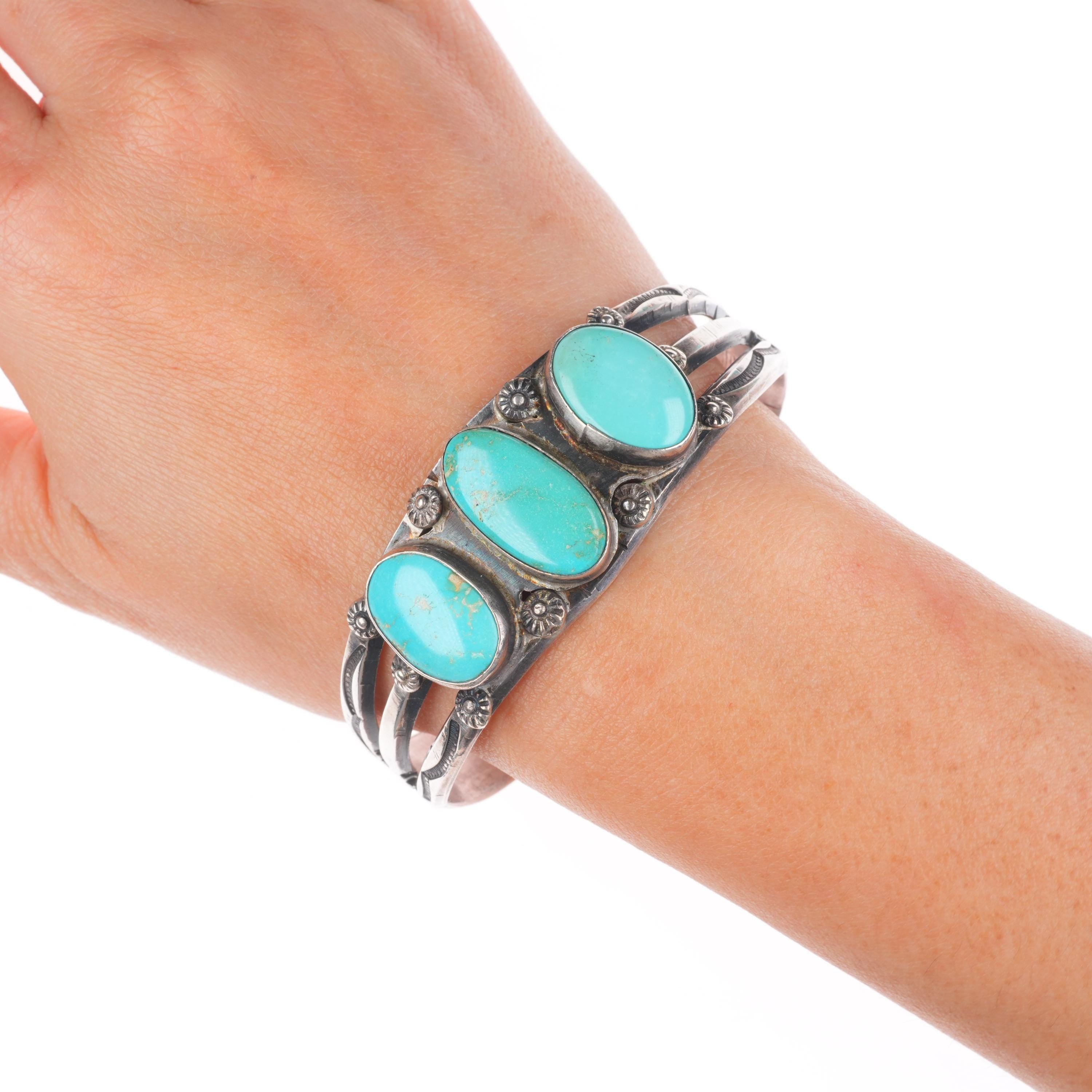 7.2" 30's-40's Vintage Navajo sterling silver 3 stone turquoise cuff bracelet Share WhatsApp Facebook X Pin it Messenger Email Product form $750.00 Excl. VAT 1 in stock Quantity Add to cart This item is a recurring or deferred purchase. By continuing, I agree to the cancellation policy and authorize you to charge my payment method at the prices, frequency and dates listed on this page until my order is fulfilled or I cancel, if permitted.