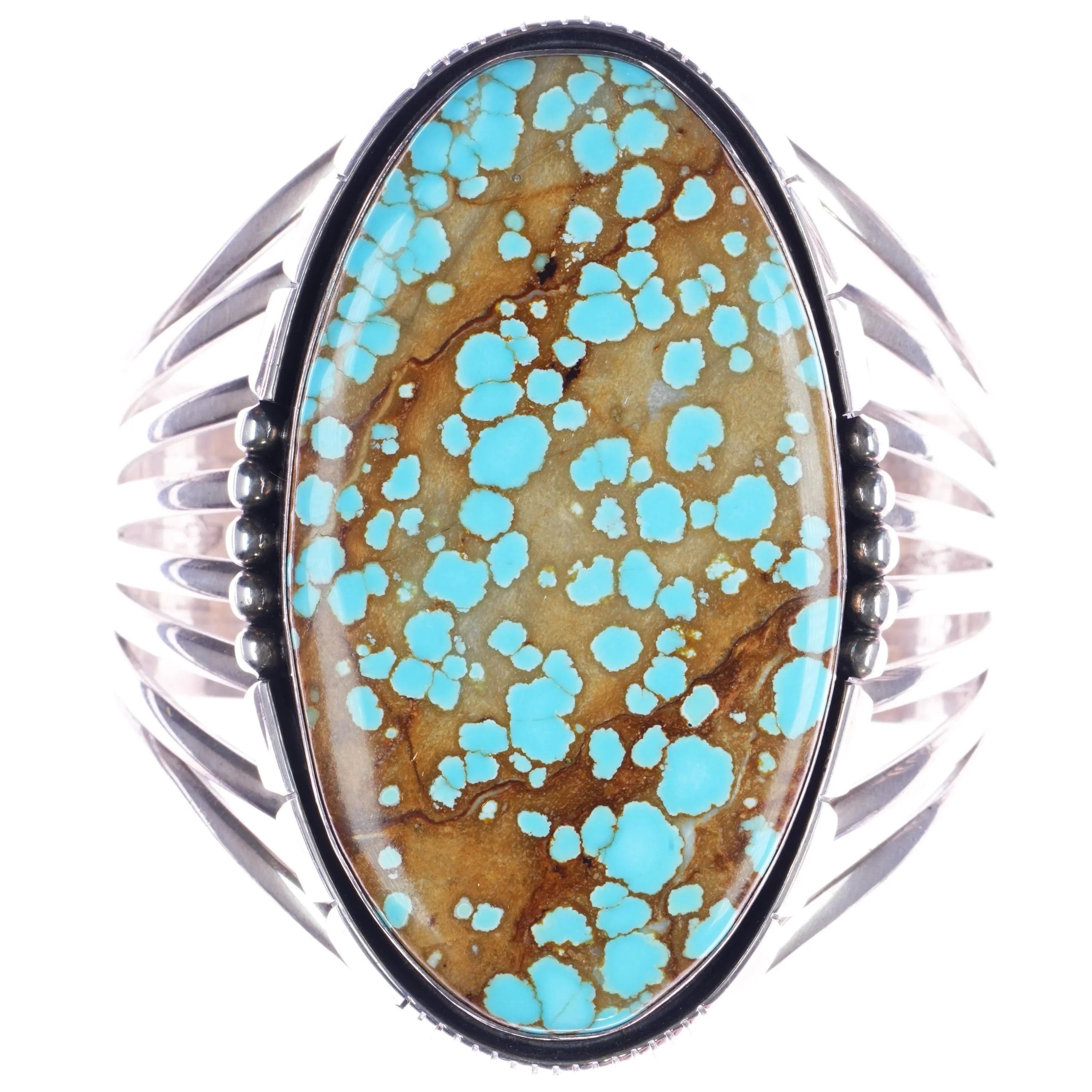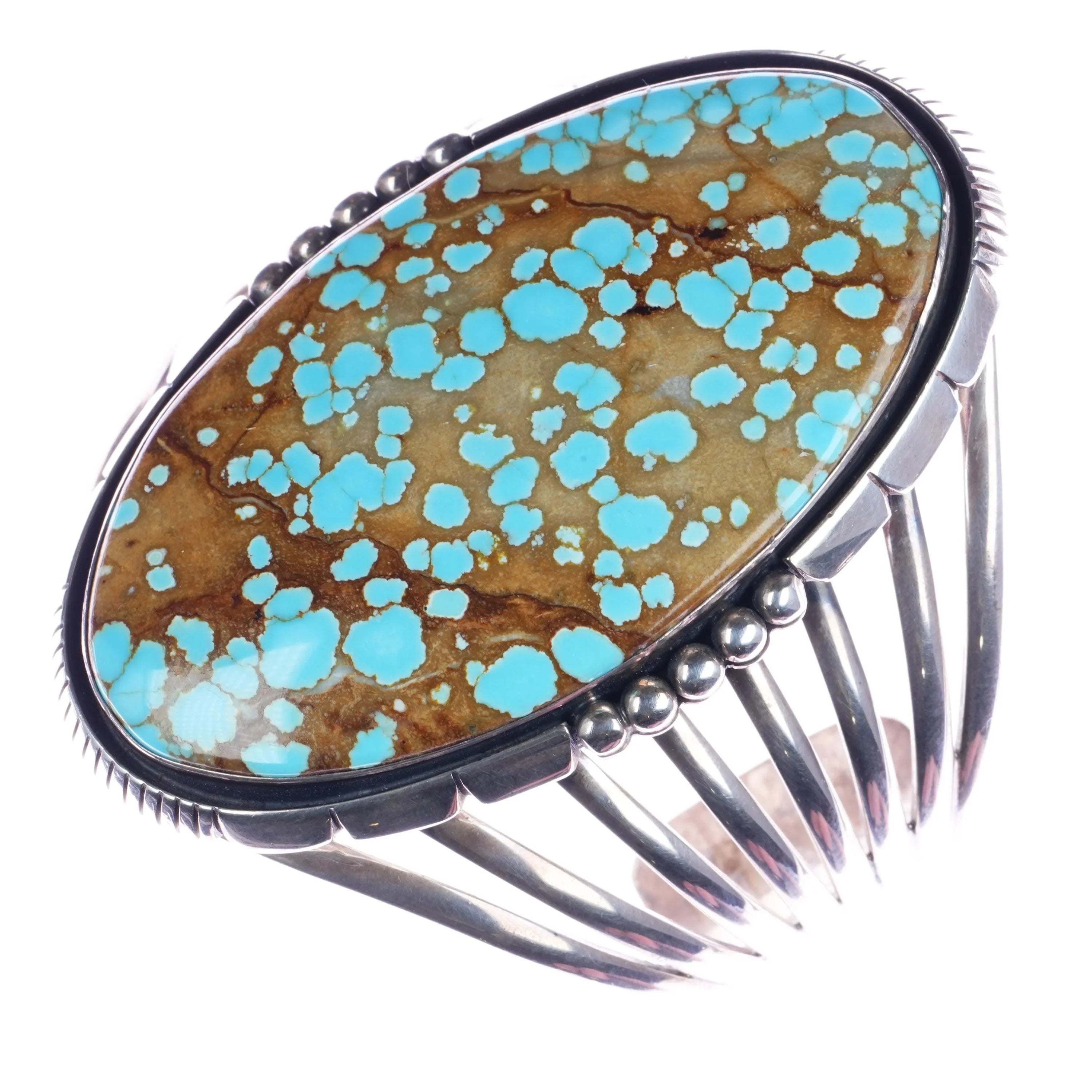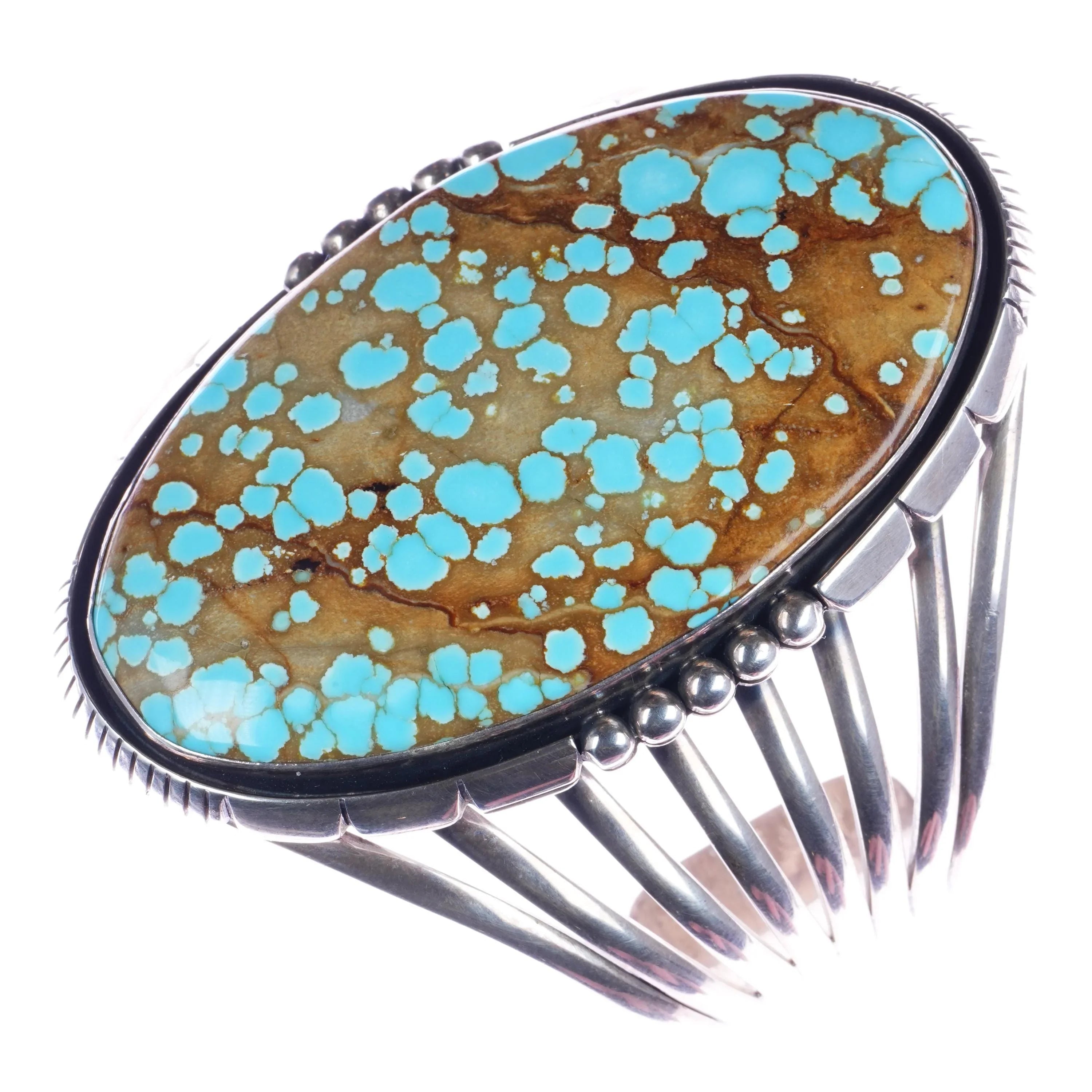7.25" Wil Vandever Navajo sterling #8 turquoise large cuff bracelet