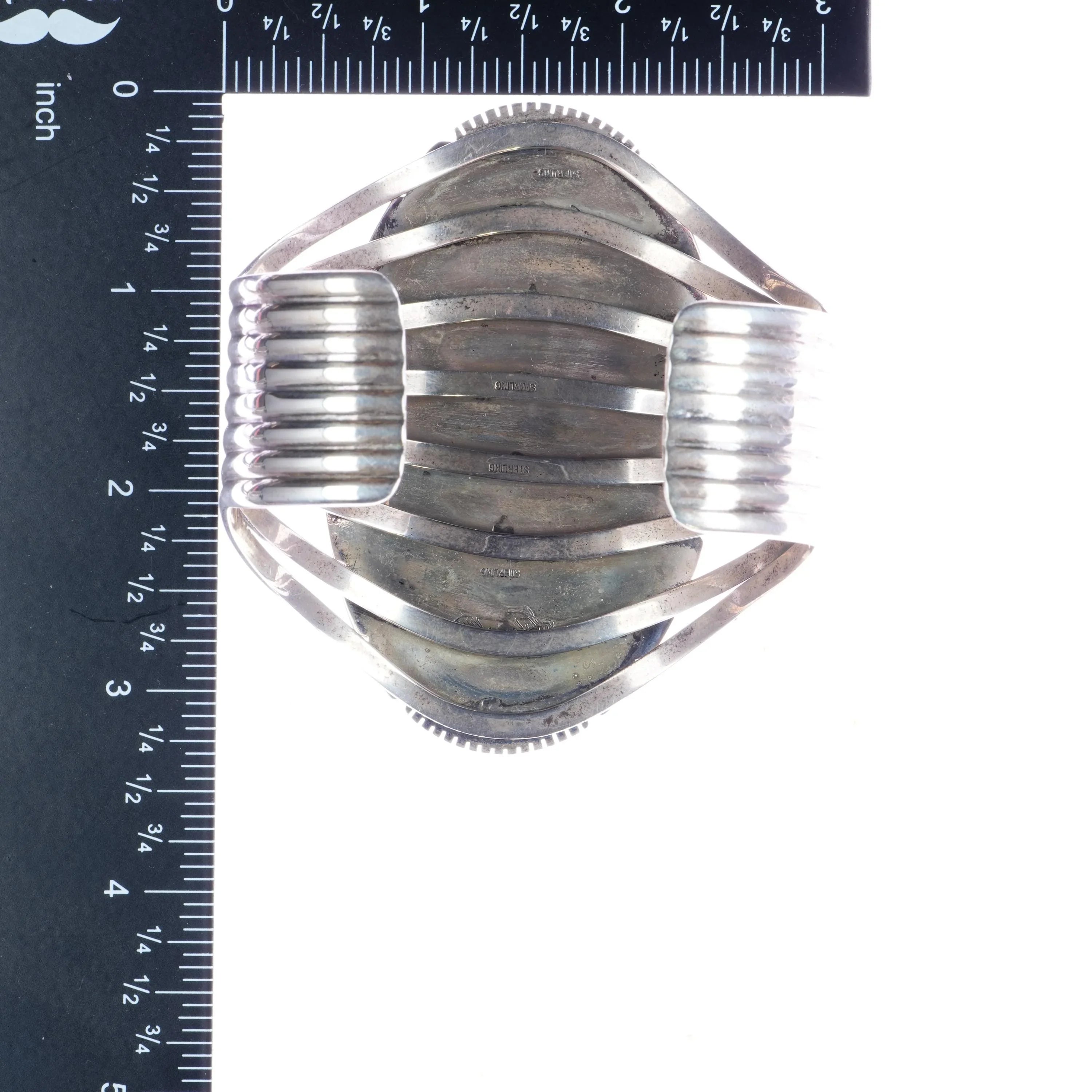 7.25" Wil Vandever Navajo sterling #8 turquoise large cuff bracelet. 7.25" inside circumference including the 1 1/8" gap. Weight and measurements in pics. No Damage or significant wear, really it appears unworn in "new old stock" condition.