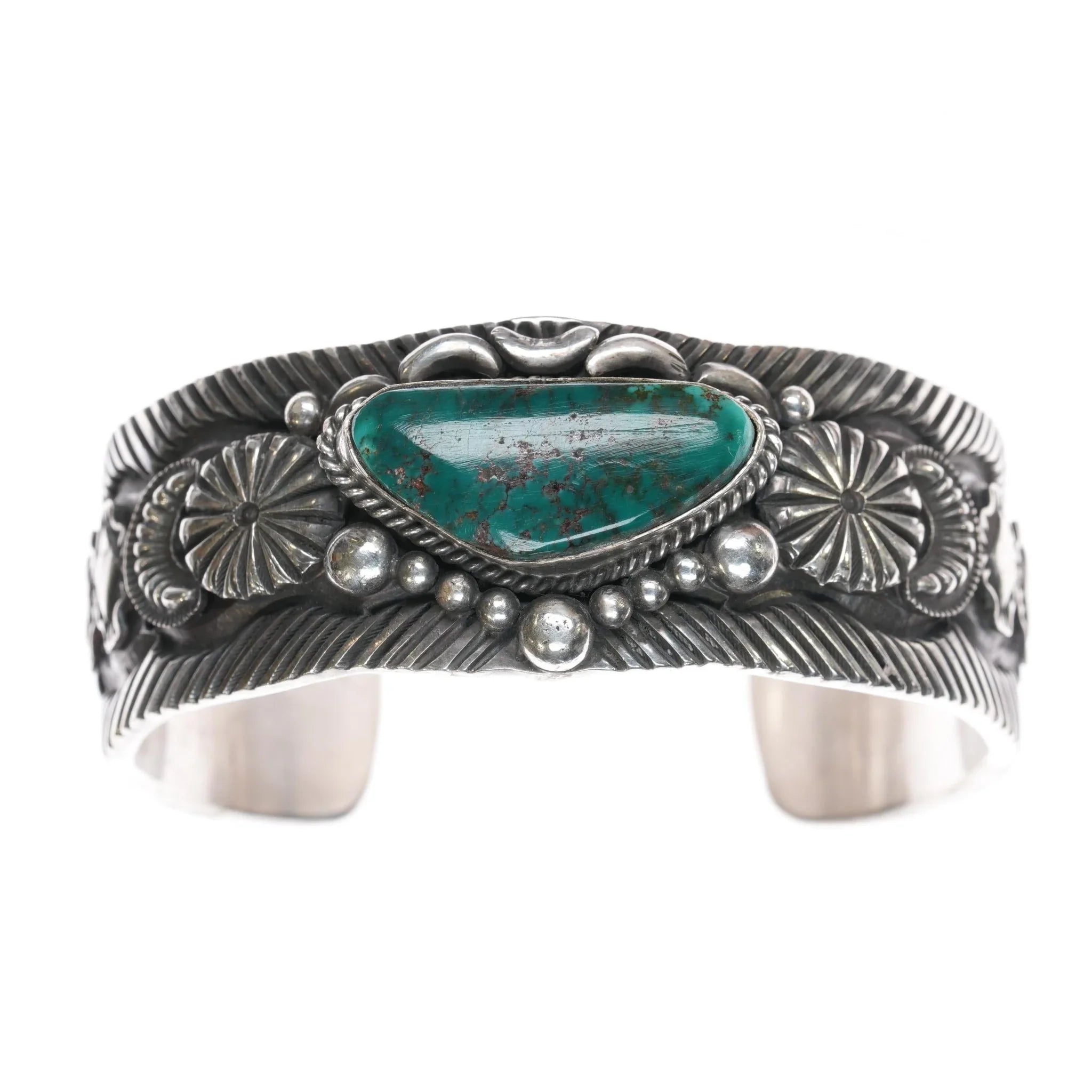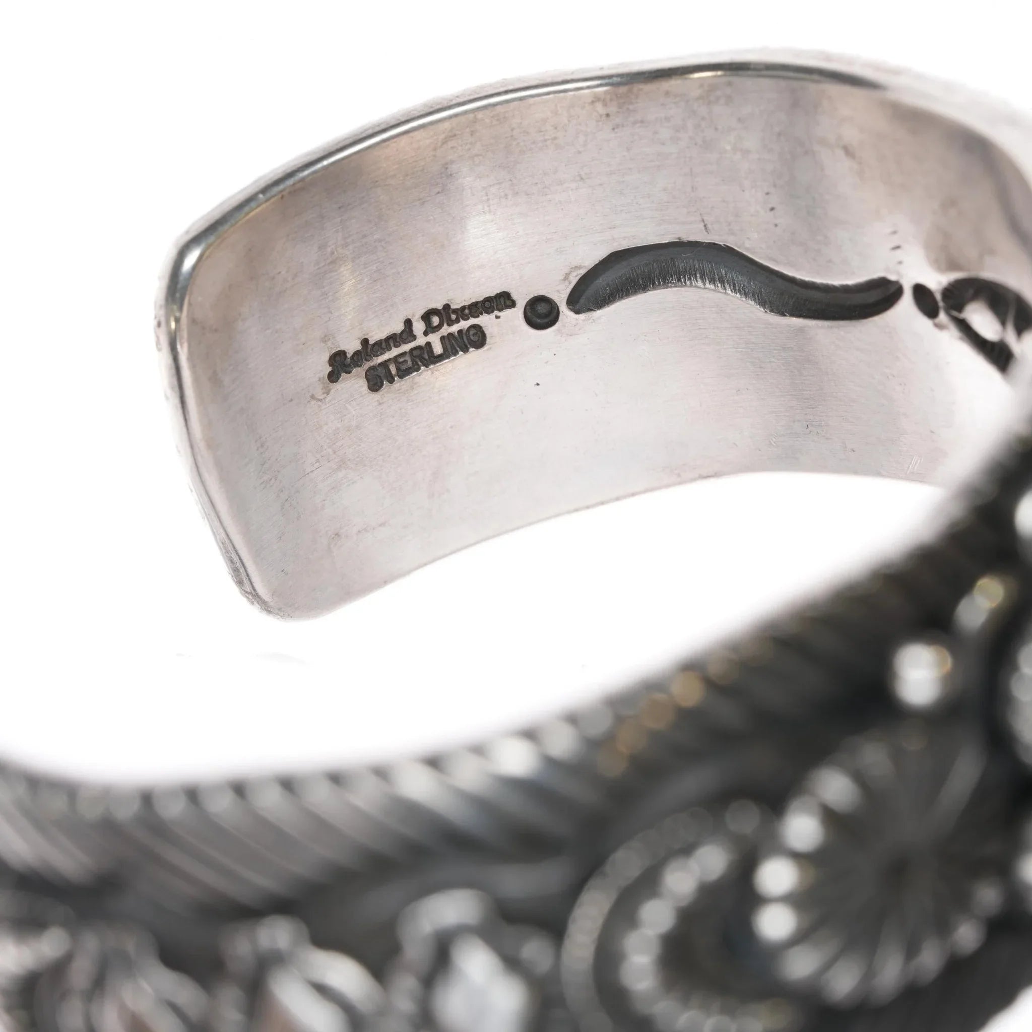 7 3/8" Roland Dixon Navajo sterling high grade turquoise cuff bracelet. This, heavy, handmade Navajo cuff bracelet with no issues. Weight and measurements in pics.