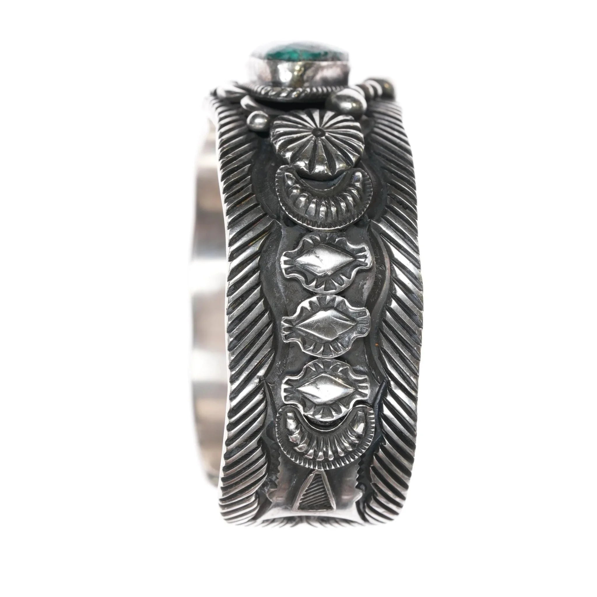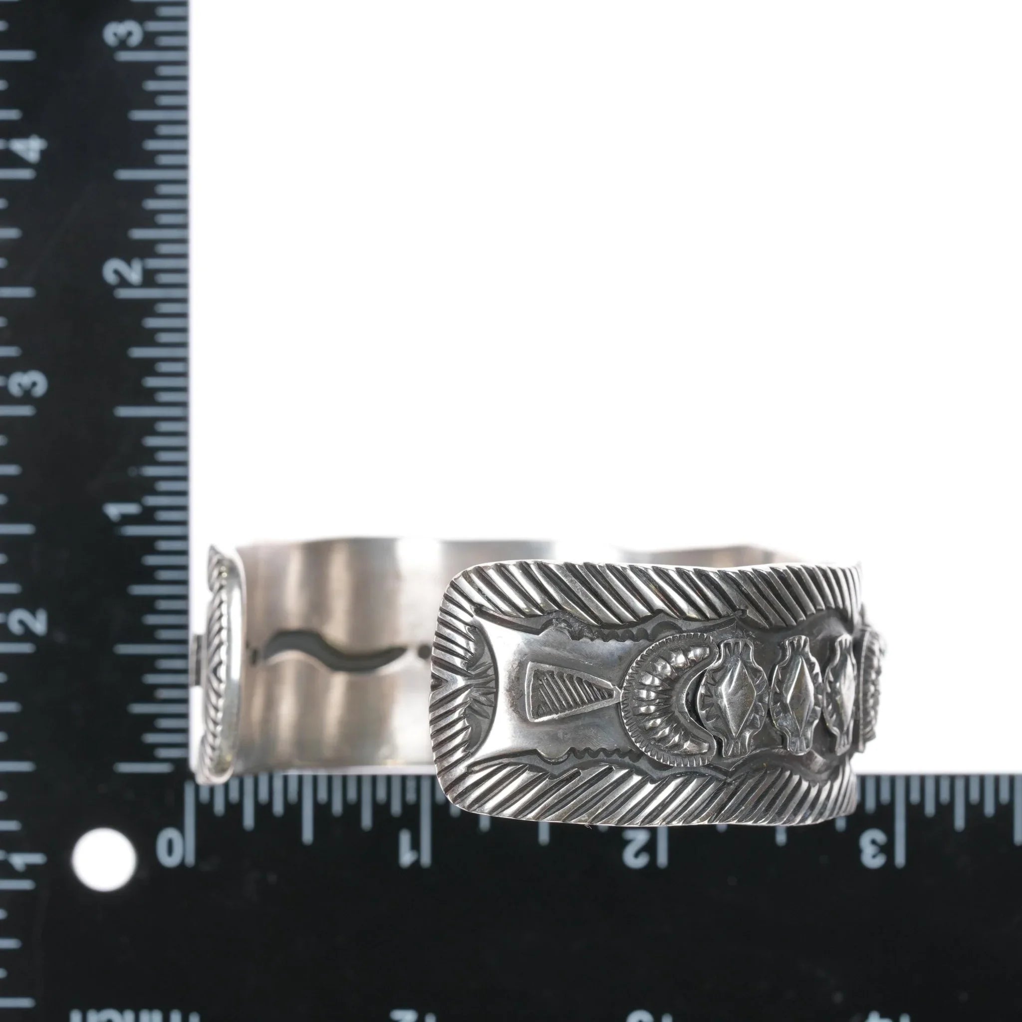 All precious metals are tested and guaranteed. A Native American jewelry piece referred to as "silver" or "ingot" is guaranteed to be at least 90% silver. I rarely use the word "sterling" when referring to older Native American silver or really any older silver jewelry as silver contents vary and "sterling" is 92.5% silver. No older jewelry is going to be exactly 92.5% silver, some a little over, some a little under. It wasn‘t an exact thing with handmade jewelry. I‘ve seen thousands of pieces xrf‘d to prove this. Bracelets are photographed on a 6" women‘s wrist.
