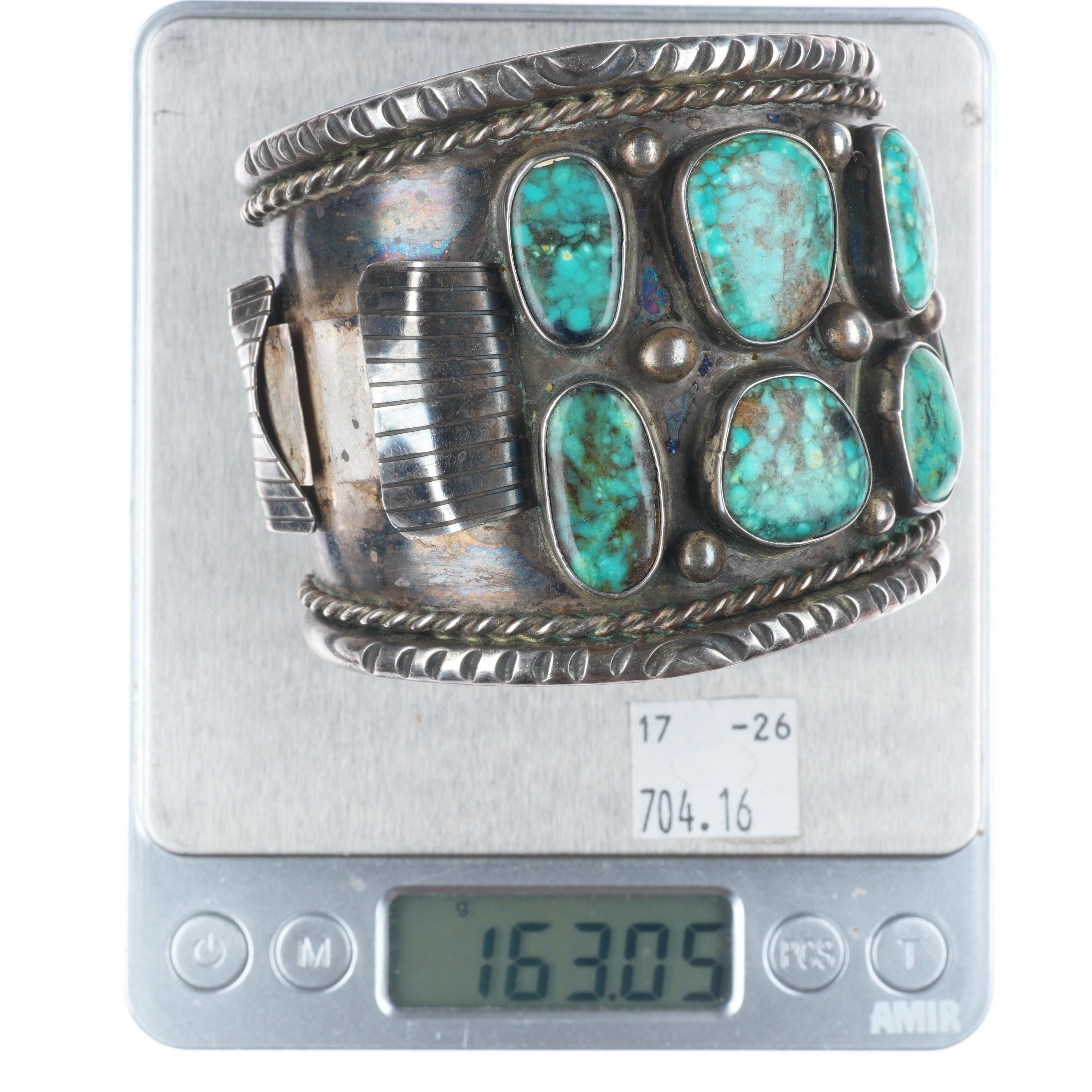 7.4" Huge vintage Navajo sterling silver turquoise nugget watch cuff bracelet