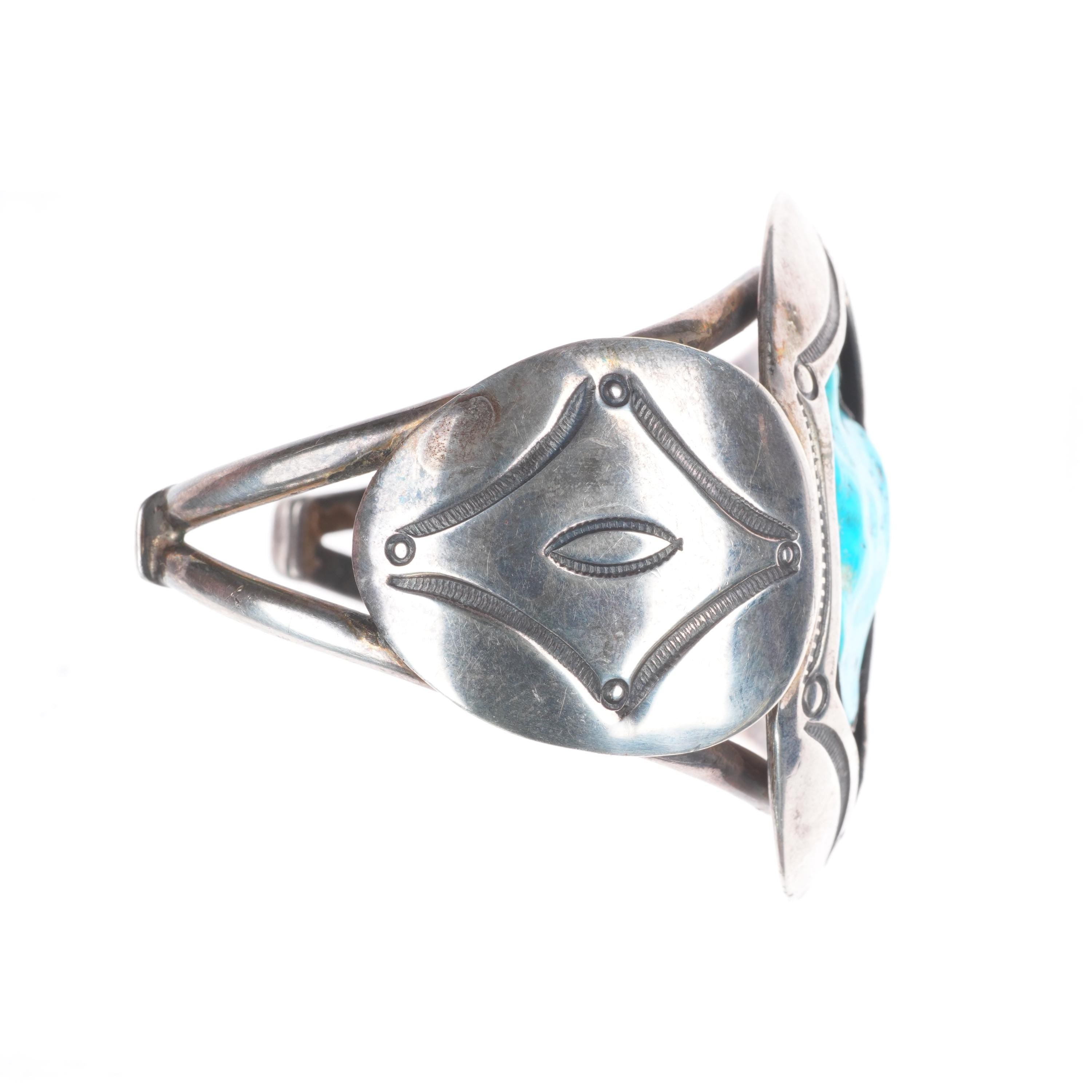 7" Aaron Chischiligi Navajo deep stamped sterling silver turquoise cuff bracelet Share WhatsApp Facebook X Pin it Messenger Email Product form $895.00 Excl. VAT 1 in stock Quantity Add to cart This item is a recurring or deferred purchase. By continuing, I agree to the cancellation policy and authorize you to charge my payment method at the prices, frequency and dates listed on this page until my order is fulfilled or I cancel, if permitted.