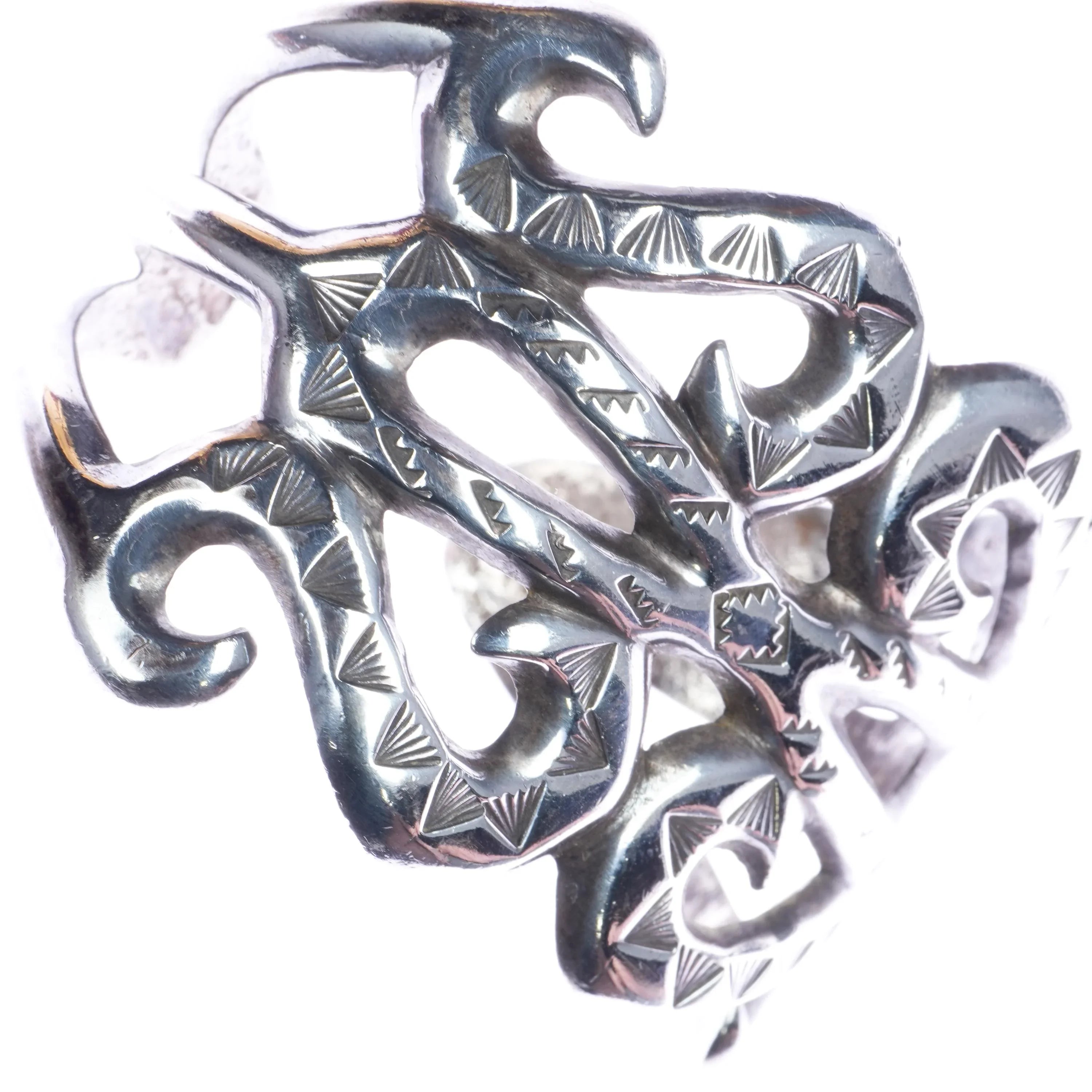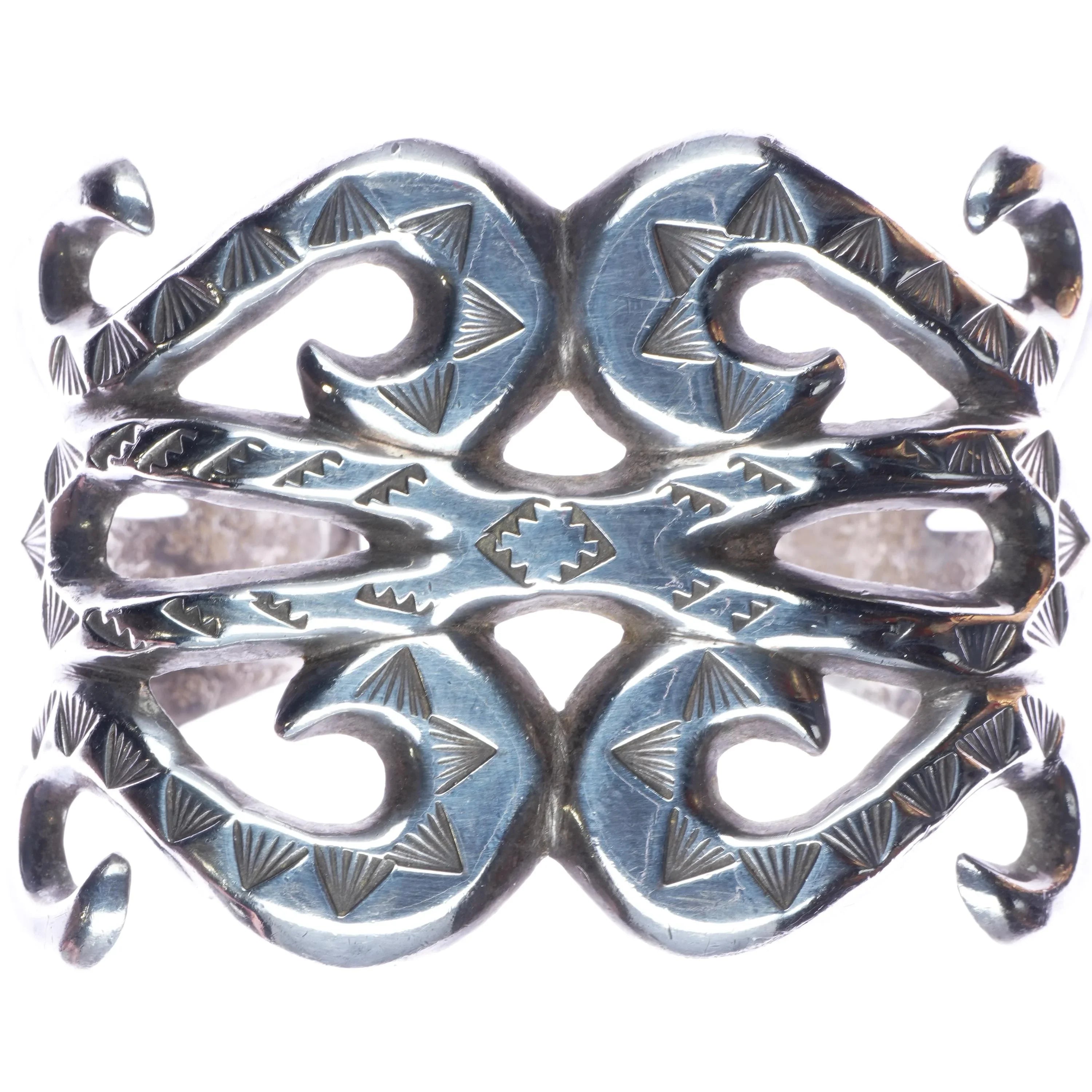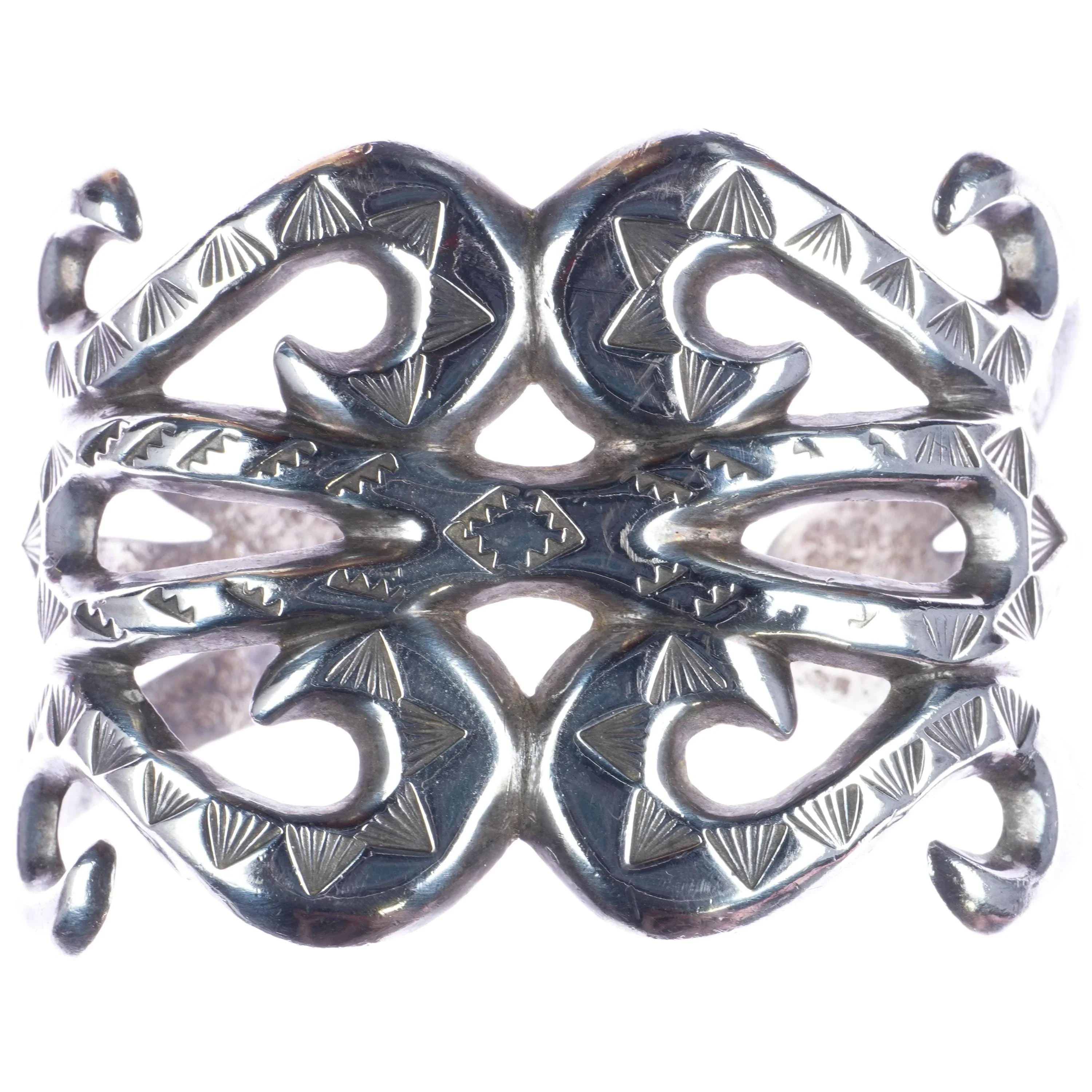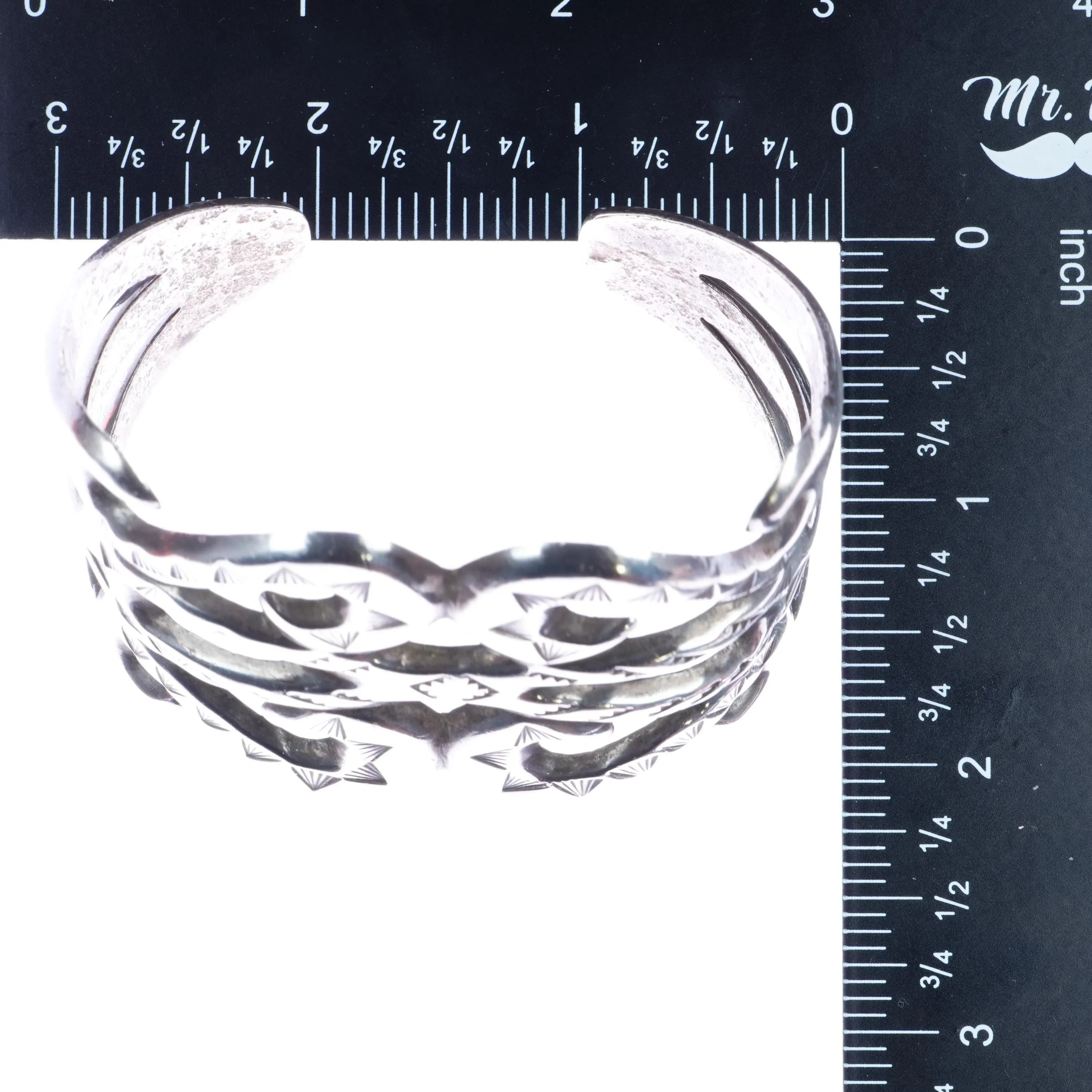 7" Early Navajo hand stamped cast silver cuff bracelet