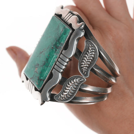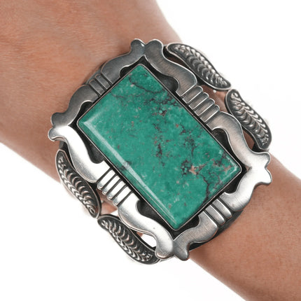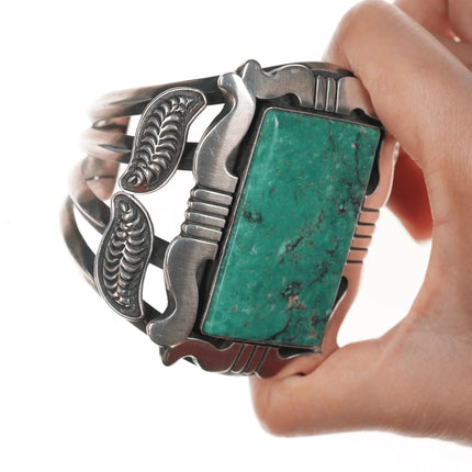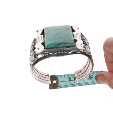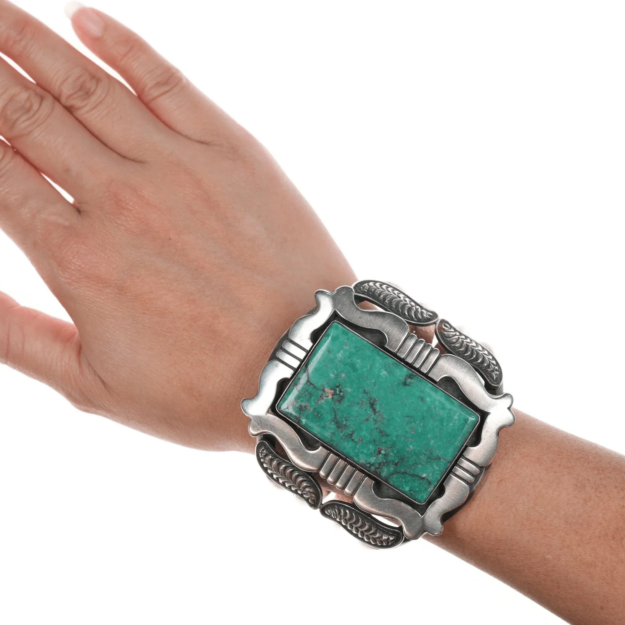7" M Navajo large sterling Emerald Valley turquoise cuff bracelet. Very well made bracelet with nice large stone, no issure. Unsure of Artisan.
