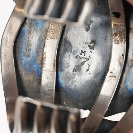 Marked or unmarked as shown in pics, weight and other measurements in pics. Sorry but my jewelry is<br>stored in a secure location and cannot be accessed for more pictures, videos, or<br>measurements until sold. If you look at pictures/description your question<br>should be answered. Thank you so much for your time and consideration!All precious metals are tested and guaranteed, any Native American jewelry<br>referred to as Silver or Sterling is guaranteed to be a minimum of 90% (coin)<br>silver and possibly higher content. Anything marked is guaranteed to be what<br>it's marked, most bracelets are photographed on a 6" wrist (non hairy), rings<br>photographed on the appropriate sized finger when possible. With bracelets if<br>the measurement is not given in the description then inside circumference is<br>shown where the metal meets the number on the the cloth tape measure.