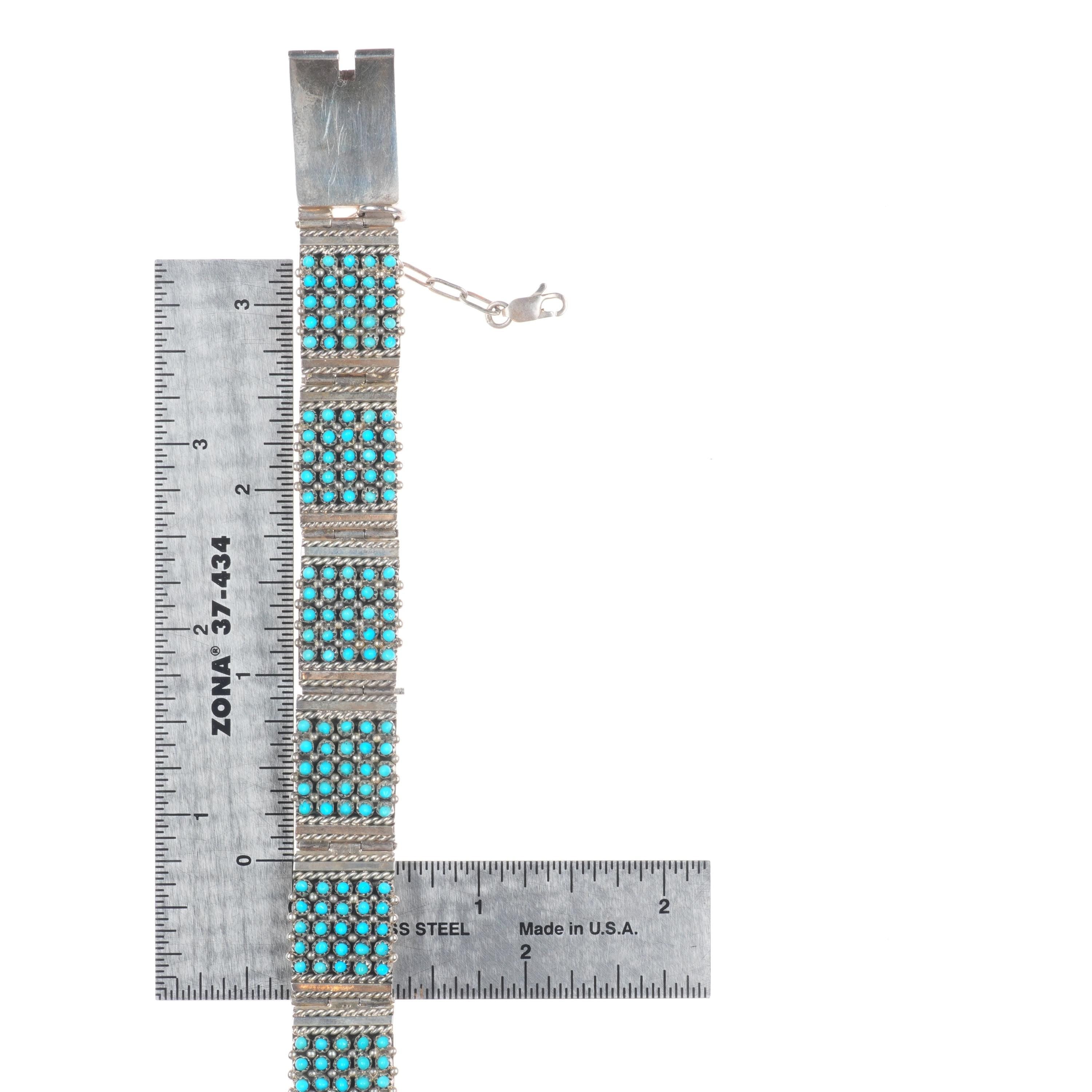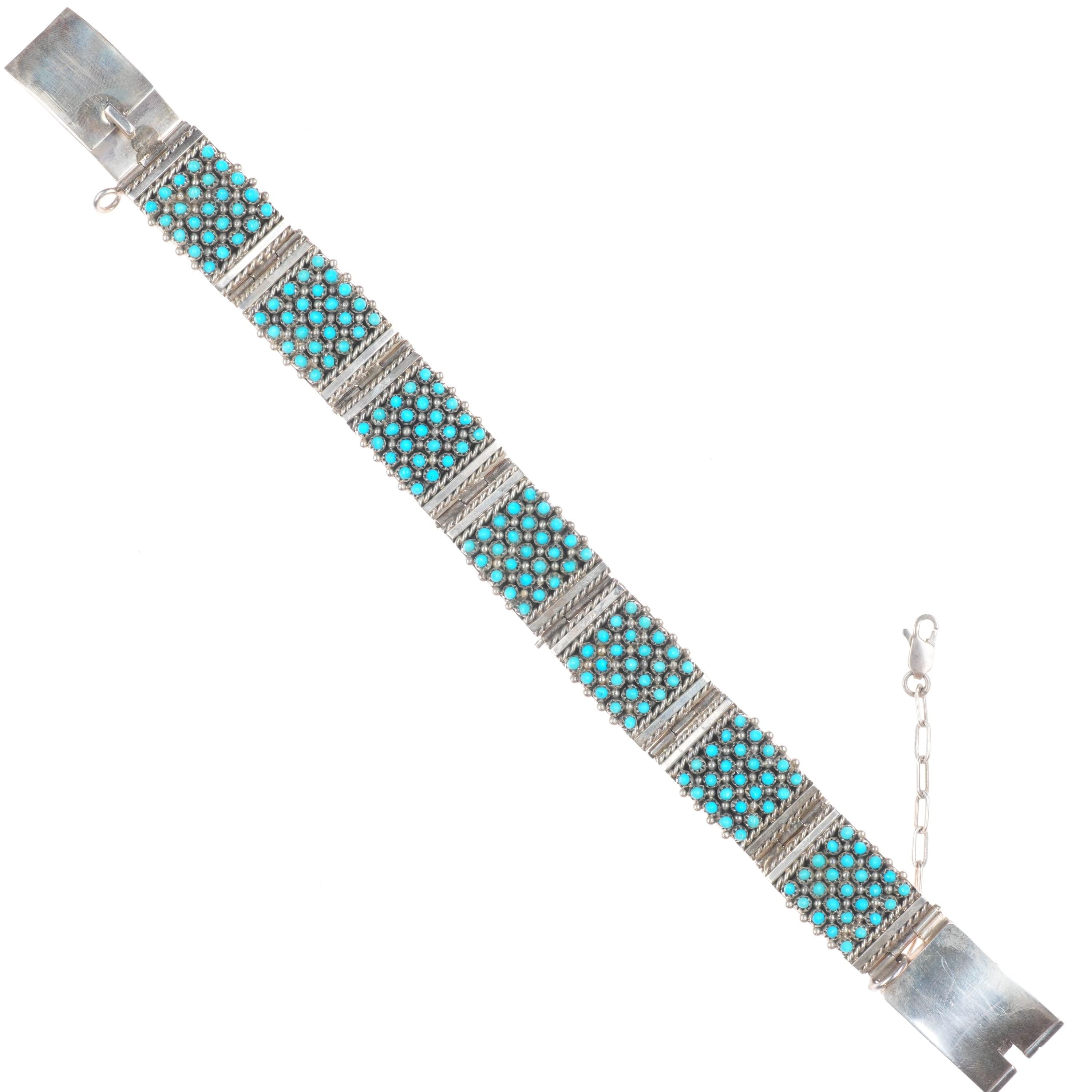 7" Stephen Haloo Zuni sterling silver snake eye turquoise vintage link bracelet