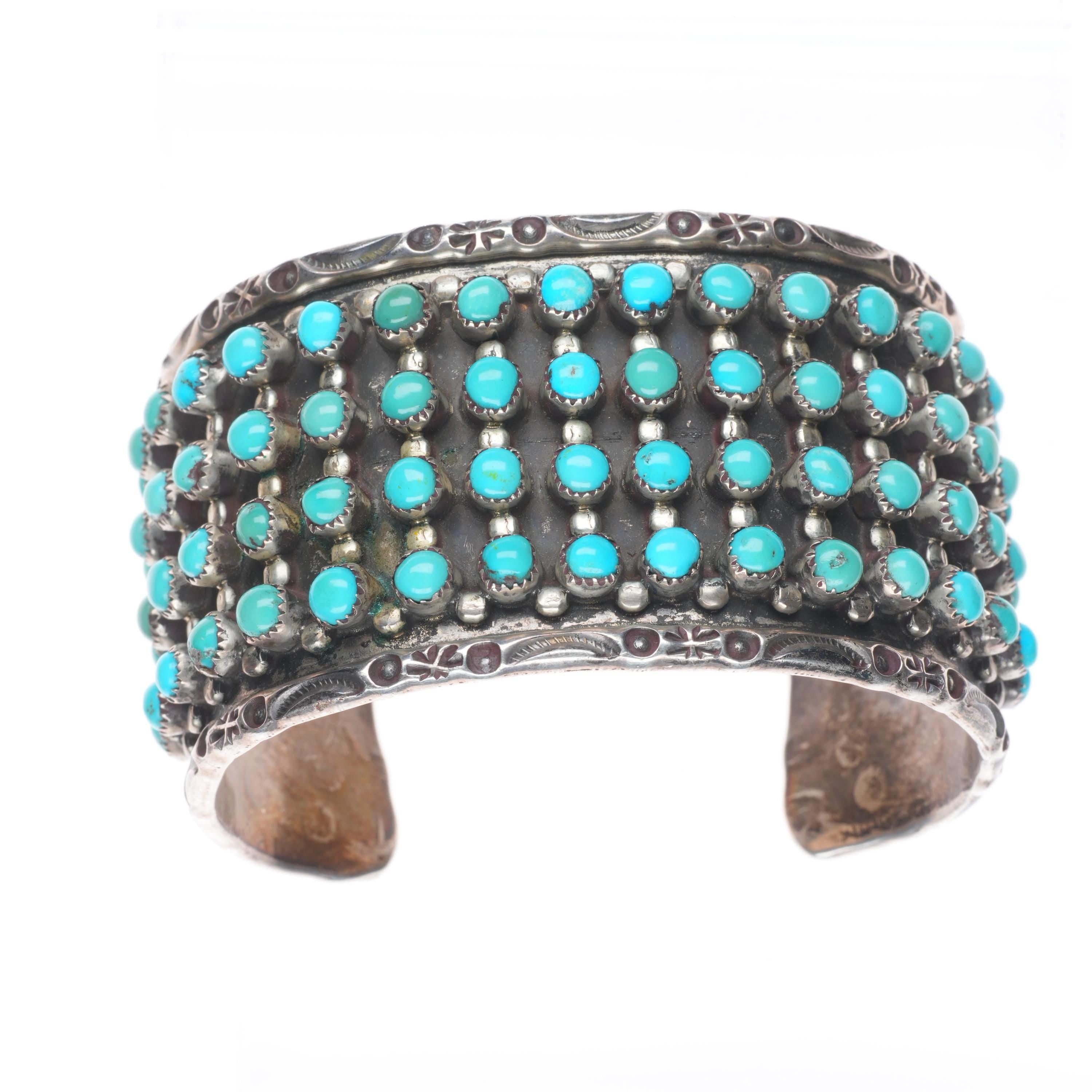7" Vintage JP Ukestine Zuni sterling silver snake eye turquoise cuff bracelet Share WhatsApp Facebook X Pin it Messenger Email Product form $1,450.00 Excl. VAT 1 in stock Quantity Add to cart This item is a recurring or deferred purchase. By continuing, I agree to the cancellation policy and authorize you to charge my payment method at the prices, frequency and dates listed on this page until my order is fulfilled or I cancel, if permitted.