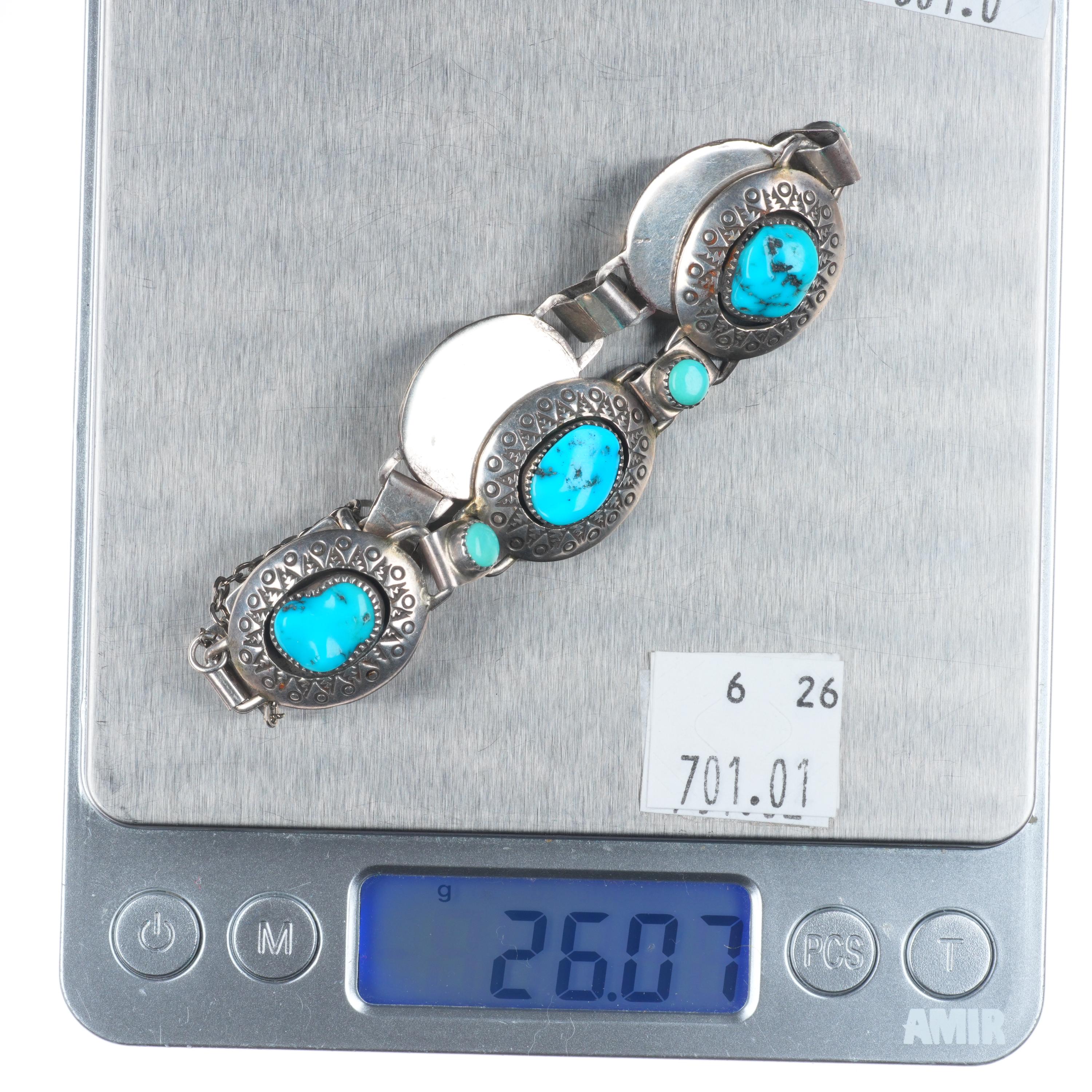 7" Vintage Navajo hand stamped sterling silver shadowbox turquoise link bracelet Share WhatsApp Facebook X Pin it Messenger Email Product form $495.00 Excl. VAT 1 in stock Quantity Add to cart This item is a recurring or deferred purchase. By continuing, I agree to the cancellation policy and authorize you to charge my payment method at the prices, frequency and dates listed on this page until my order is fulfilled or I cancel, if permitted.
