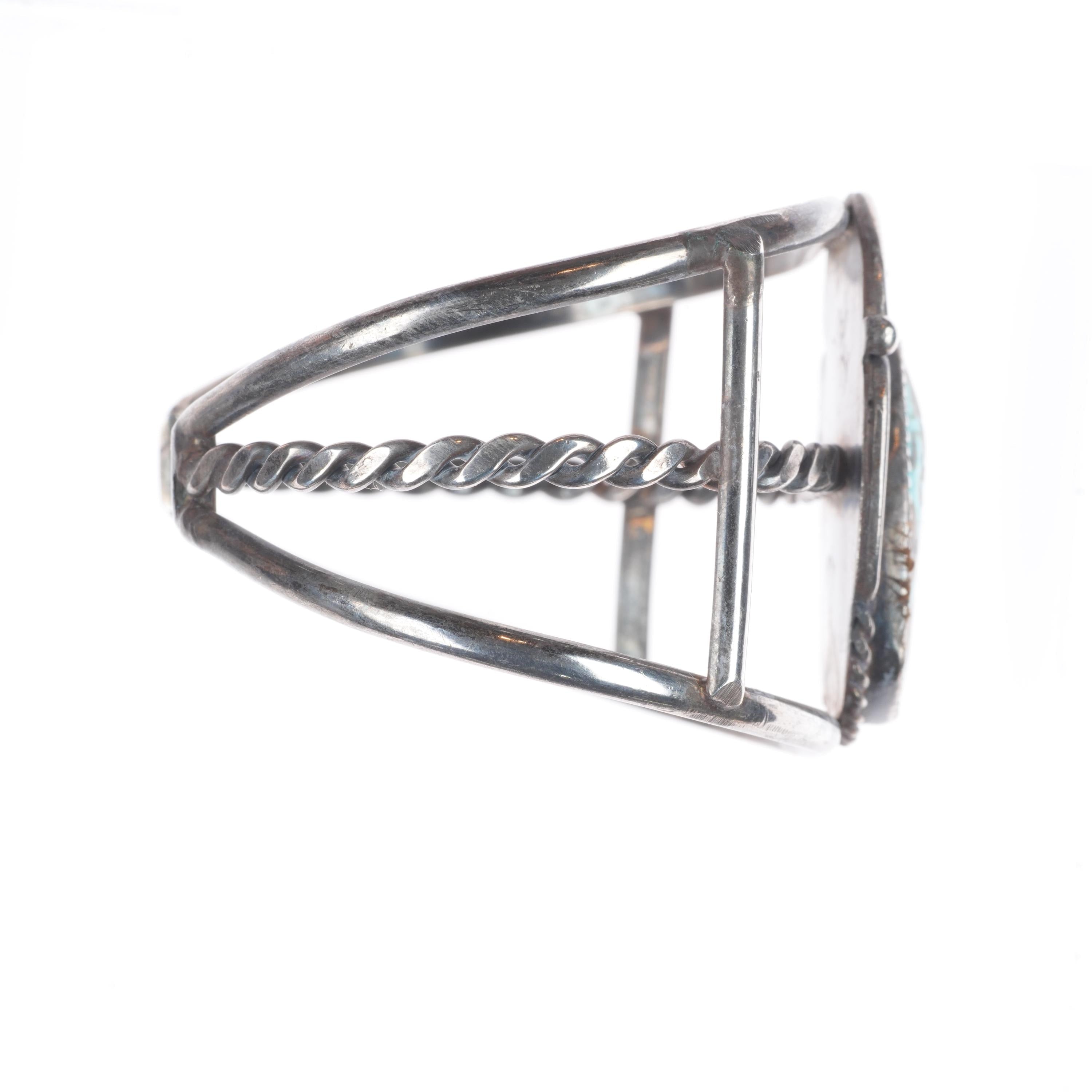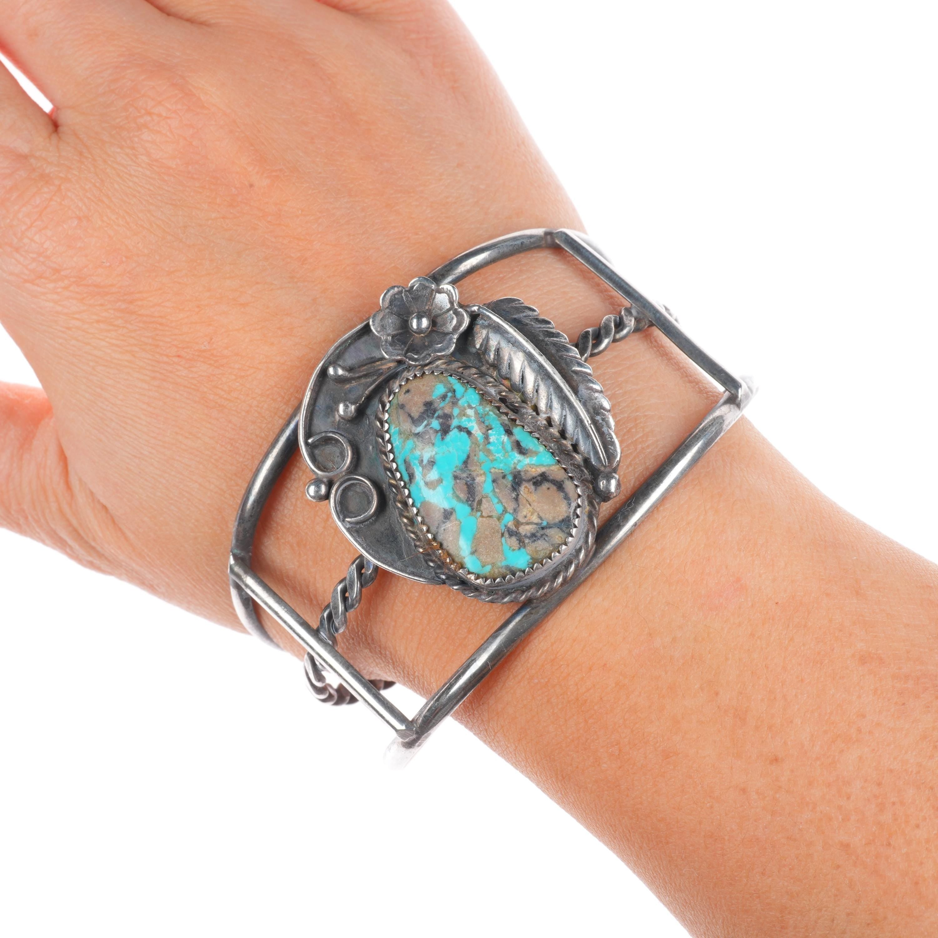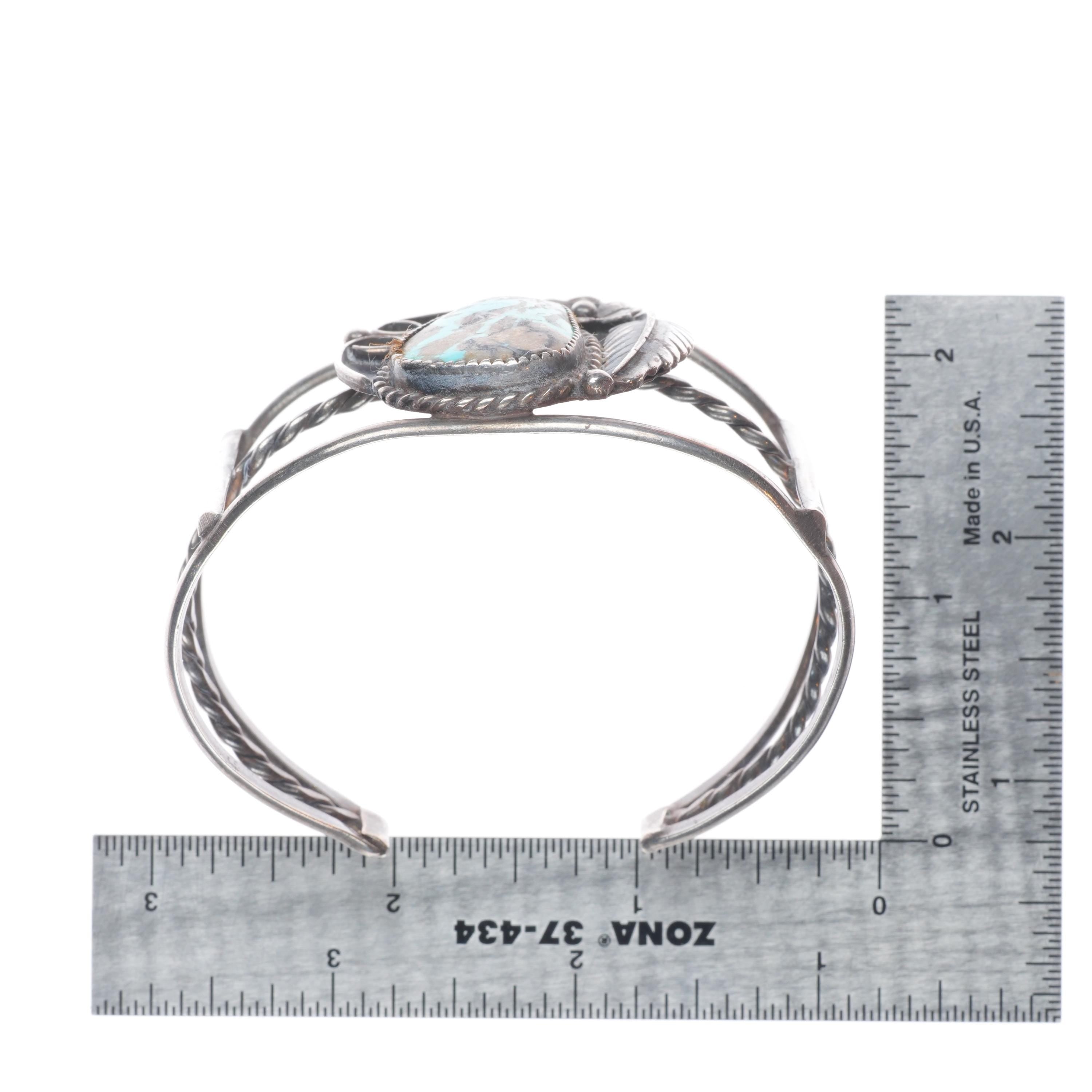 7" Vintage Navajo sterling silver turquoise cuff bracelet with nice turquoise Tested and guaranteed solid sterling silver with weight and measurements in pictures. Great condition with age appropriate wear, circa third quarter of the 20th century.