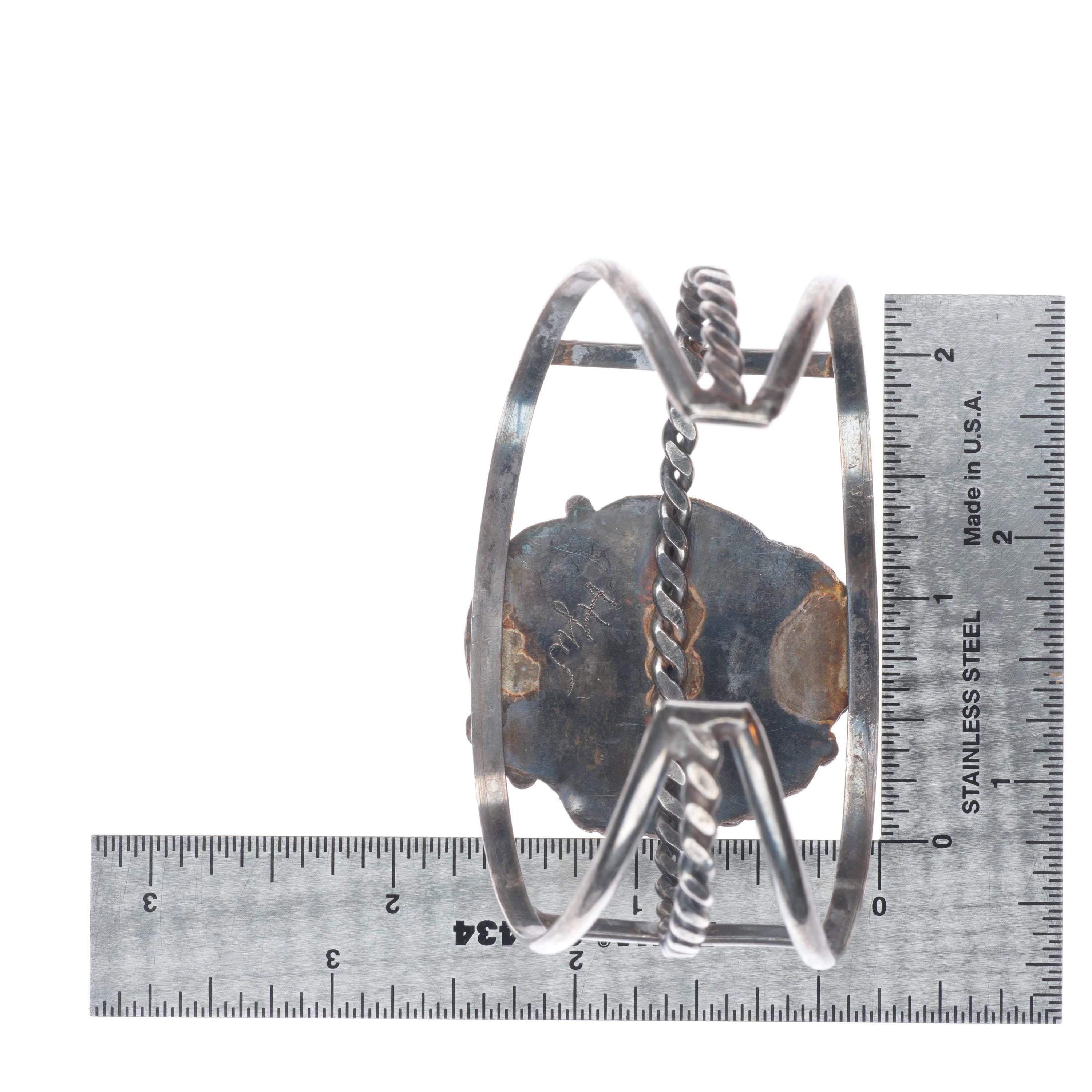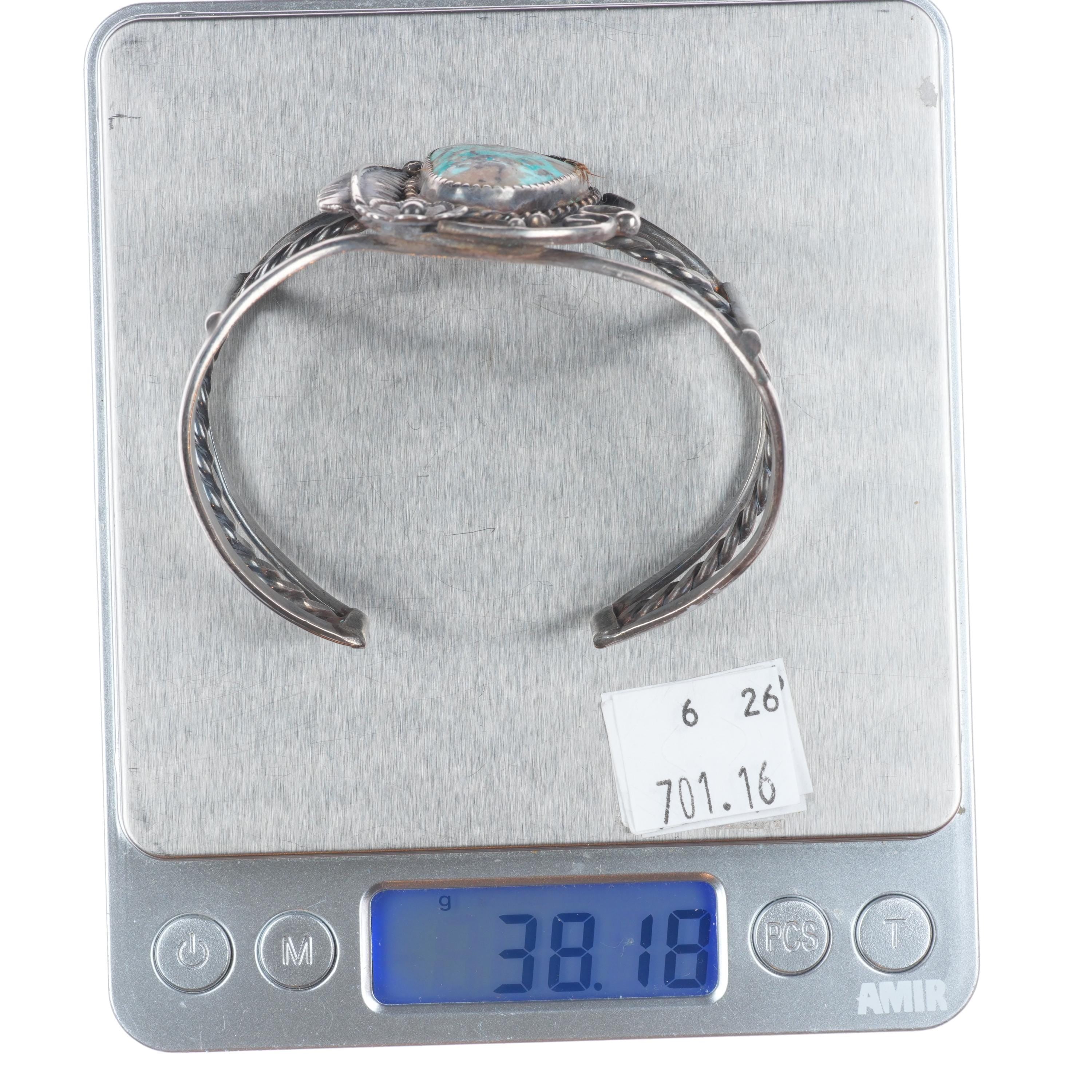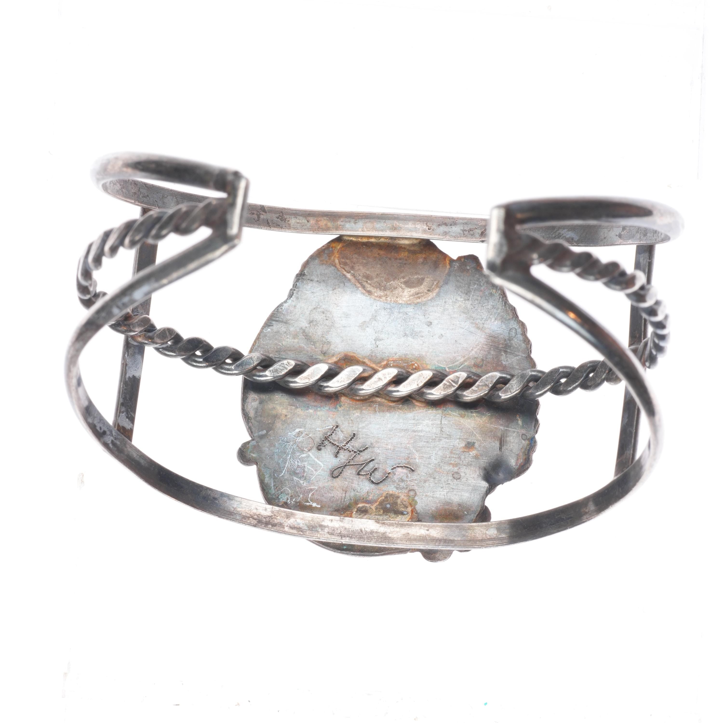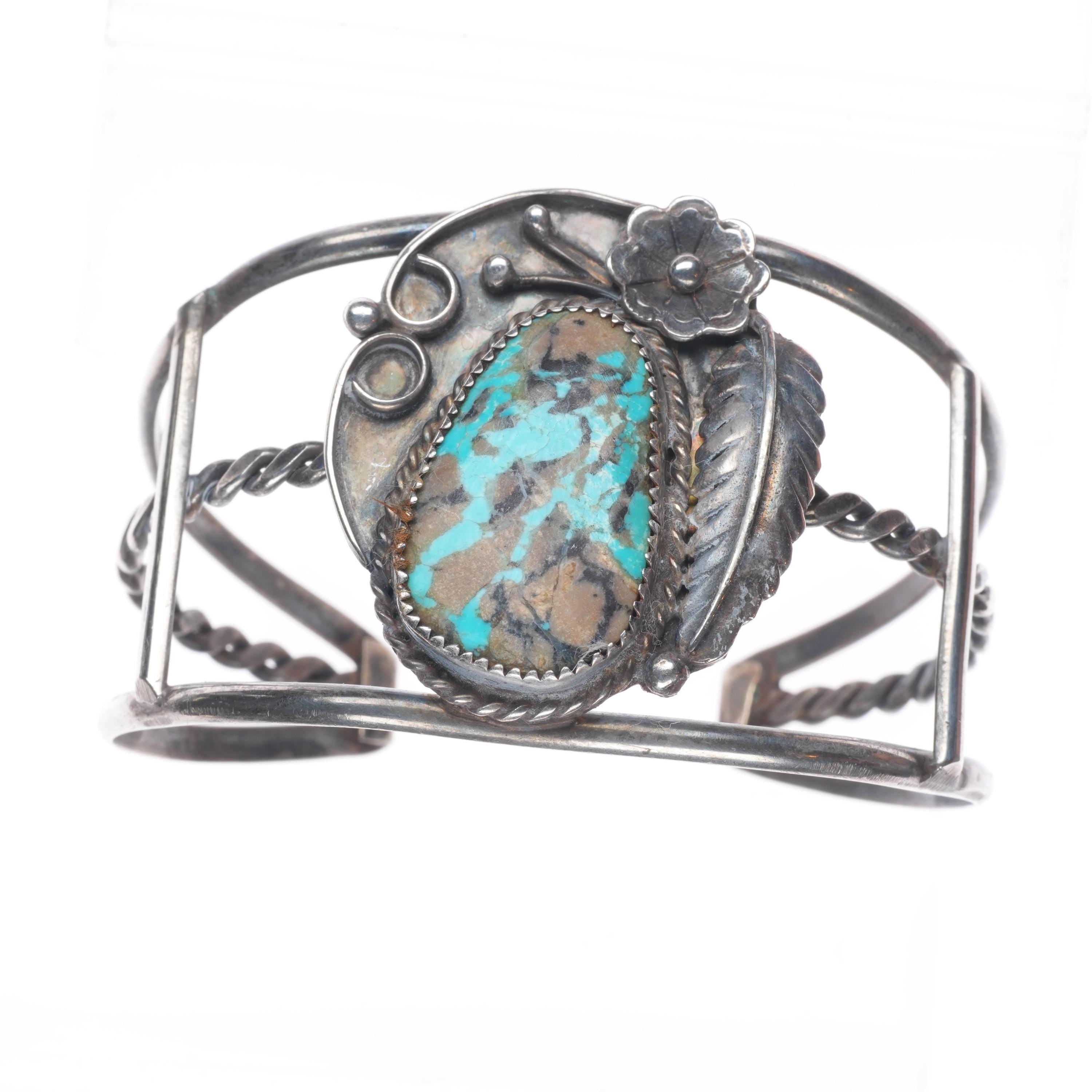 7" Vintage Navajo sterling silver turquoise cuff bracelet with nice turquoise Tested and guaranteed solid sterling silver with weight and measurements in pictures. Great condition with age appropriate wear, circa third quarter of the 20th century.