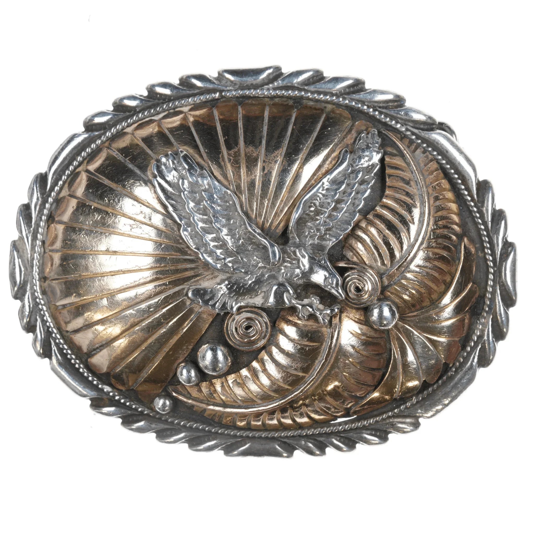 70's-80's Native American sterling/gold filled eagle belt buckle.