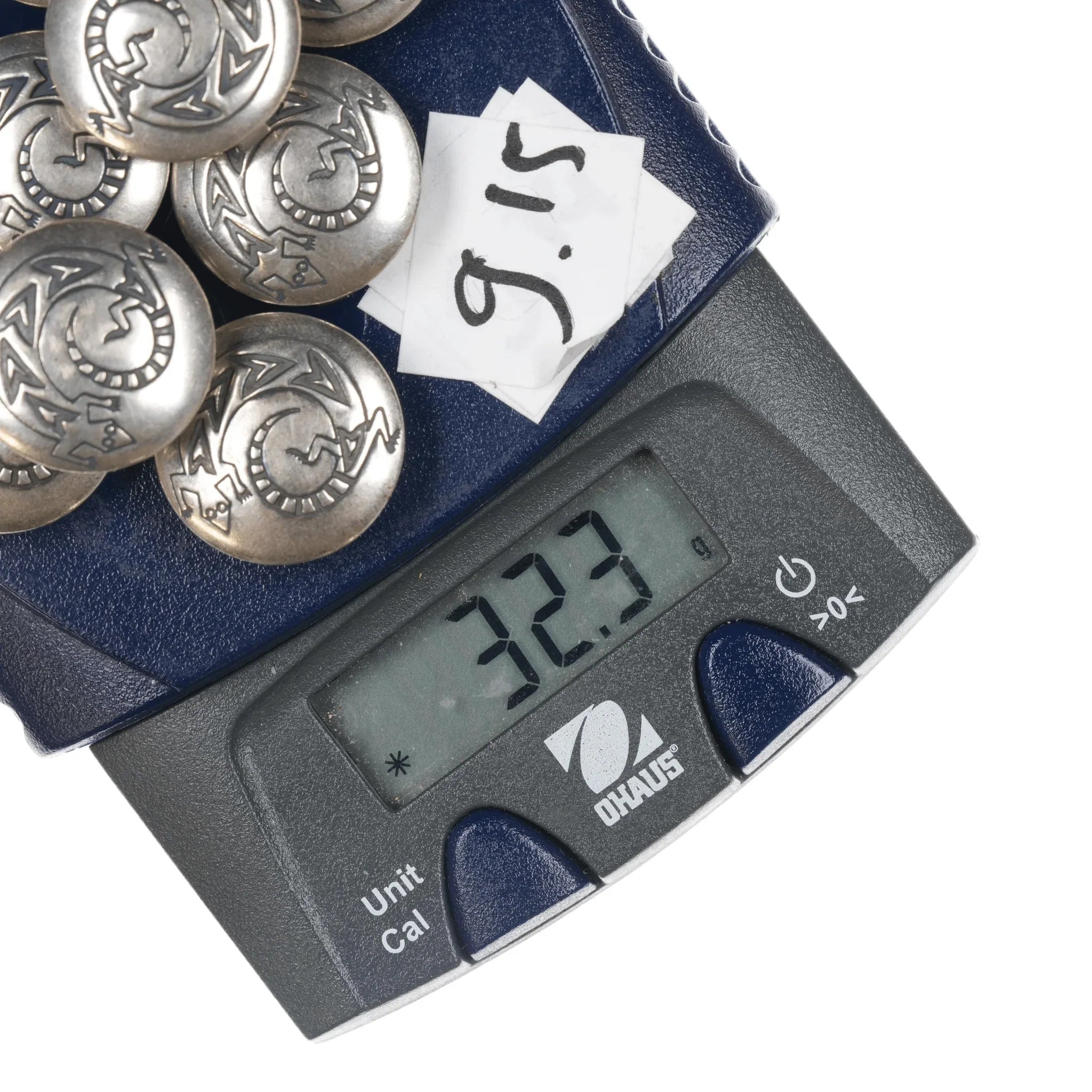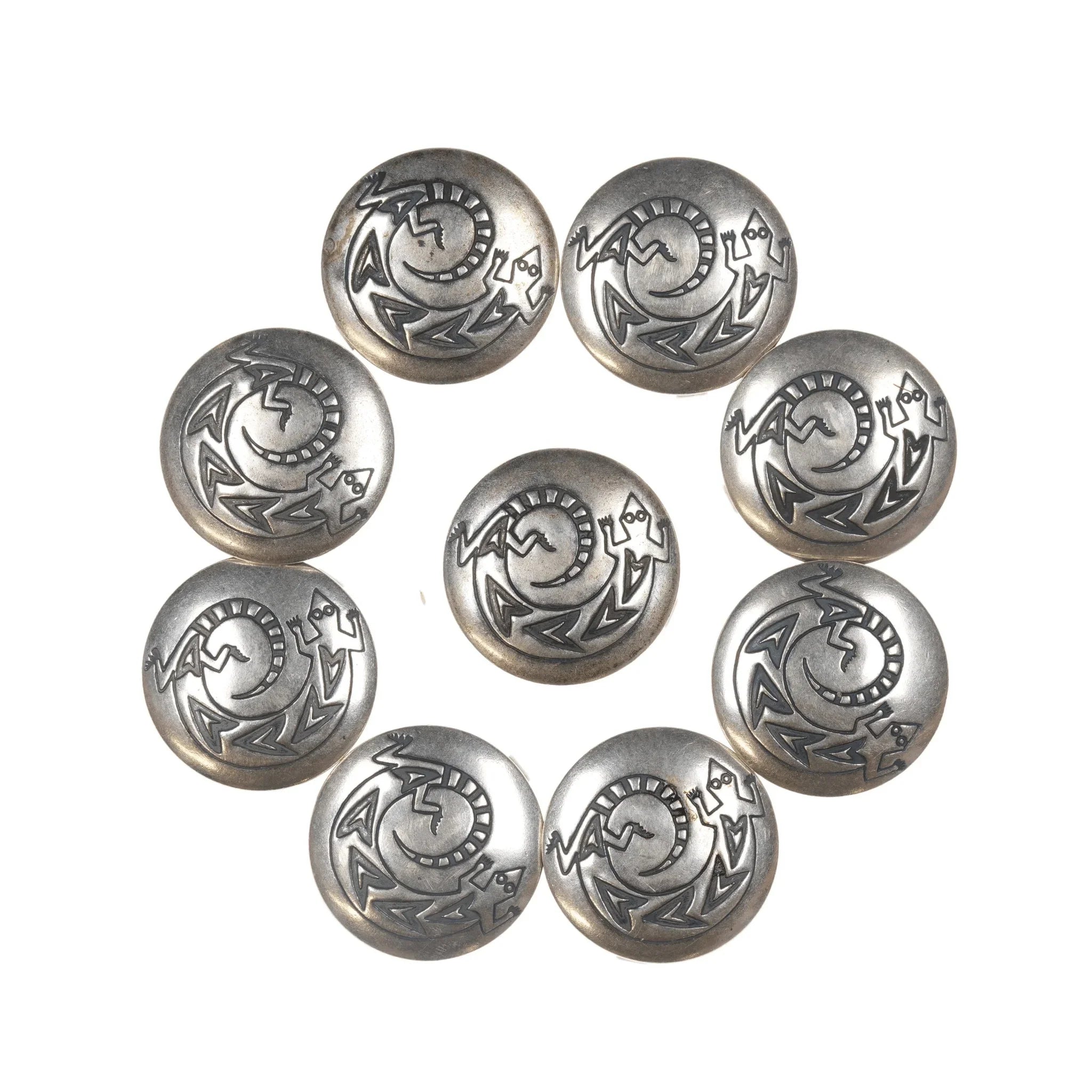 9 vintage Southwestern sterling button covers with lizards, great with no issues. Backs are steel as always.