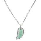 Antique Chinese carved jade leaf pendant in silver. Antique carved jade leaf later mounted as pendant on much later sterling necklace. Selling everything shown, measurements in pics. 30" long necklace.
