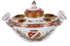 Antique French Armorial Inkwell. Nicely hand painted, no damage, insert intact. Minor wear to gilding. 5.75" wide x 3.75 tall, great piece from the first quarter of the 20th century. isshelf