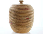 Antique Northwest Coastal/Alaskan Native American storage basket. Nice old basket from an incredible collection. I believe it's from the first quarter of the 20th century, the weaving is extremely tight, the lid fits like a glove. It comes off when necessary but forms an incredible seal when put on. I don't believe this was a tourist item, I believe it once served as a storage basket. Slight wear as shown in just a few spots, overall exremely sturdy and in great condition. 5 1/8" tall x 4" wide.<br>tw271