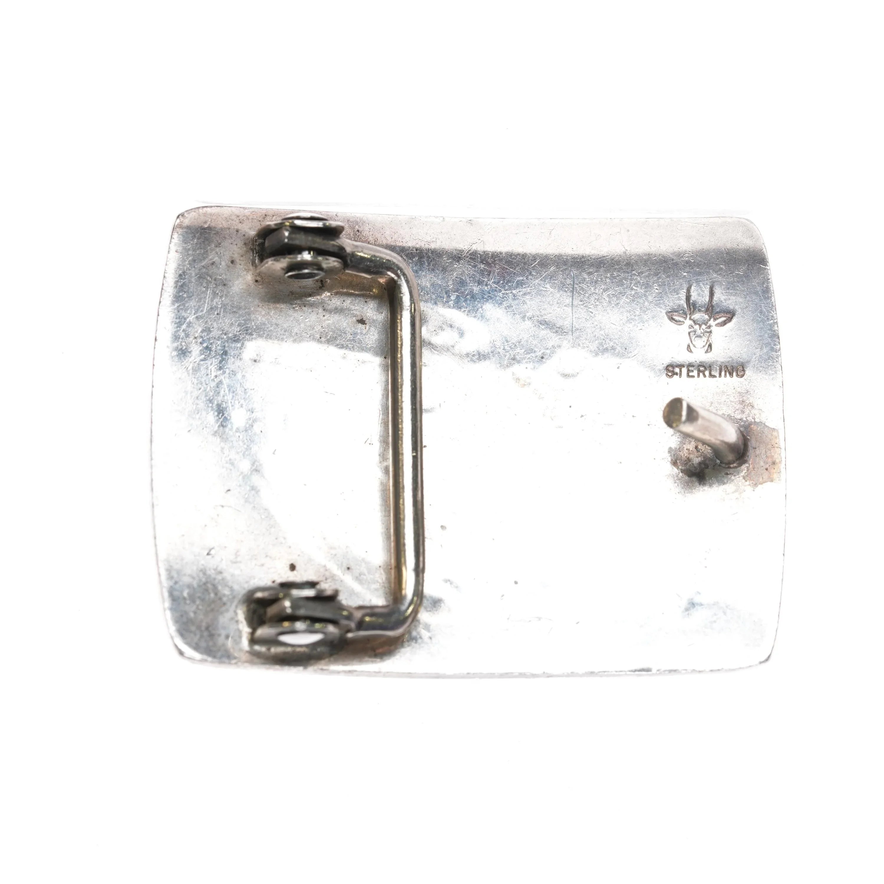 Benjamin Mansfield Hopi Overlay belt buckle bear paw design sterling silver. Solid sterling silver (tested) buckle with weight and measurements in pictures.. Fits up to a 1 1/8" belt. No issues, some expected wear, marked as shown.