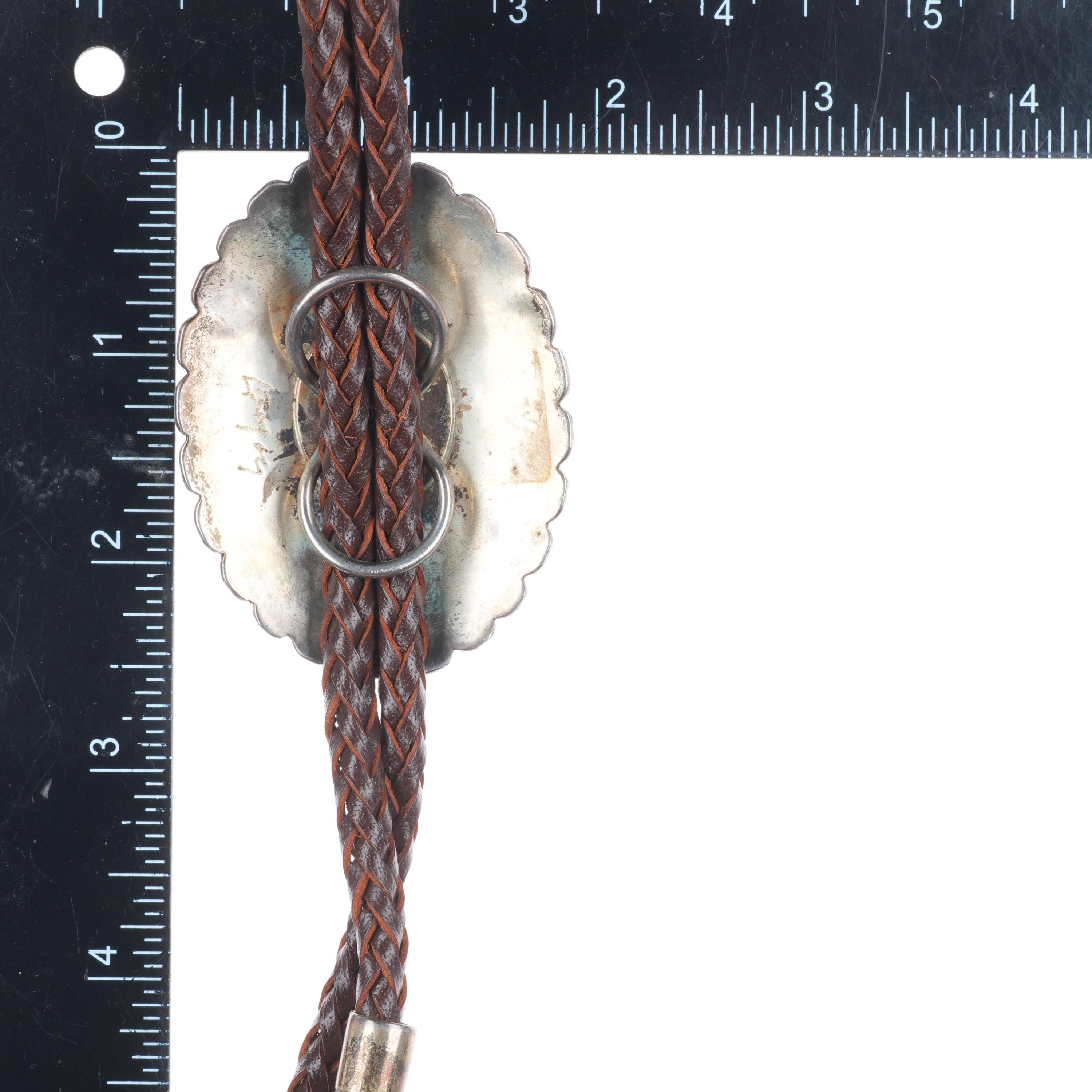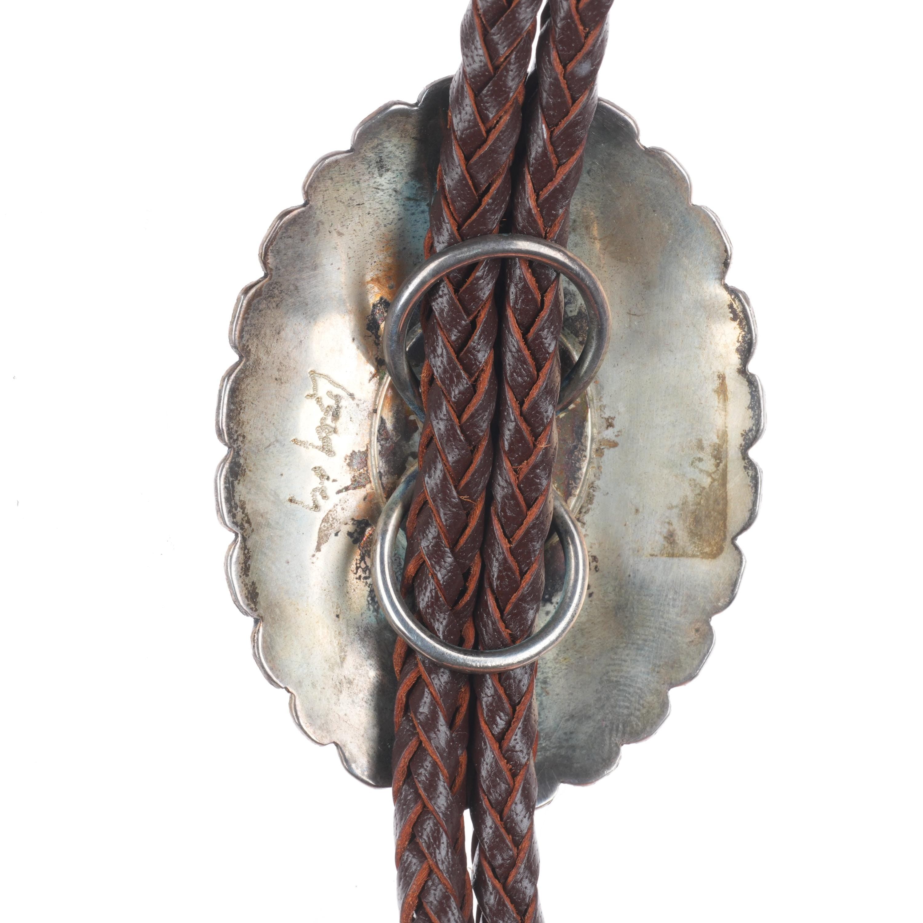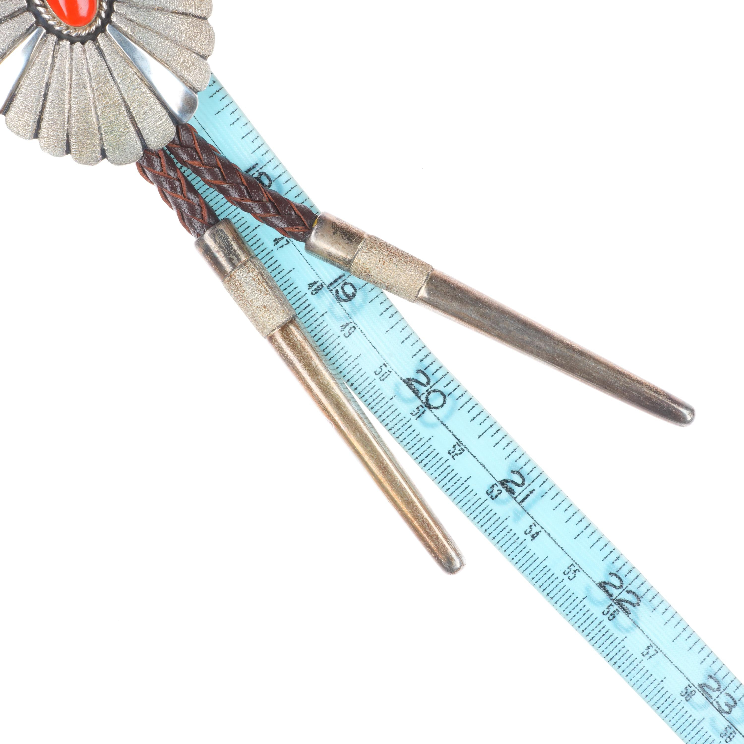 Big Leroy Begay Navajo sterling silver Mediterranean coral chiseled bolo tie. Tested and guaranteed solid sterling silver slide and tips. Weight and measurements in pictures. Great bolo, 43" long with no issues. Weight shown is the entire bolo.