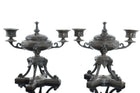 c1870 French Bronze Censer/Candlesticks pair. Selling the pair shown each with a<br>central stash spot/censer/whatever you desire it to be for. Both extremely heavy<br>for their size solid bronze with no issues. Each 8" wide x 7.5" tall, my hand<br>holding mouse in two pics for scale.<br><br>These are symetrical, they are threaded together and were loose in the pics, I<br>didn't think to line them up for the pics, they line up just fine and are tight<br>when tightened with no issues. I'm just always in a hurry...they are great.<br><br>isshefl