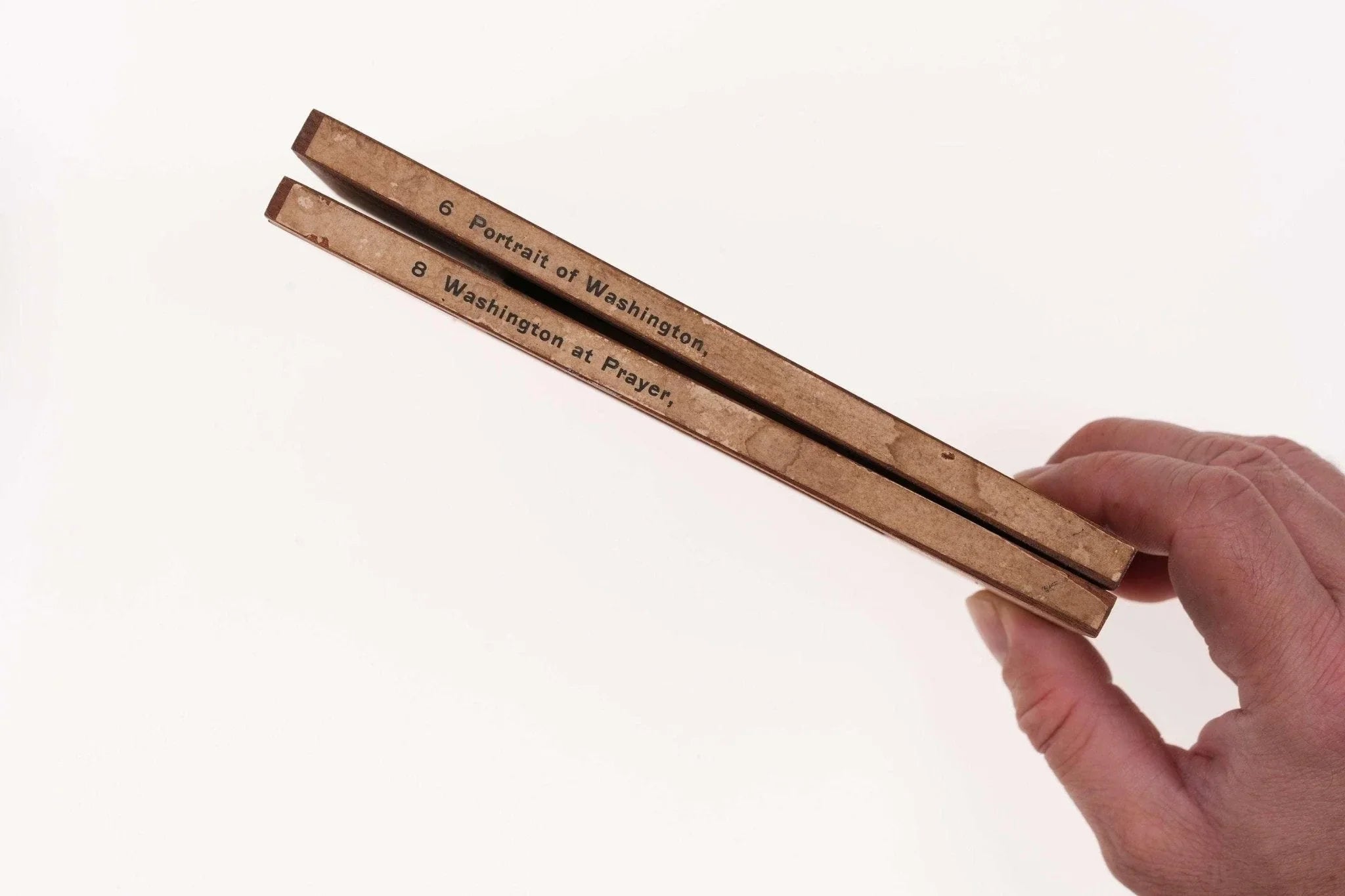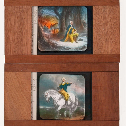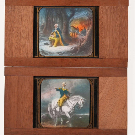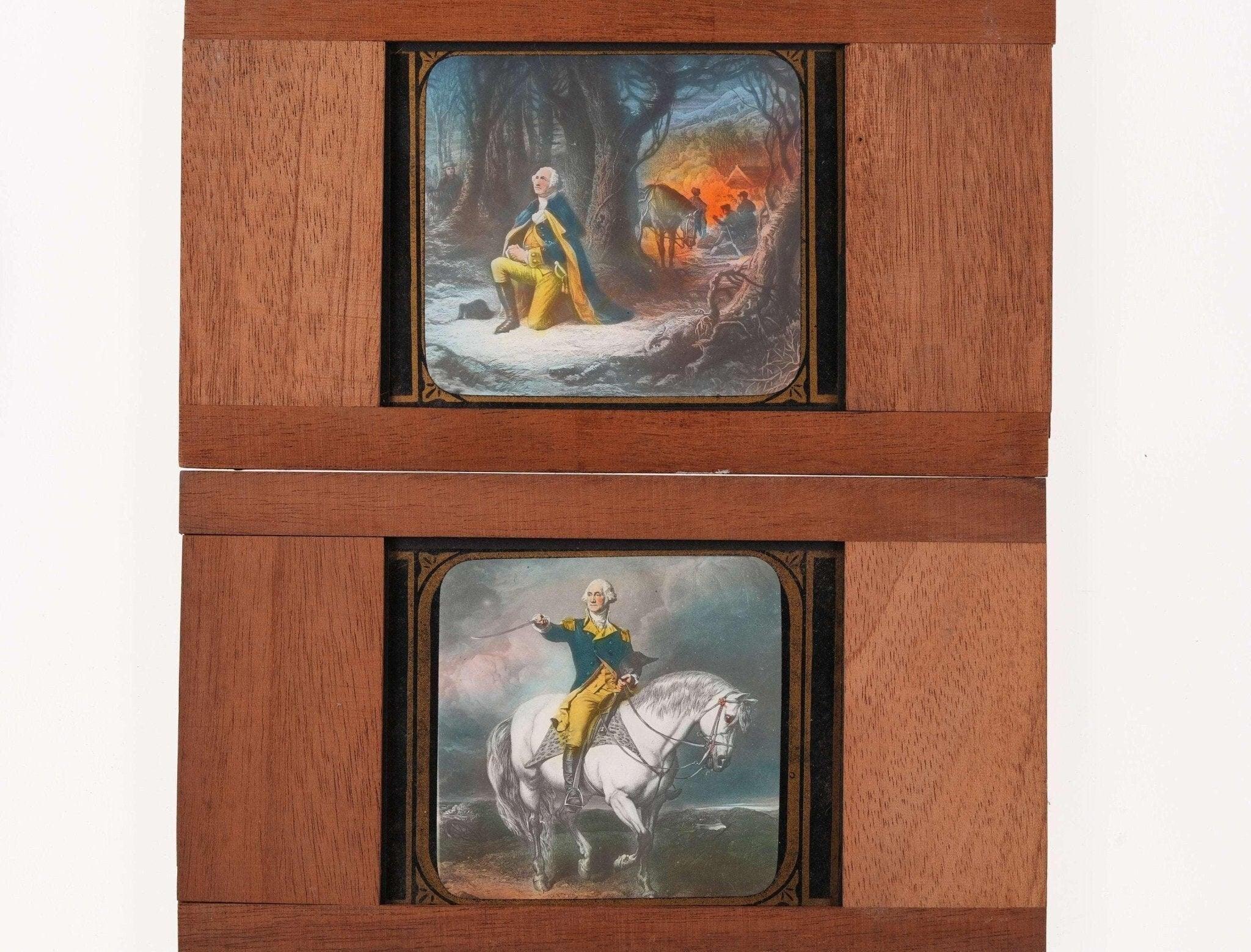 c1890 Wood Glass Magic Lantern Slides Washington at prayer and a portrait of Geo