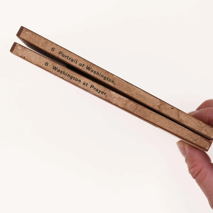 c1890 Wood Glass Magic Lantern Slides Washington at prayer and a portrait of<br>George Washington each 4" x 7" total with 3" x 3.5" sight. No damage or issues.<br>Selling both slides shown<br>isdrawer