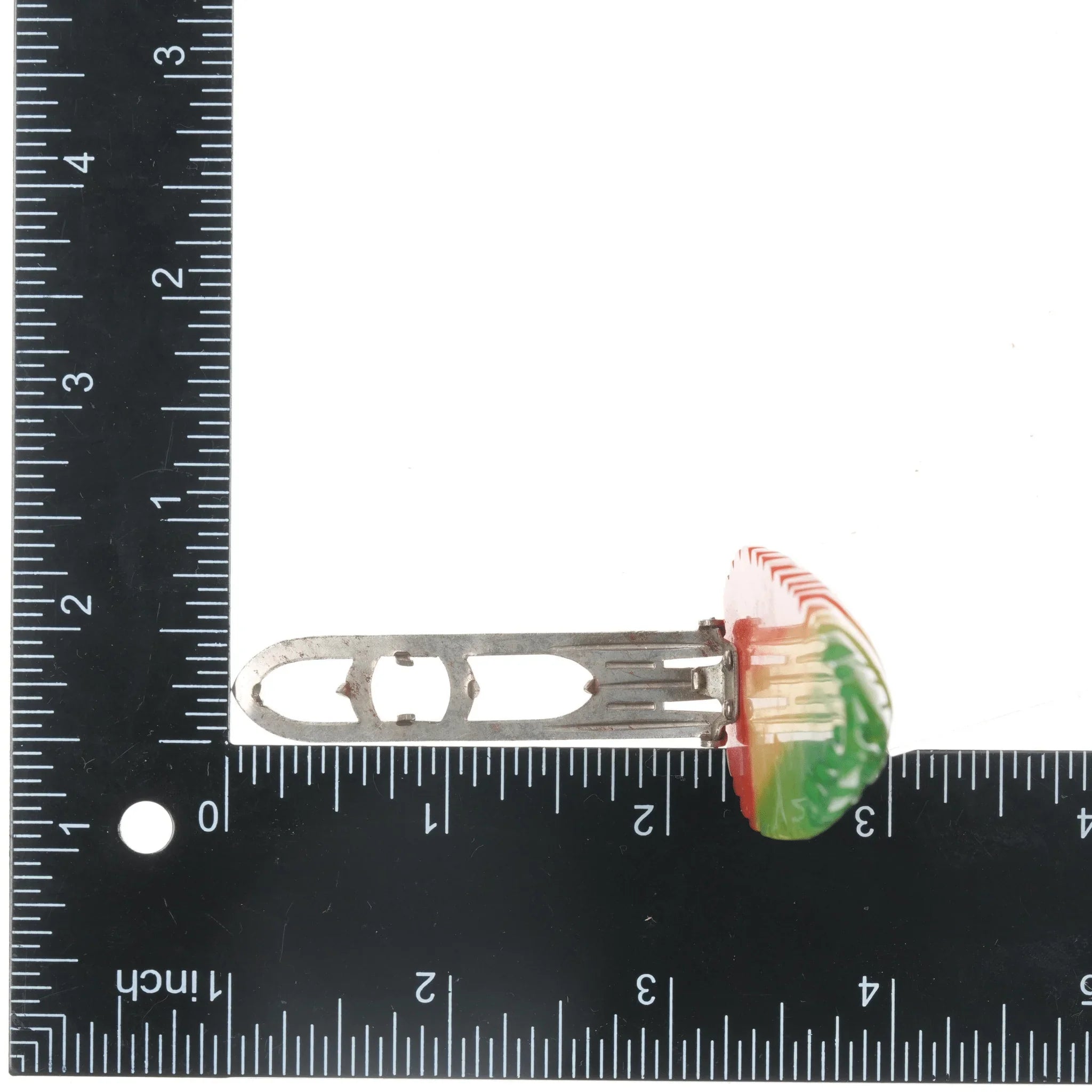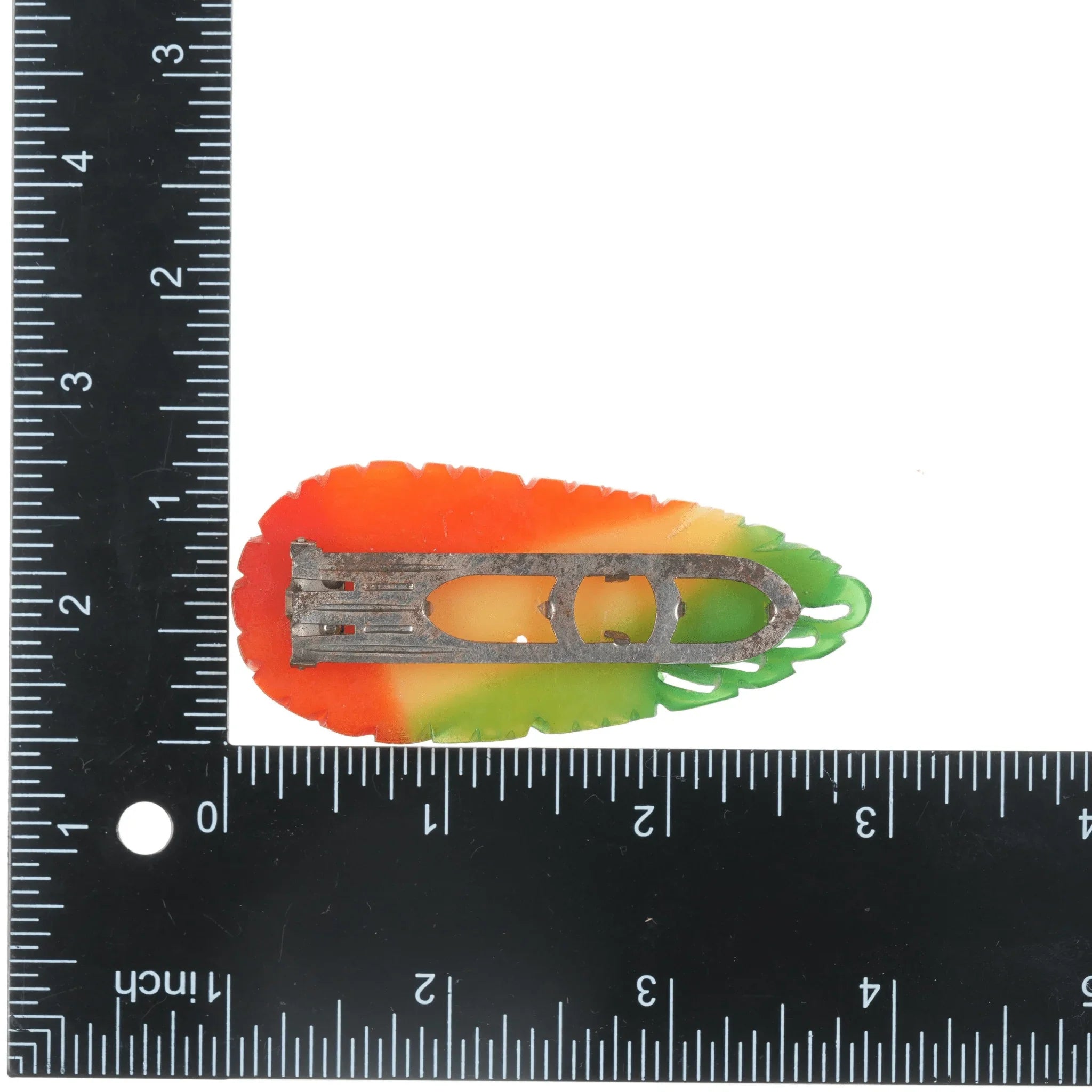 c1940's Carved Multi-color Bakelite dress clip. Very well preserved authentic item from an extensive long time collection put together in the last quarter of the 20th century. Measurements shown in pics, it will not be available for extra measurements/pics until sold. Thank you so much for your time and consideration.