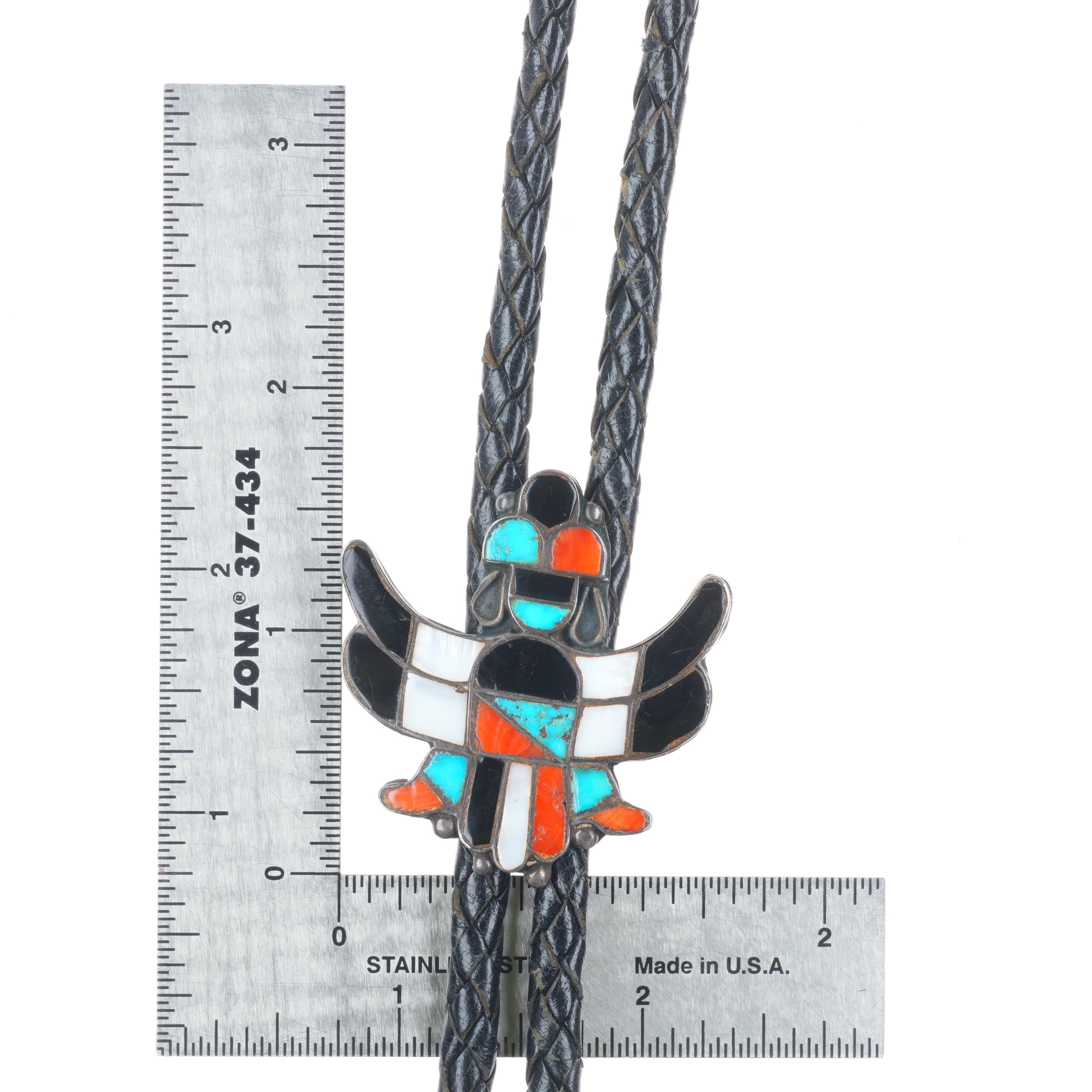 c1950 Vintage Zuni sterling silver channel inlay knifewing bolo tie fancy tips
