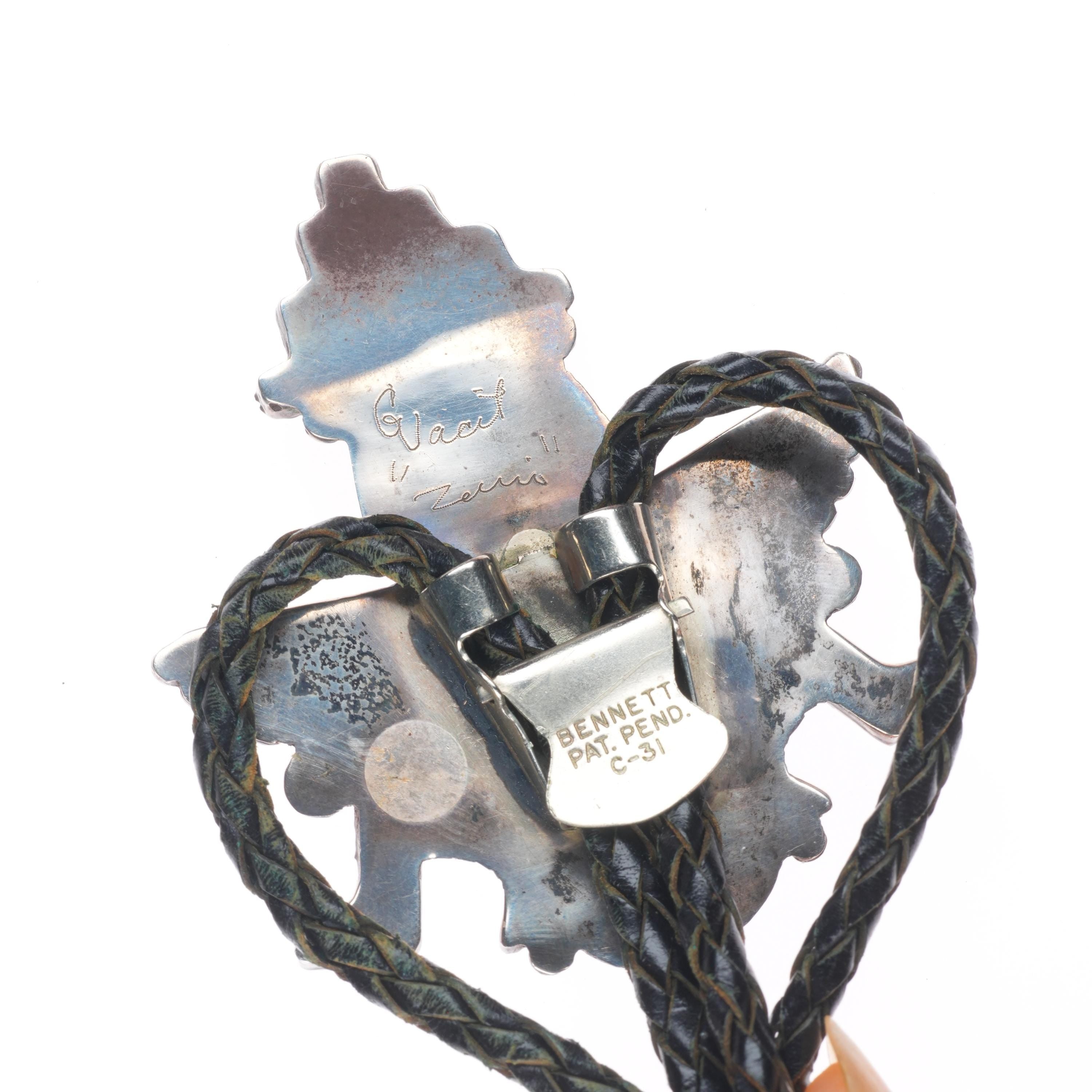 c1960 Vintage Gary Vacit Zuni sterling silver knifewing inlay bolo tie