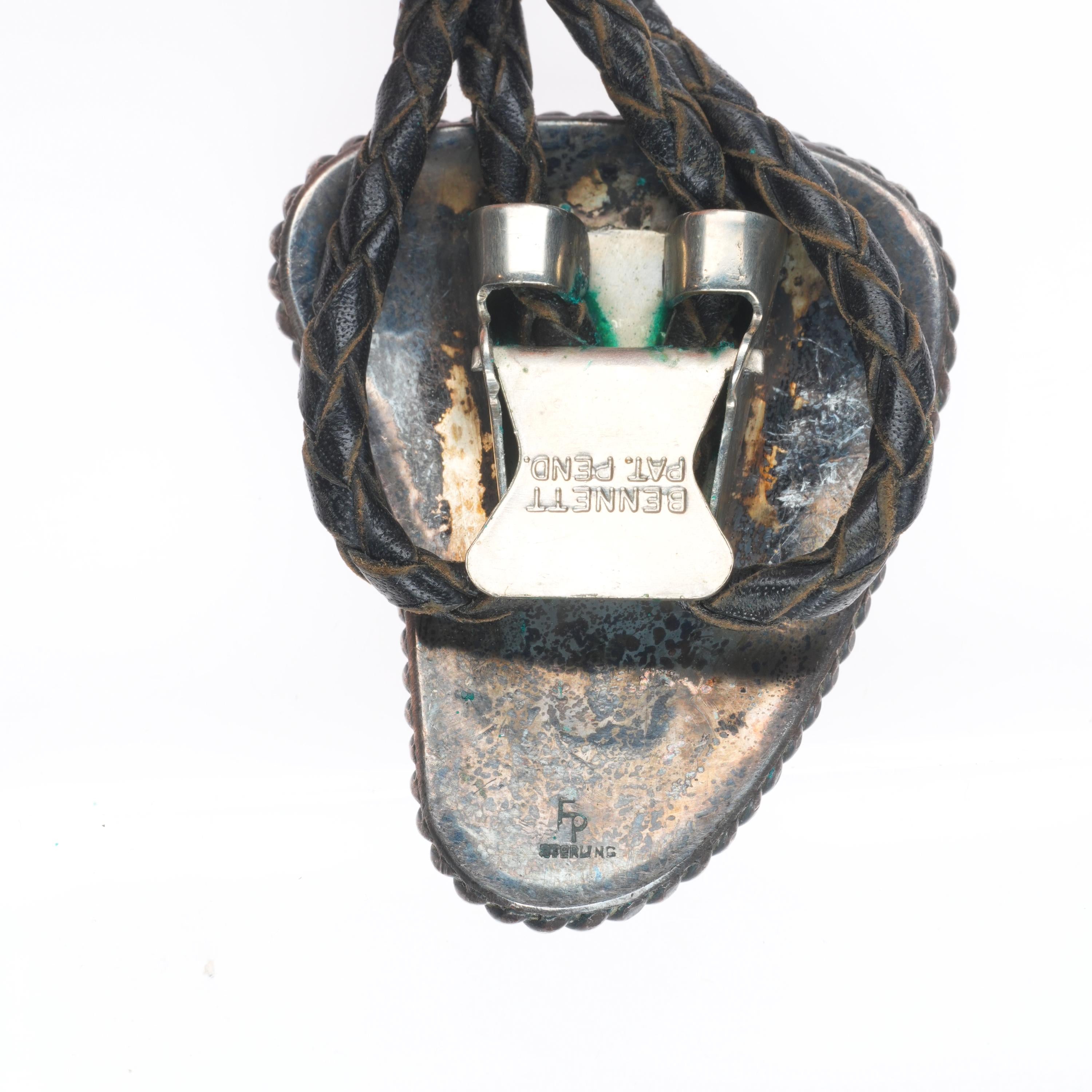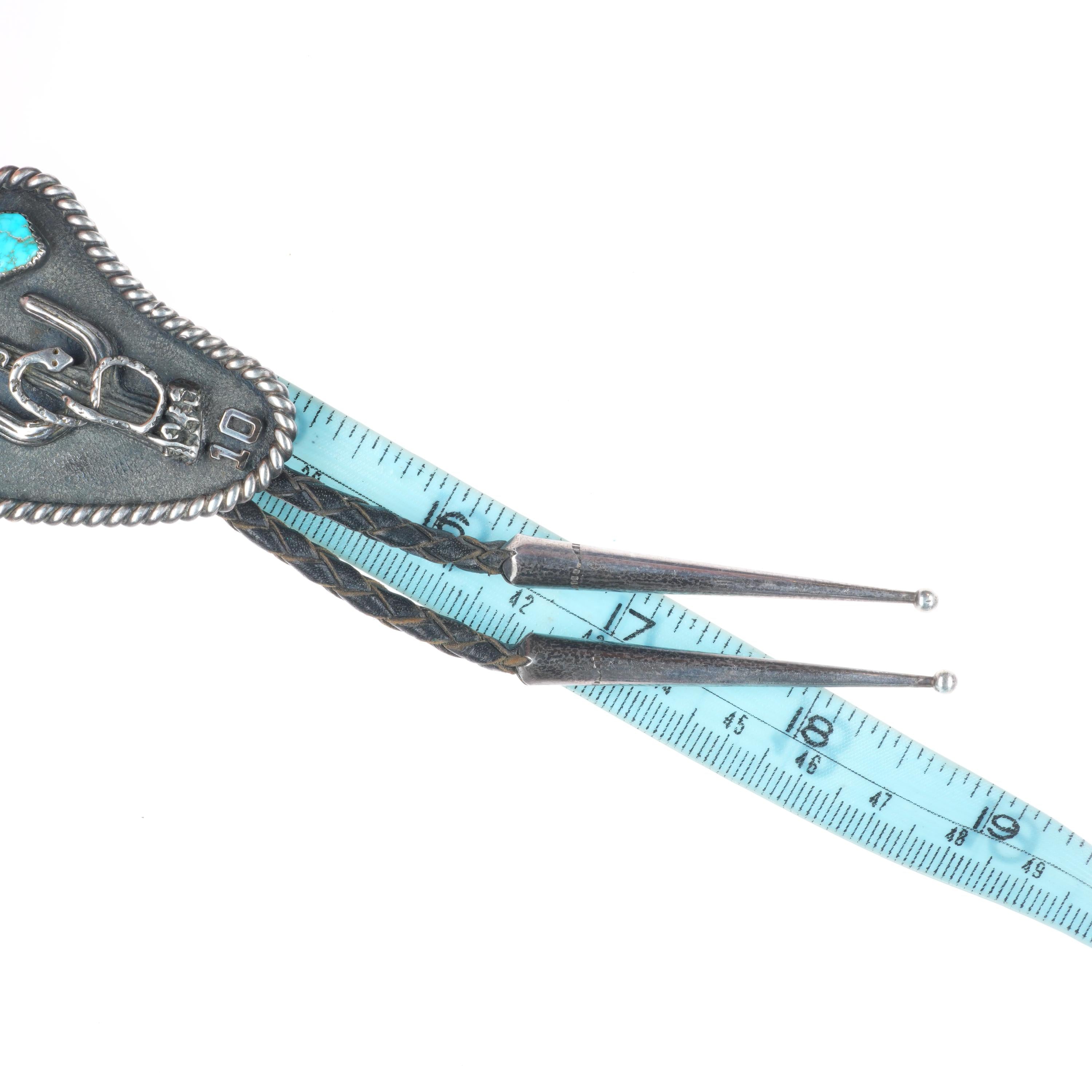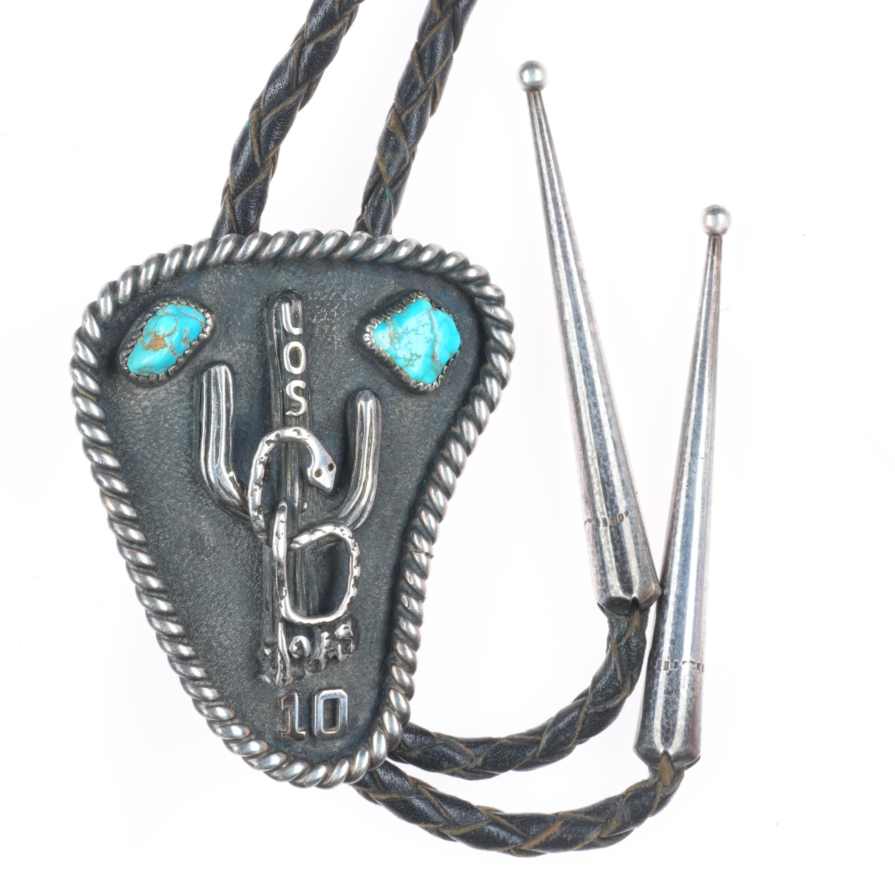 c1970 Frank Patania Sr sterling silver turquoise saguaro cactus bolo tie