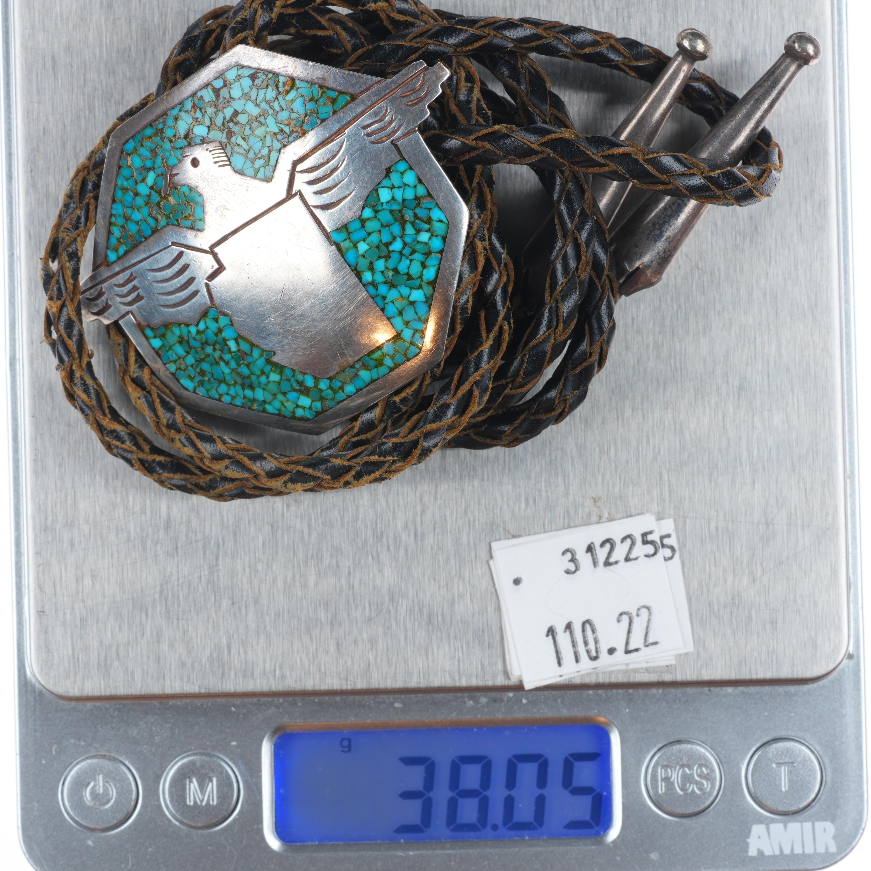 c1970 Tommy Singer Navajo vintage sterling silver thunderbird bolo tie