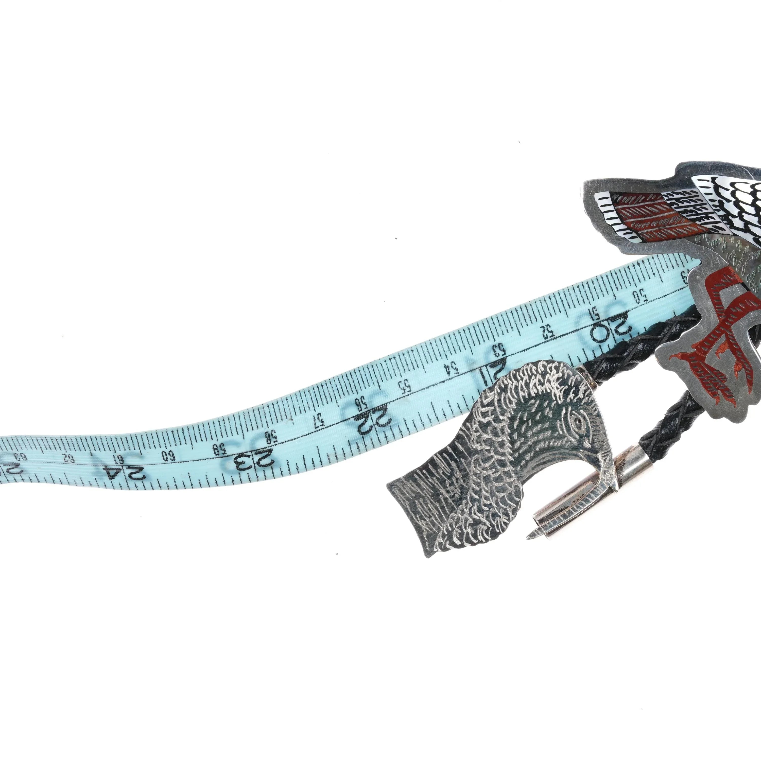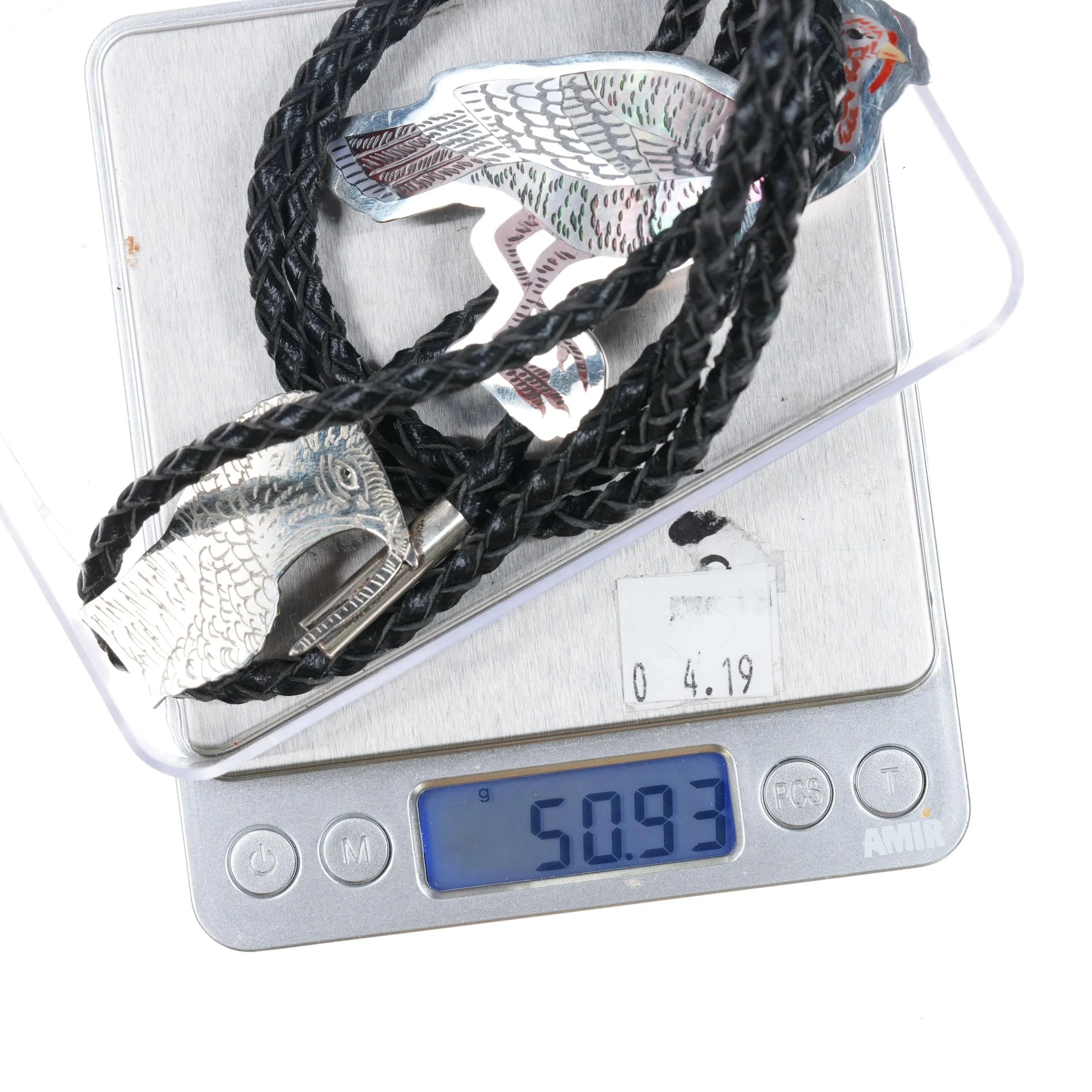 Dale Edaakie Zuni Sterling silver carved inlay wild turkey bolo tie. Solid sterling silver slide and tips. Weight and measurements in pics. 44" long. No damage or significant wear. Weight shown is just the entire bolo, if there is a tray pictured it will be tared out of course. It is signed by the Old Zuni Master Inlay artisan " Dale Edaakie " who is famous for his Inlay Work and learned from his father Dennis Edaakie
