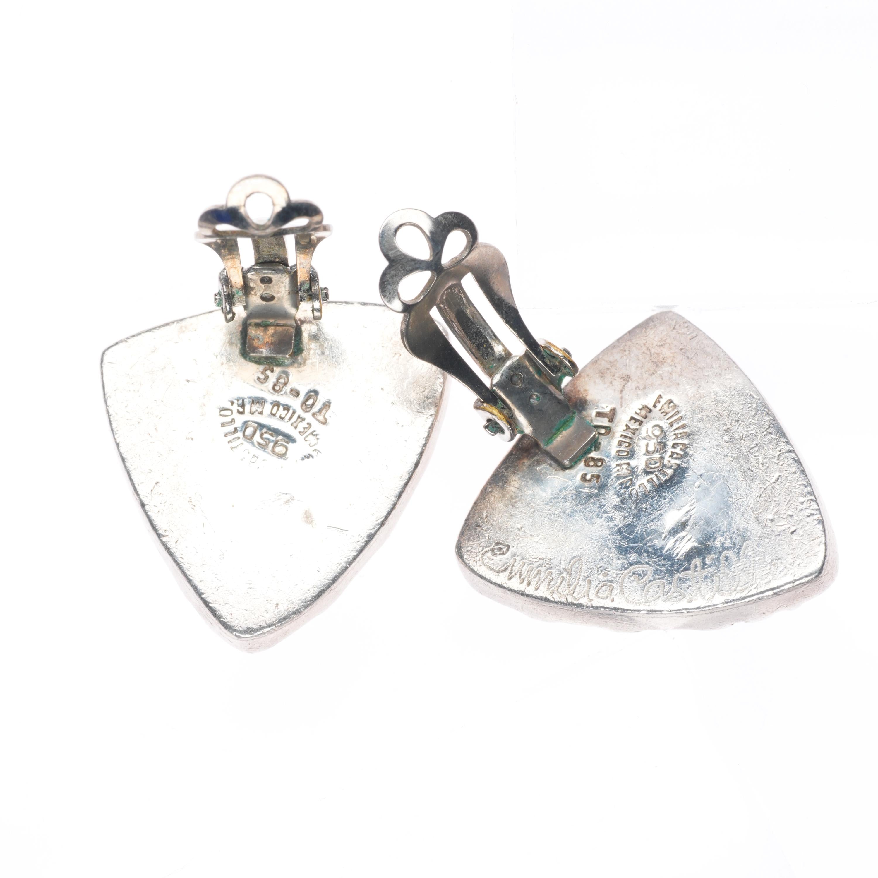 Emilia Castillo vintage Mexican modernist sterling silver clip-on earrings