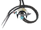 1950's Zuni Silver Multi-Stone channel inlay Shriner's bolo tie 40" long 2.5" x<br>1 7/8" bolo slide, tips and bolo are sterling 32 grams.<br><br><br>All precious metals are tested and guaranteed, any Native American jewelry<br>referred to as Silver or Sterling is guaranteed to be a minimum of 90% (coin)<br>silver and possibly higher content. Anything marked is guaranteed to be what<br>it's marked, most bracelets are photographed on a 6" wrist, rings photographed<br>on the appropriate sized finger when possible. With bracelets if the measurement<br>is not given in the description then inside circumference is shown where the<br>metal meets the number on the the cloth tape measure.