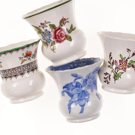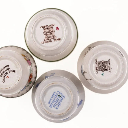 4 Spode Camilla, spring time, Chinese rose, etc Toothpick holders. Selling the 4<br>with older marks from the first half of the 20th century. 2 1/16" tall and 2<br>1/8" wide at rim. No cracks, chips, or restorations.<br>Toothpickdrawer