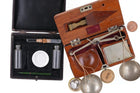 Antique Pocket Gold Scales/test kits. Selling the 19th century gold testing kit<br>without the chemicals with the 18th/19th century extremely well made and<br>complete pocket gold/gem scales complete with weights all the way down to carat<br>fractions. I could find no identifying marks, but it's really well made and so<br>is the case, notice the screws on the case have offset slots in the heads, very<br>old set. Box for scales measures 4 3/8" x 2 3/8". These are both fresh from the<br>same estate, I would speculate that these were carried by a miner or some sort<br>of traveling gold trader.<br>isshelf