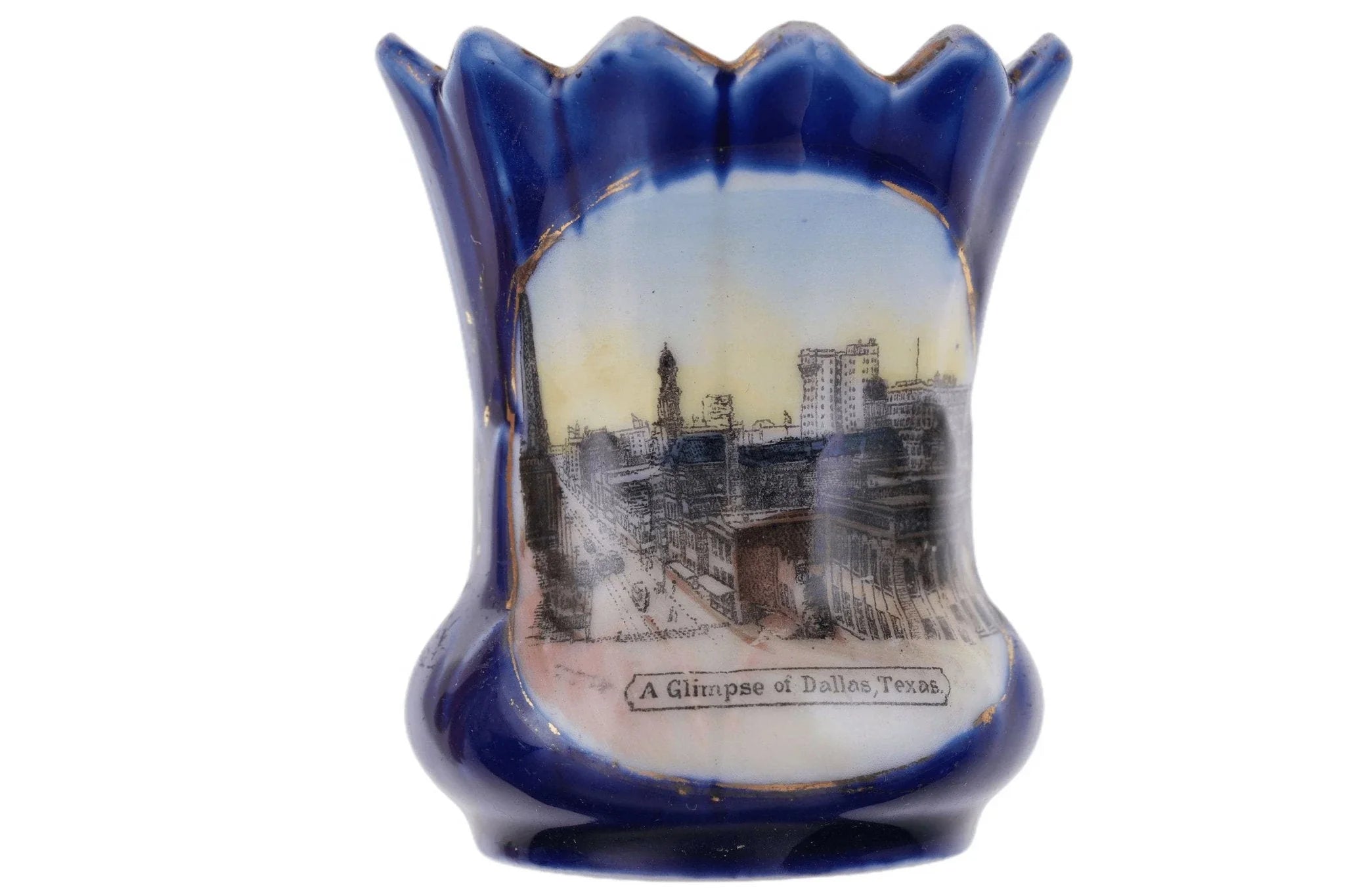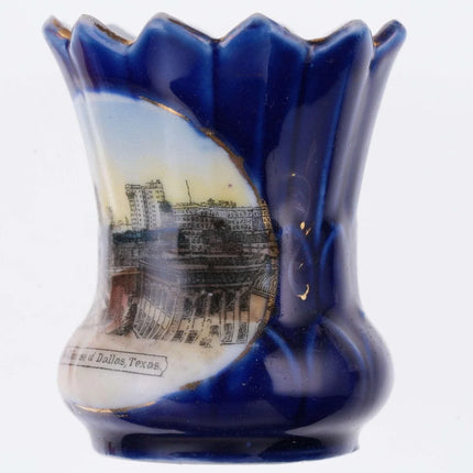 c1910 Dallas Texas Cobalt Blue German Souvenir Toothpick holder