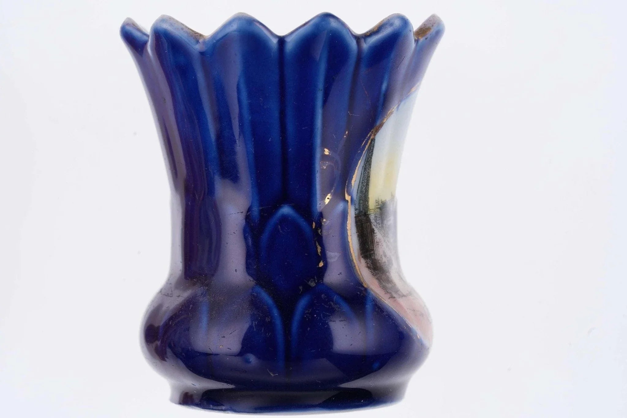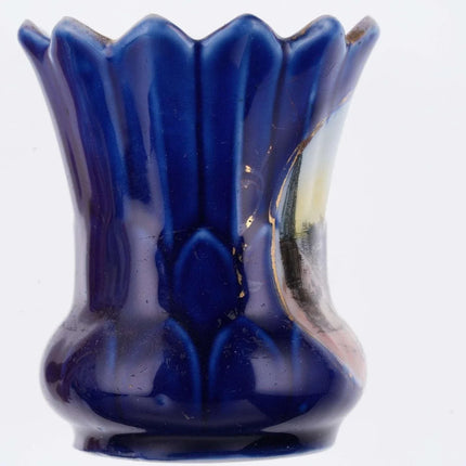 c1900 Dallas Texas Cobalt Blue German Souvenir Toothpick holder. Uncommon toothpick/Dallas Souvenir 2.5" tall with no cracks, one small chip in inside rim shown at the top of last pic. toothpickdrawer