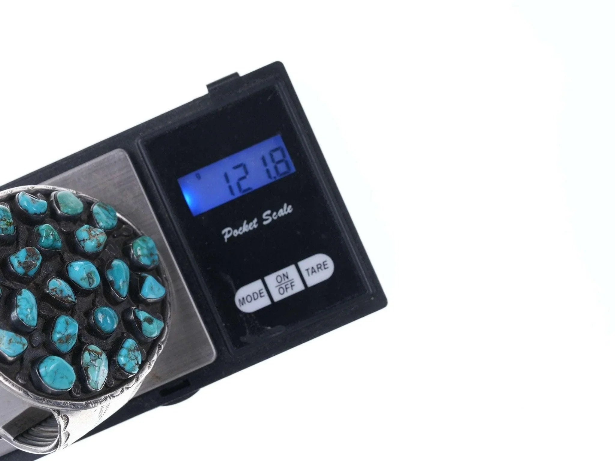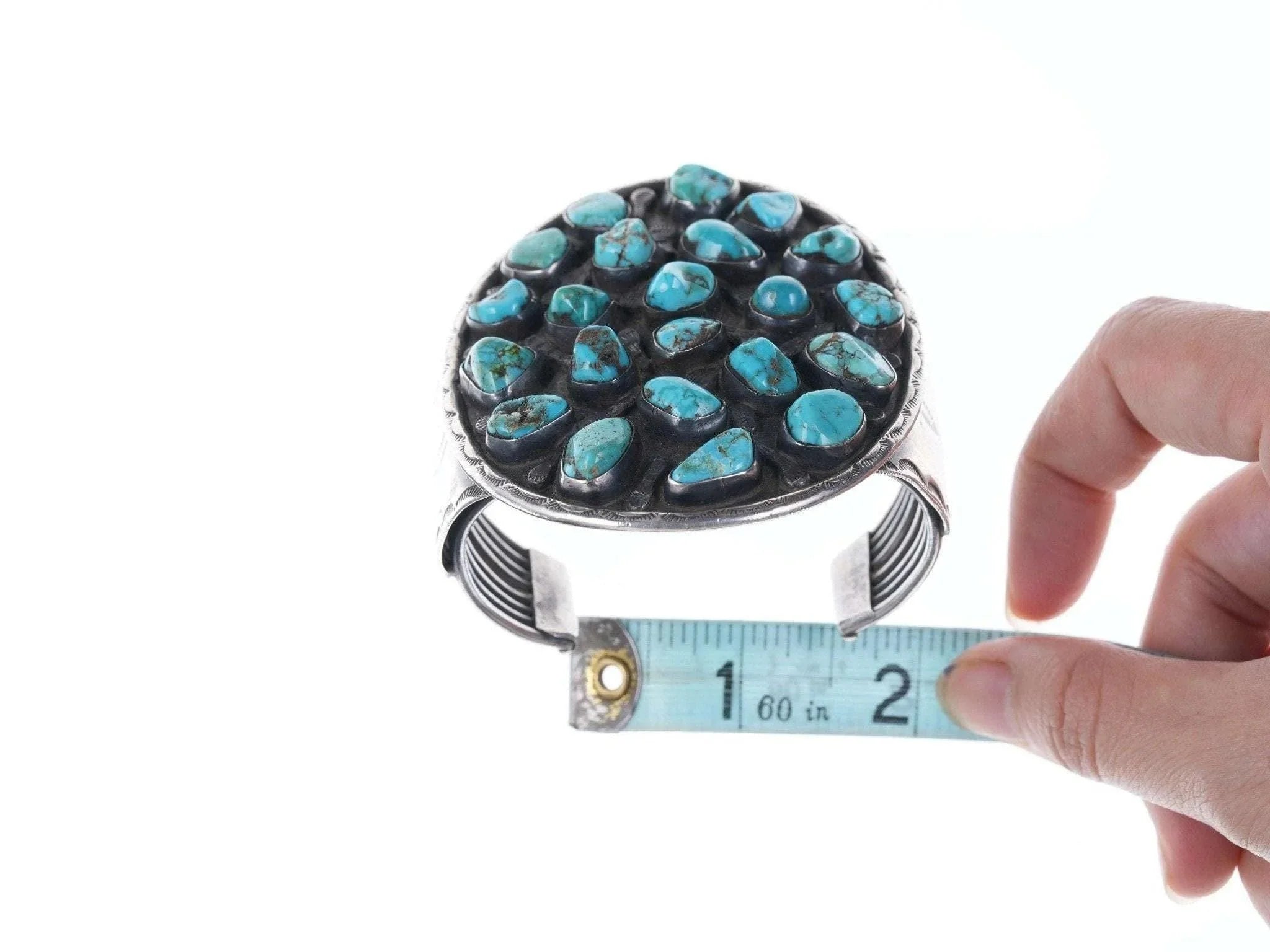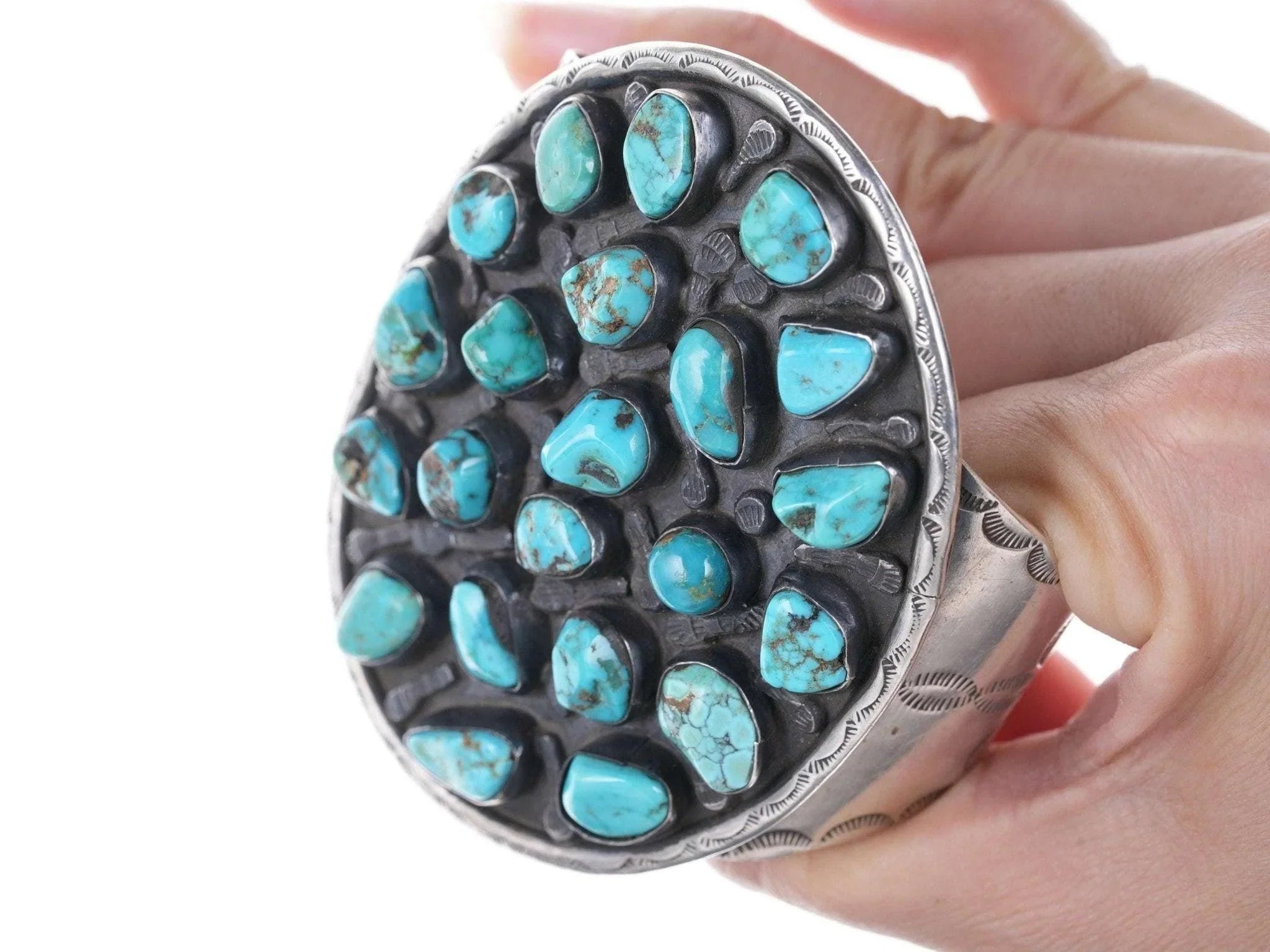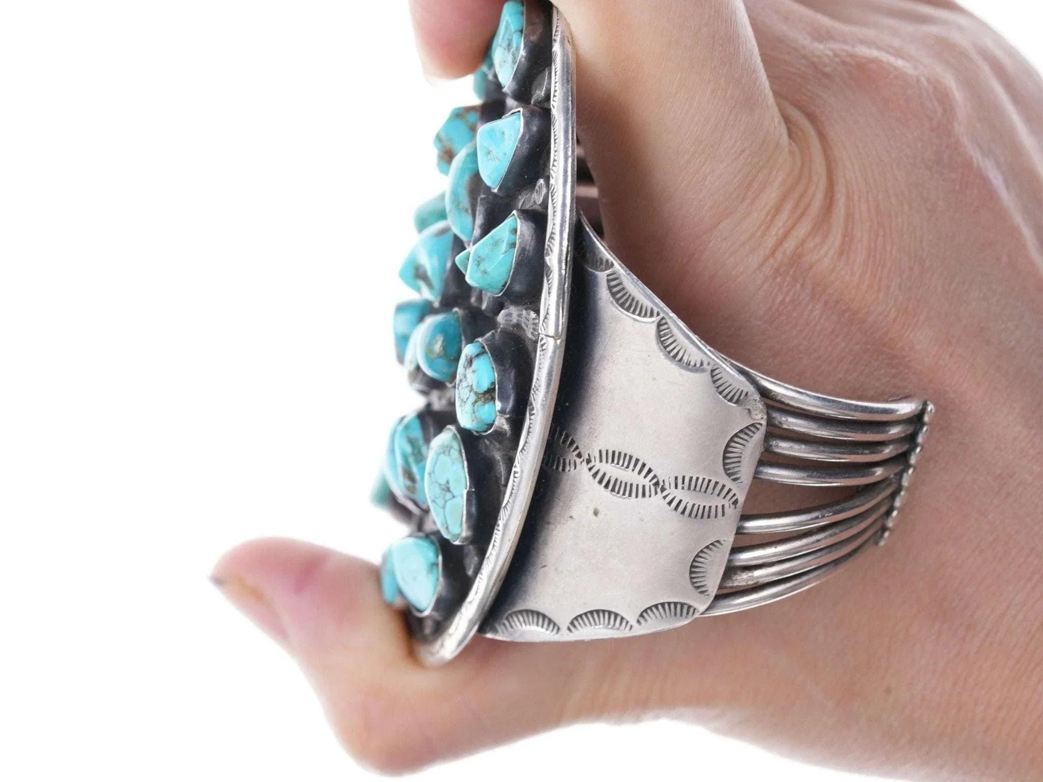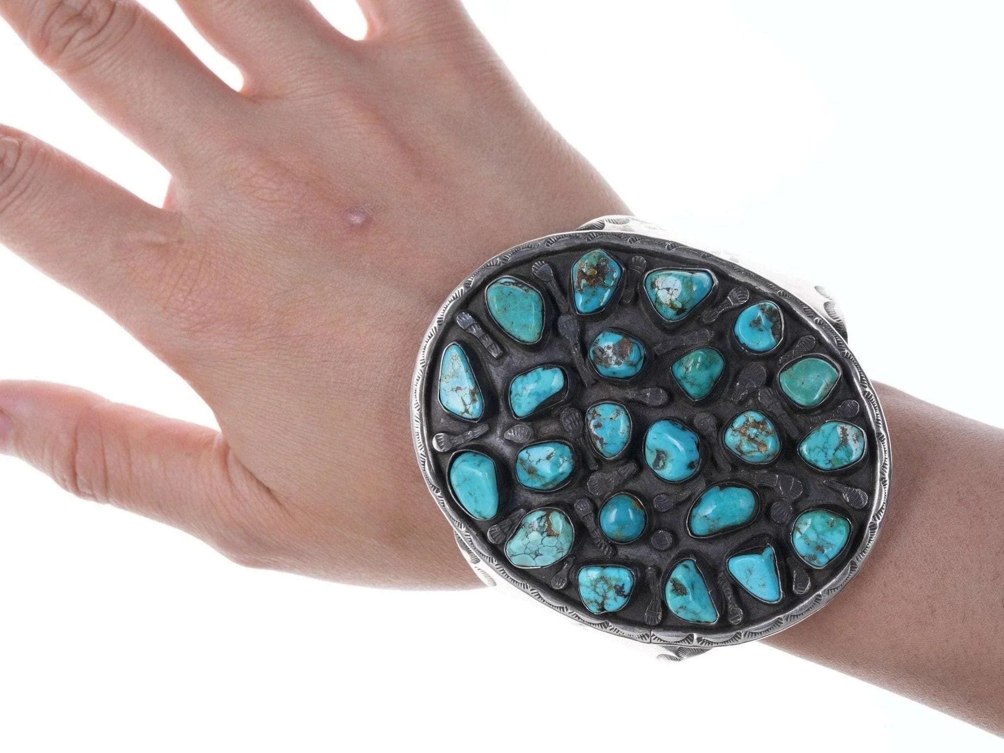 Large Vintage Navajo Stamped silver nugget cluster bracelet, Fits up to a 6.75"<br>wrist 3.25" wide in center 121.8 grams with no issues.<br><br>All precious metals are tested and guaranteed, any Native American jewelry<br>referred to as Silver or Sterling is guaranteed to be a minimum of 90% (coin)<br>silver and possibly higher content.