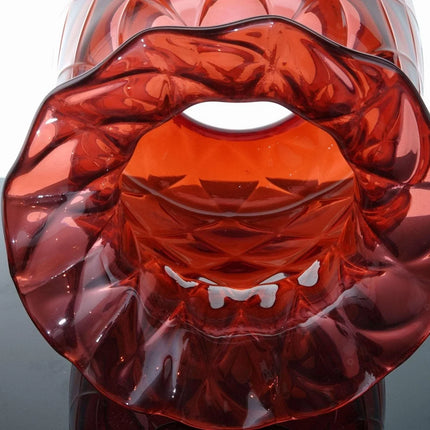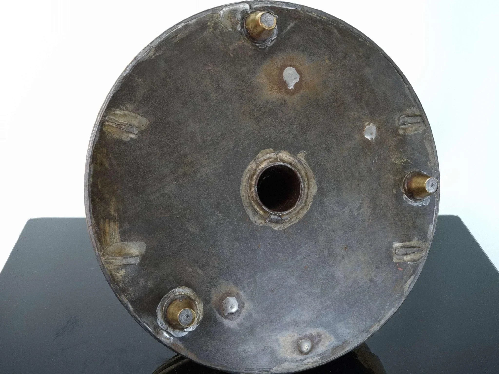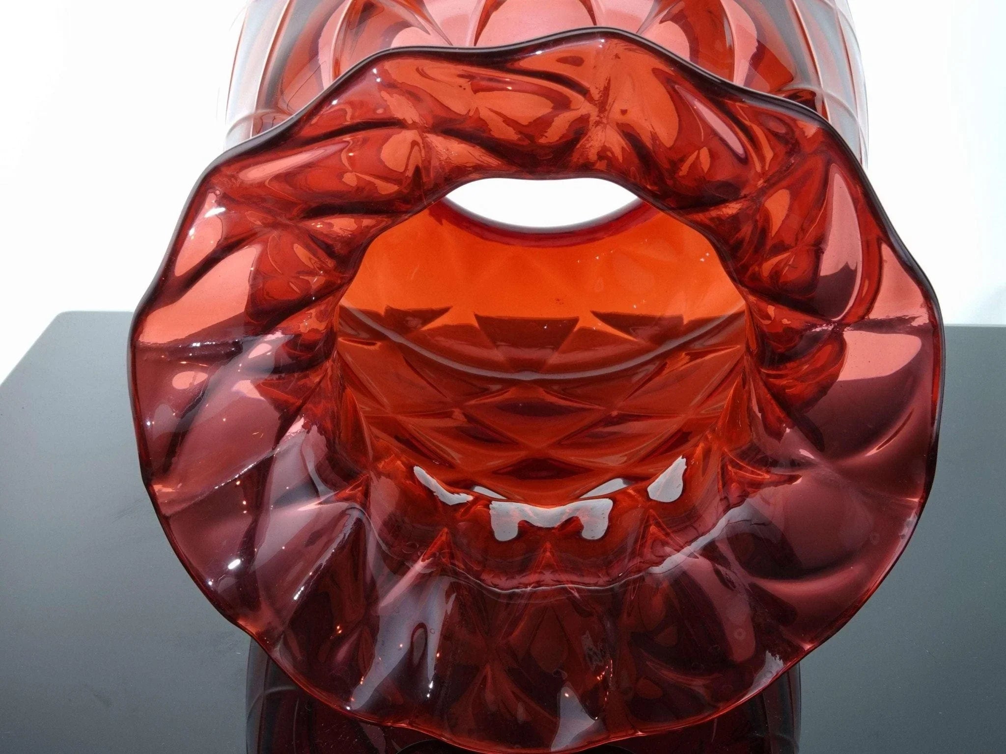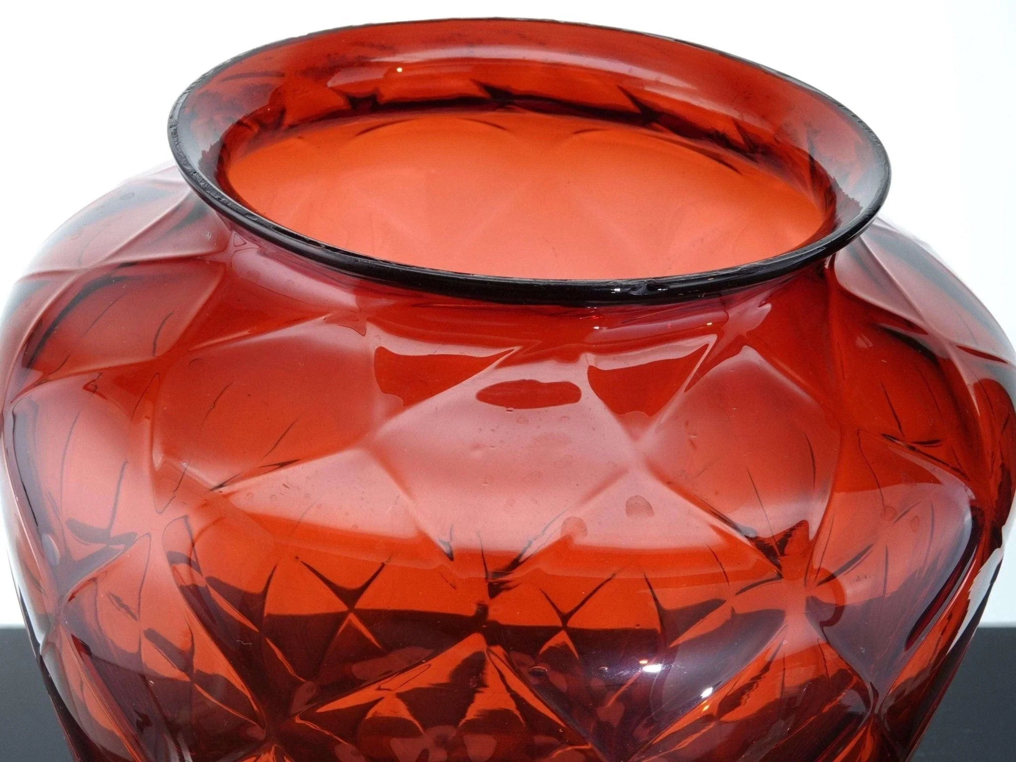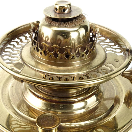 c1890 Huge Cranberry Optic Brass based Table Oil Lamp. This lamp is beyond incredible, the base was fully restored at one point, it works, holds oil, the knobs for the burner/wick work, The oil cap says Juno Safety lamp made in Germany. This unusual lamp was likely made for and used aboard a ship or Train, or maybe the banquet of a hotel. But I think with the ultra wide base it really has a transportation feel to it. Guaranteed well over 100 years old base and shade and most likely original to each other as they are an uncommon size. This globe is huge measuring 11.5" tall x 9.5" wide with a 6" fitter base at the bottom of the globe. It is near mint with one tiny flake where it fits on the lamp base shown in the last pic, no other chips, no cracks, no scratches. The brass base measures 11 3/8" wide x 8" tall. Total height about 18.5" This is a big fat lamp. A few small dents in the brass shouldn't be a distraction as it's totally wonderful and will light up every room even if not in use. Today with portable led's it would be so easy to light this up without actually doing the oil thing in a modern home. Obviously they will be packed to death, the shade in it's own box with tons of cushion, I ship things like this globally daily, thanks for your consideration.