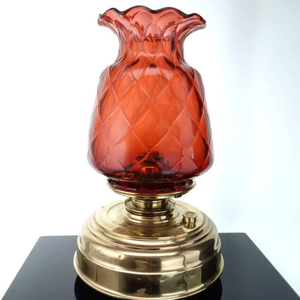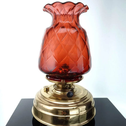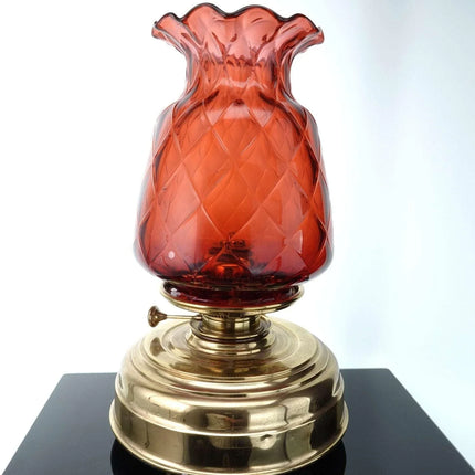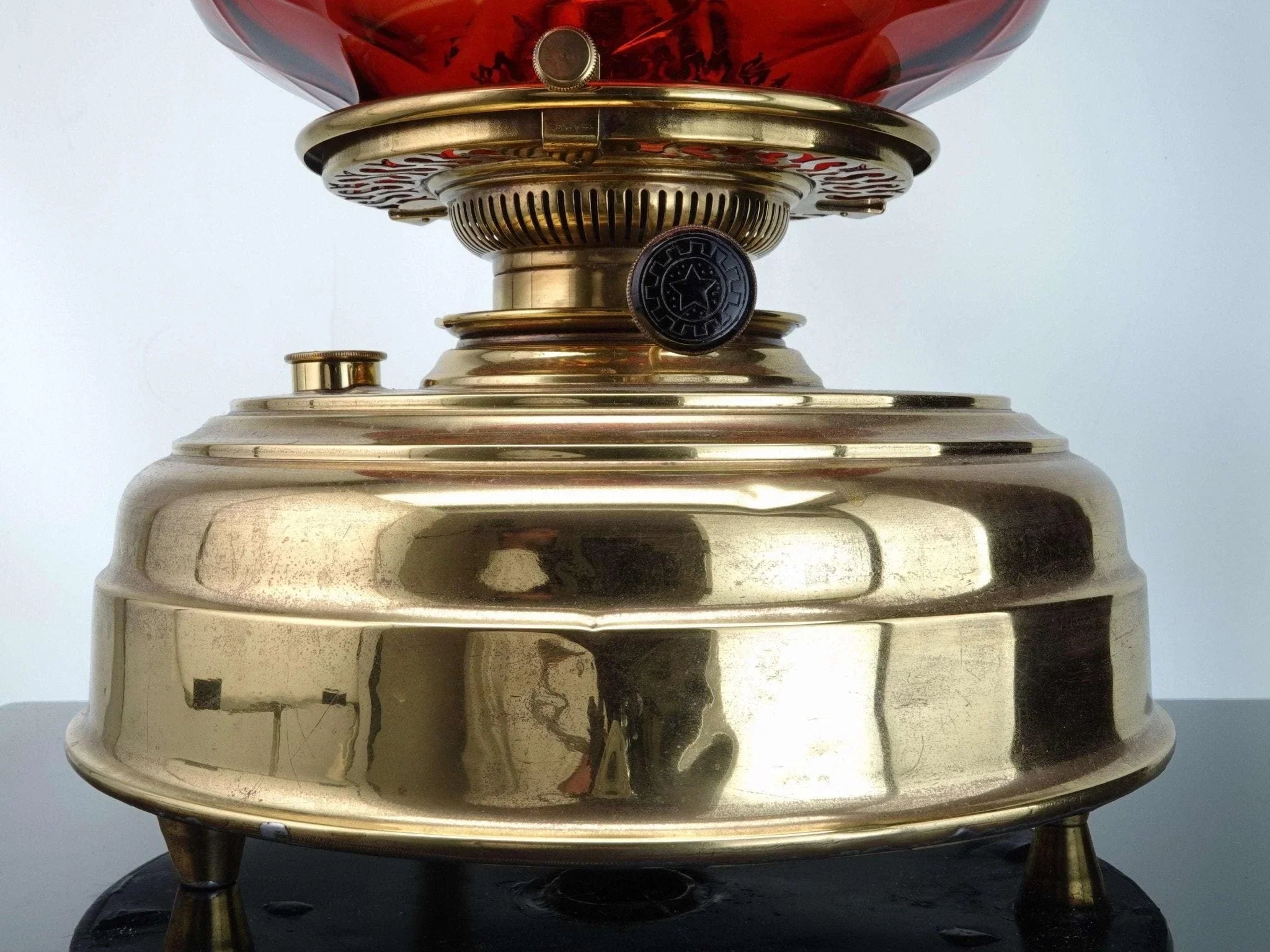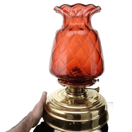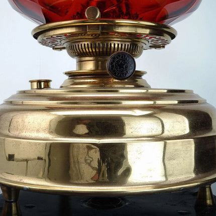 c1890 Huge Cranberry Optic Brass based Table Oil Lamp