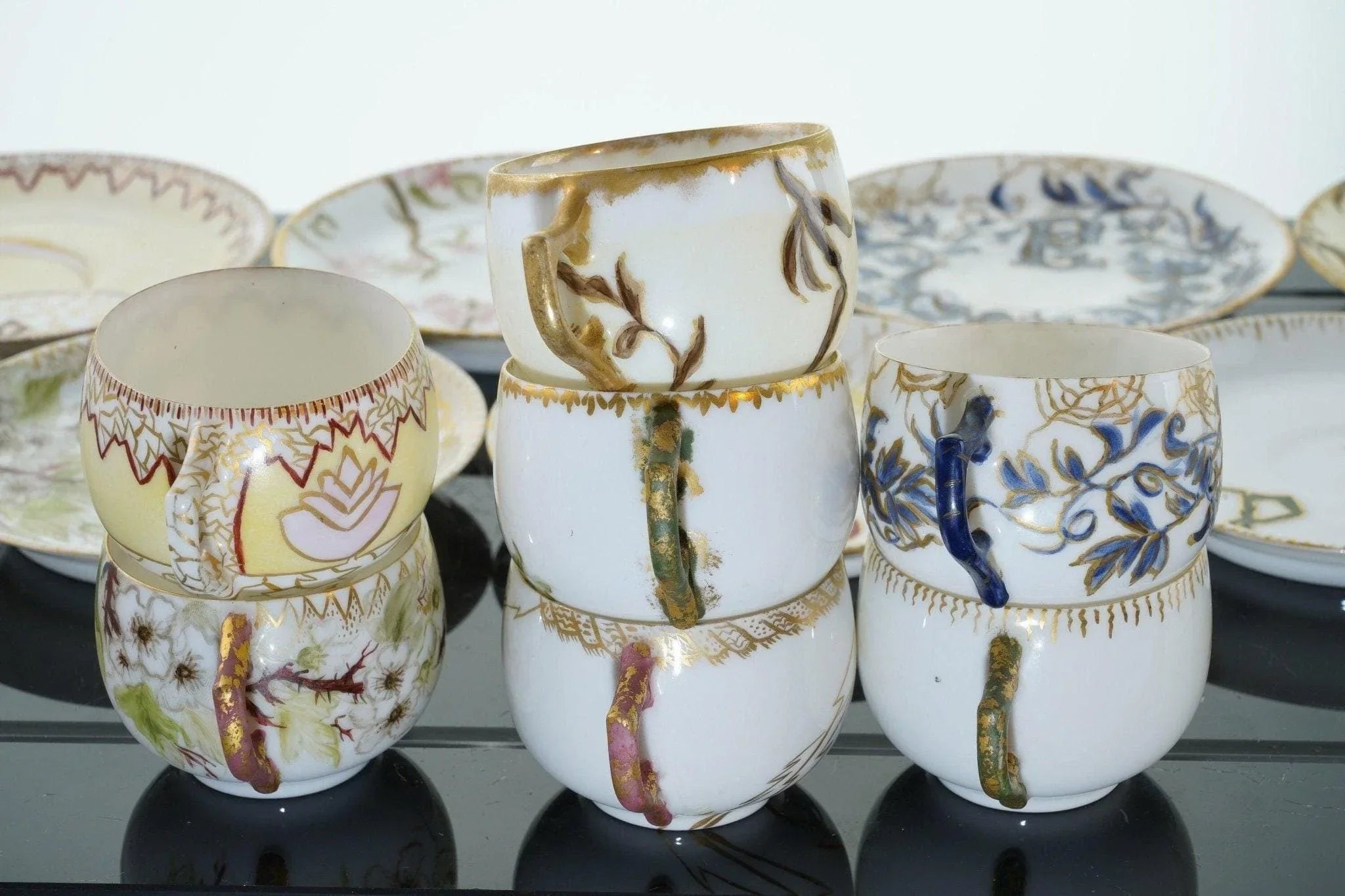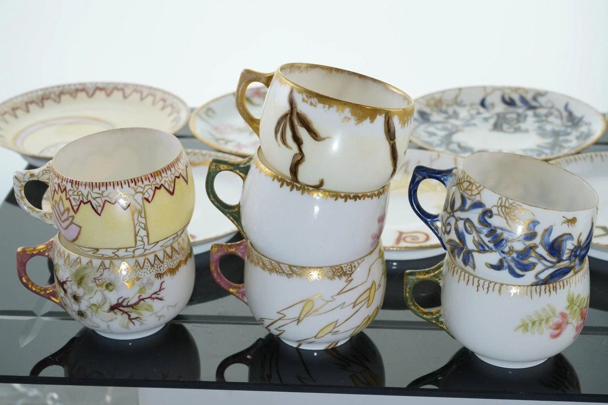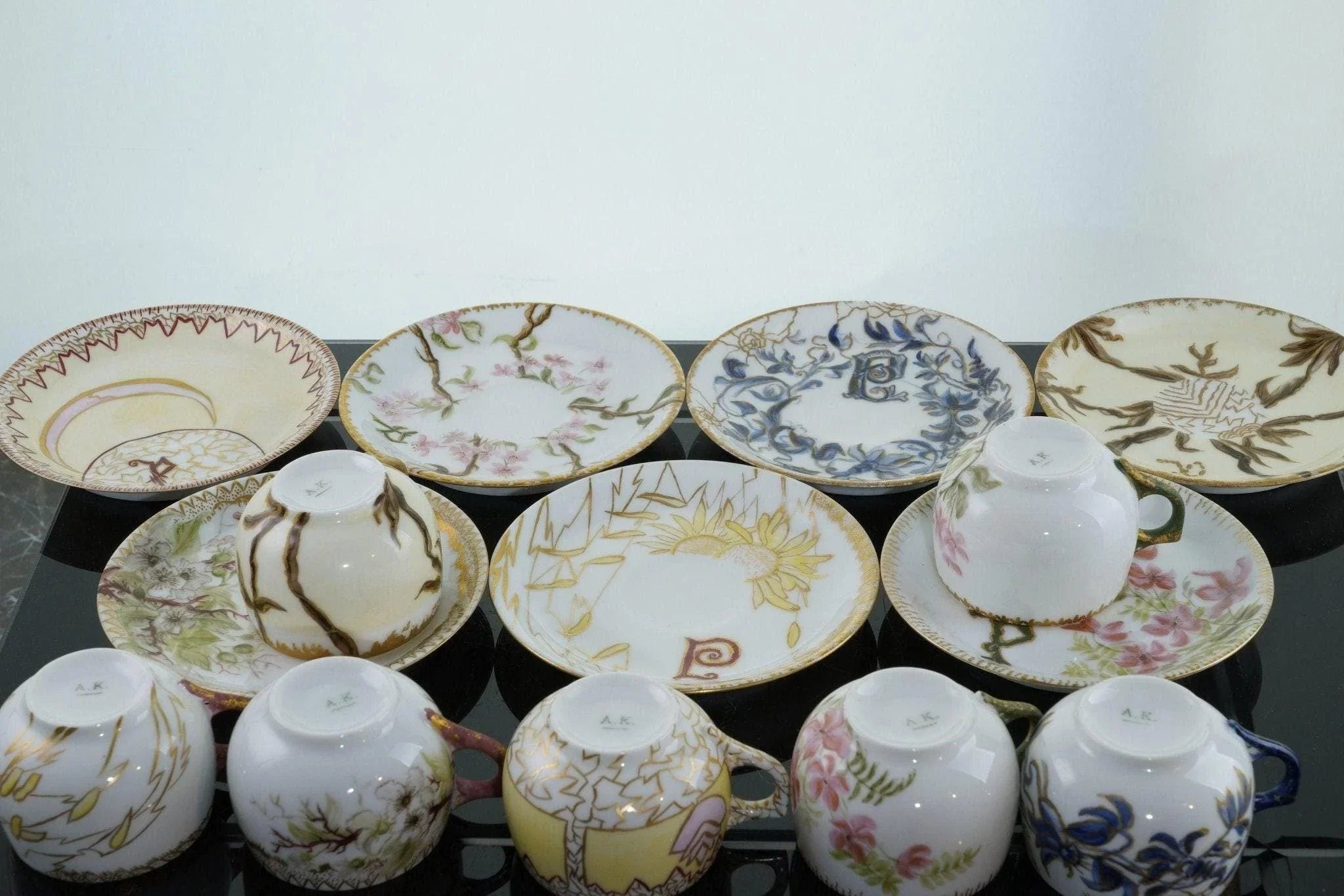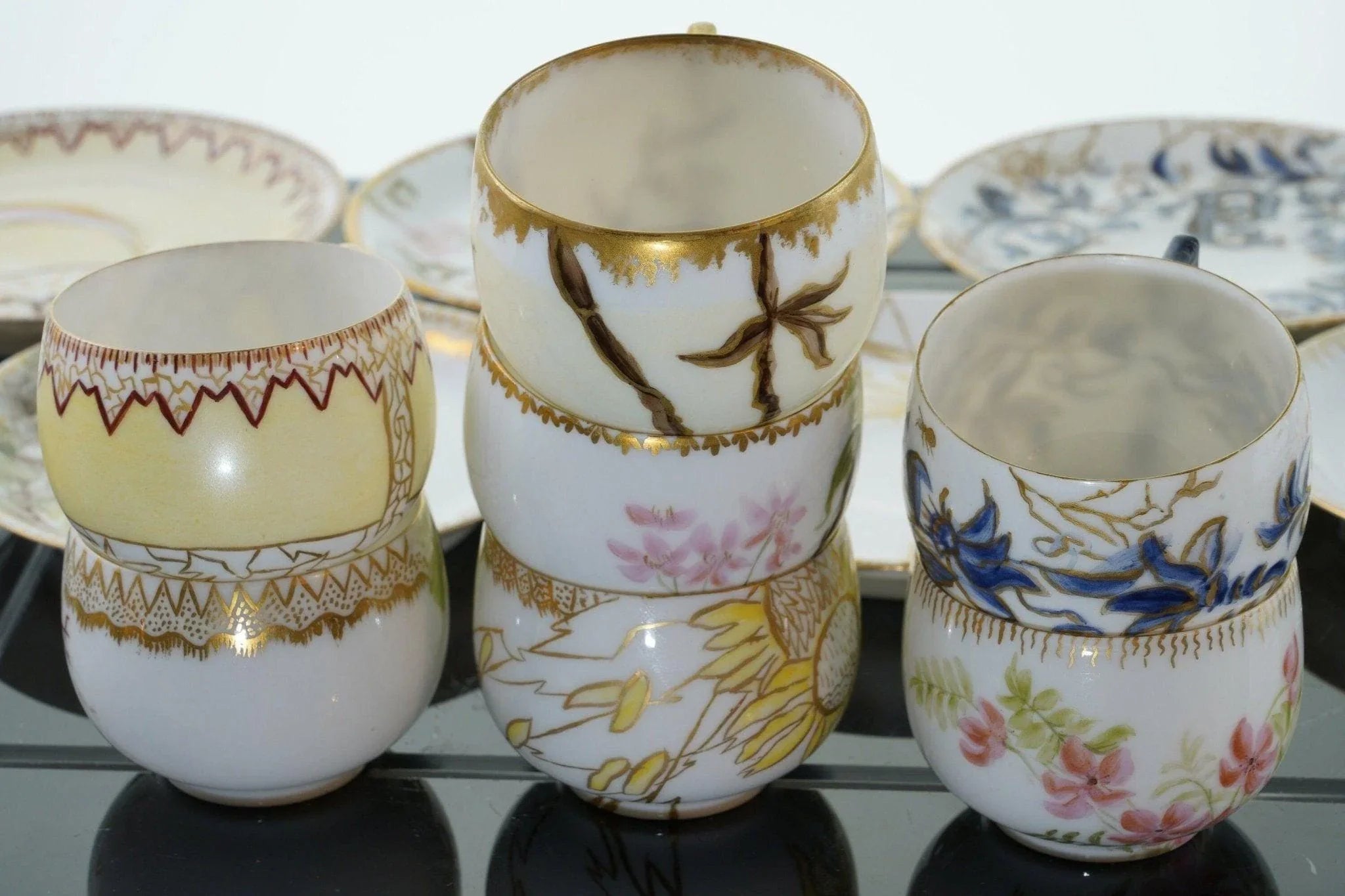 1880's French A Klingenberg Limoges Demitasse cup and saucer set (7). Selling the 7 Eggshell porcelain demitasse (espresso) cup and saucers shown, they each