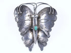 Huge Vintage Navajo Sterling/turquoise butterfly pin 2.75" wide x 2.4" wide 27.8<br>grams. Hallmarked on back with United Indian Traders association stamp.<br><br>The United Indian Traders Association (UITA) was established on September 13,<br>1931 for the expressed purpose of authentication of Indian crafts.1 At the time,<br>the UITA as an important player both in Indian cultural life and in advocating<br>for the sale of authentic Indian arts and crafts. UITA was incorporated as a<br>non-profit in New Mexico, with the support of a number of traders and San<br>Francisco attorney Charles Elkus. Bert Staples (Coolidge, NM) was UITA's first<br>President, R. C. Master (Zuni, NM) was Vice President, C. N. Cotton (Gallup, NM)<br>served as Treasurer and Tobe Turpen (Gallup, NM) was Secretary. Directors<br>included L. L. Sabin, C. G. Wallace, J. M. Drolet, Ramon Hubbell, Lloyd Ambrose,<br>Bruce Barnard and Mike Kirk.2 All of the founding directors and officers were<br>veteran owners of trading posts in the Southwest. The founding membership of 753<br>grew to over 125 in about 10 years.