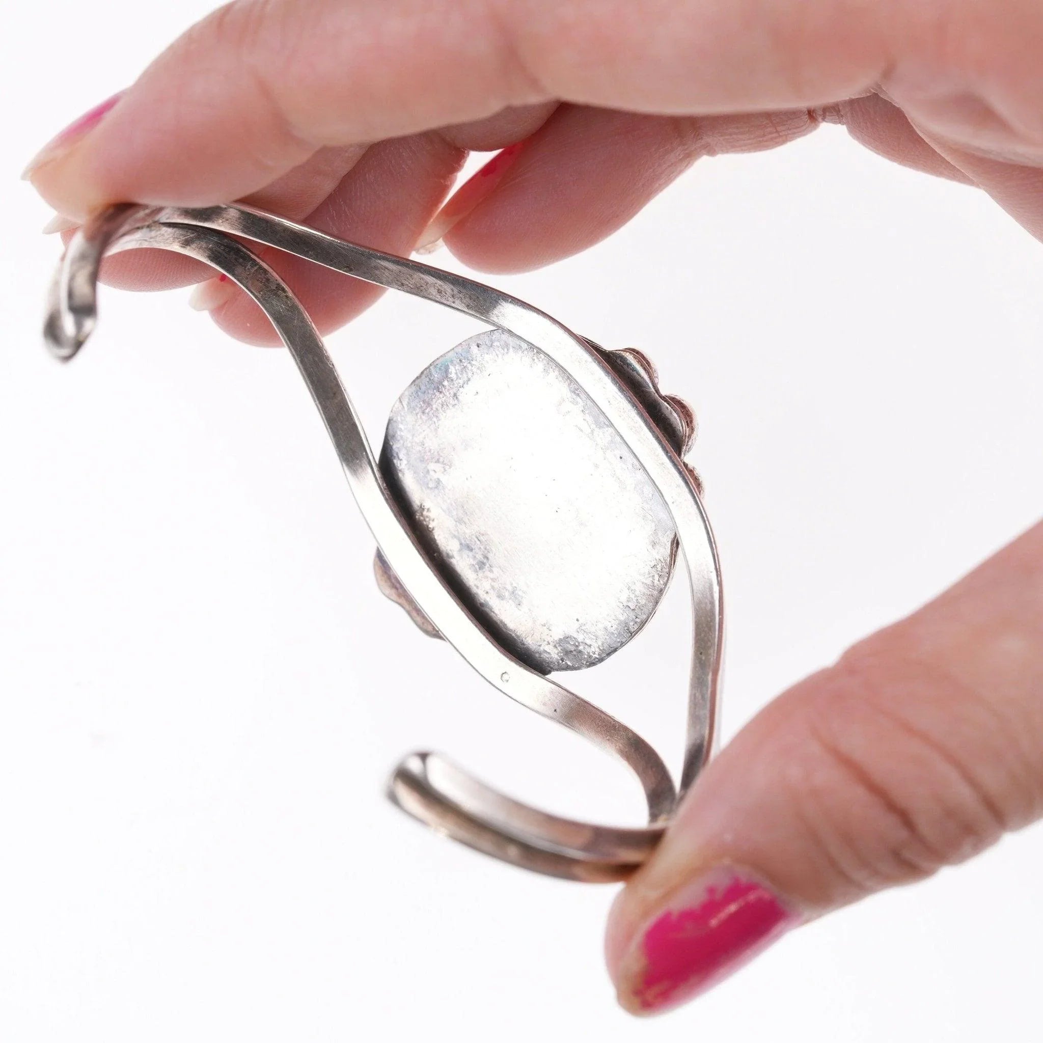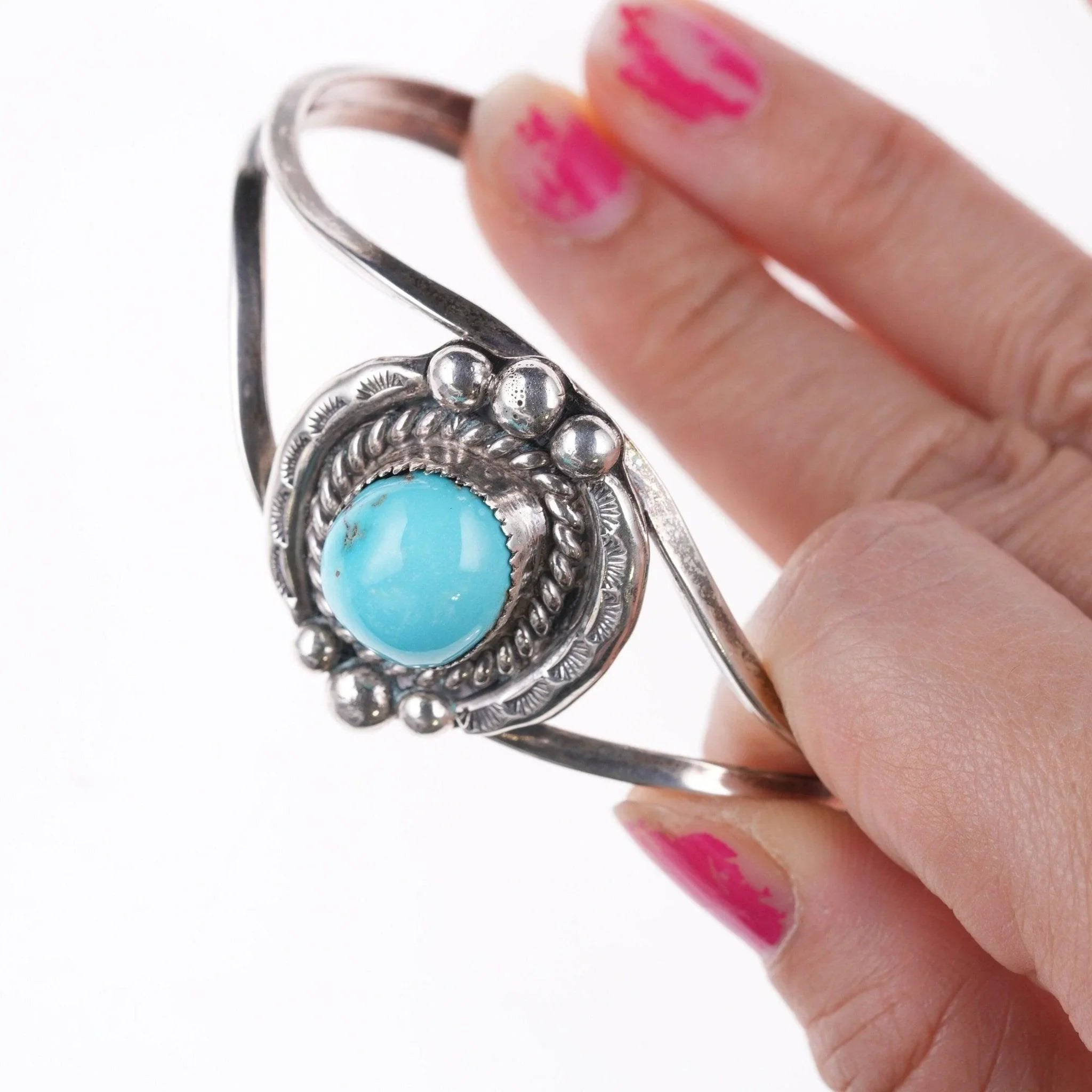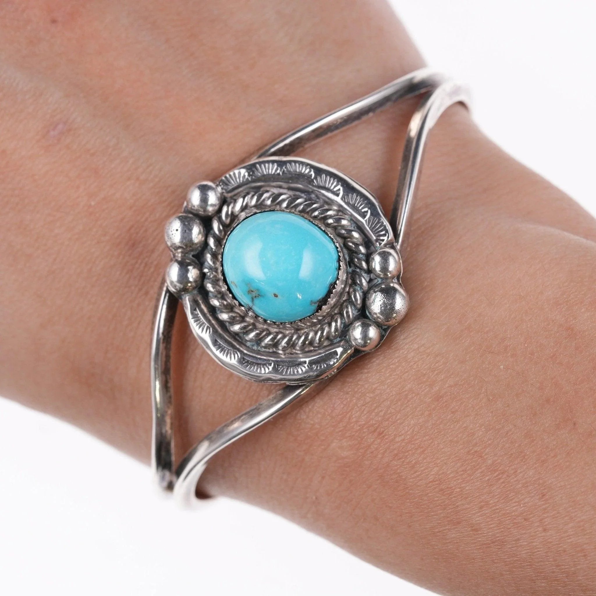6.625" Vintage Navajo sterling and turquoise cuff bracelet e