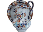 c1860 Masons Chinese Vase Ironstone Chinoisiere Hand Painted Polychromed Transferware Wash bowl and pitcher set. No cracks, chips, restorations, or crazing, light wear to peach lustre on rim of pitcher and slight wear to hand painted polychrome decoration inside bowl from pitcher resting inside. bowl 14.25"dia., pitcher 13" Charles James Mason registered his Patent Ironstone China trademark in 1813. Mr. Mason was an astute entrepreneur who had already been involved in the early 18th century porcelain import trade from China by the East India Company. When bulk imports basically stopped in the late 18th century, Mr. Mason turned his skills to the manufacture of ceramics in the “Chinese style.” Ironstone, a dense opaque, earthenware, lent itself well to decoration in under-glaze blues as well as the over-glaze enamels. Mason’s wares were an instant success and have remained highly desirable with collectors for almost 200 years. Their decorative patterns, many in a primitive Chinoiserie style, remain unsurpassed for their charm and earthy beauty